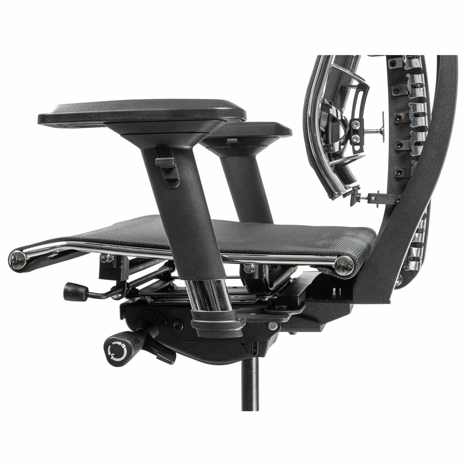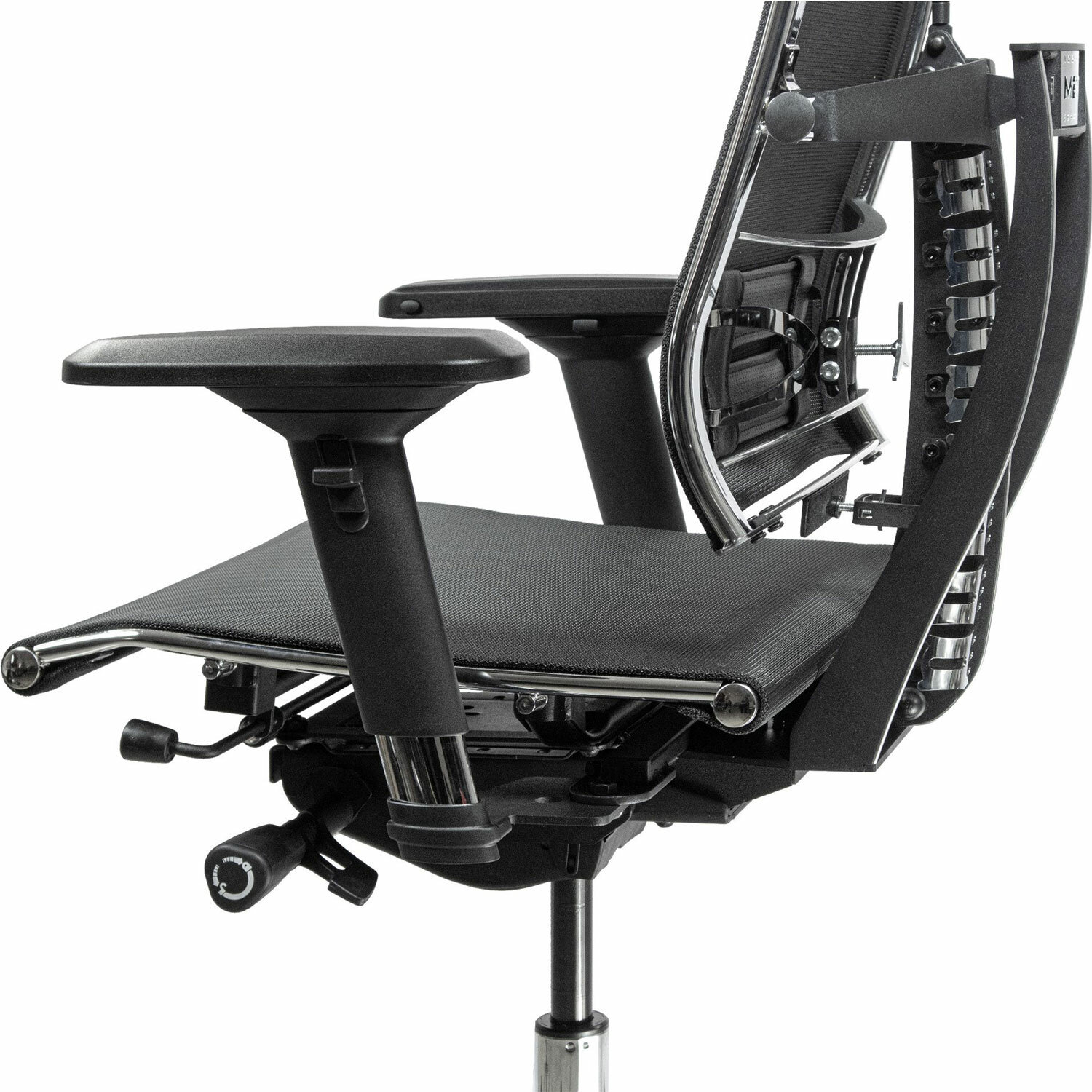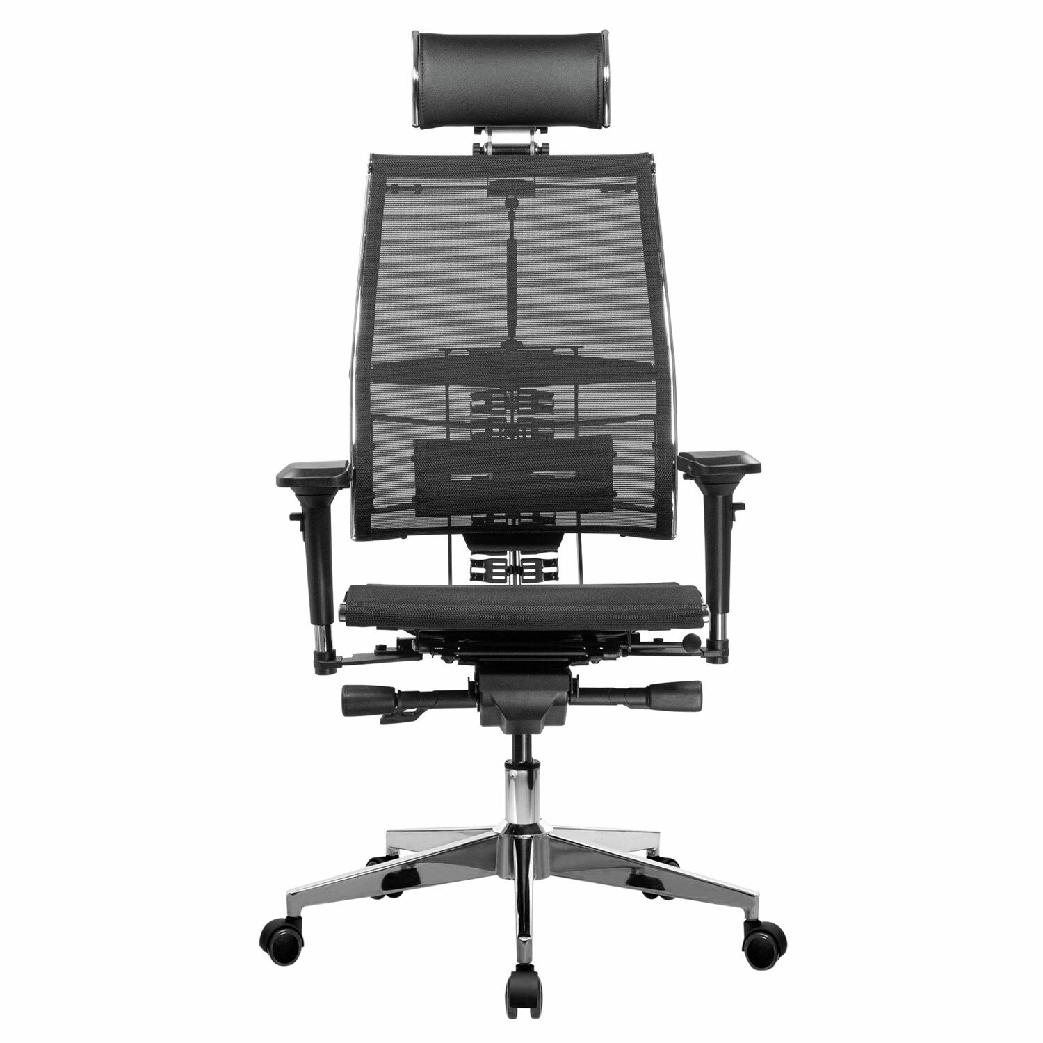 Сверхпрочный стальной каркас обеспечивает надежность кресла, а покрытие зеркальным хромом придает привлекательный вид.Адаптивная подвижная спинка, обеспечивающая свободу движения за счёт гибкой опоры, которая поддерживает тело при всех поворотах и наклонах.Уникальная форма передней части сиденья исключает сдавливание сосудов ног, сохраняя ощущение легкости в ногах.Двухзонная регулировка жесткости сиденья позволяет достичь максимального удобства.Регулировка угла наклона сиденья (угол атаки).Регулировка глубины сиденья с помощью специального слайдера, фиксация в нескольких положениях.Раздельное синхронное отклонение спинки и сиденья с фиксацией в любом положении.Обивка из сверхпрочной «дышащей» сетчатой ткани плотного плетения «YM93″, без прошивки.Регулируемый 3D-подголовник повышенной комфортности серии R, каркас стальной хромированный. Регулировка по глубине, высоте и углу наклона, обивка – экокожа.4D-подлокотники с регулировкой по высоте, по ширине, по углу поворота, вперед-назад.»Мультиблок» – механизм качания с возможностью регулировки силы отклонения и фиксации в различных положениях угла наклона кресла. Функция «антишок-эффект» позволяет исключить неожиданное «опрокидывание» кресла при изменении угла наклона.3D-поясничная поддержка (РПП) с регулировкой по глубине, высоте и жесткости.Пятилучие – алюминиевое литое, современного дизайна.Ролики противооткатные d-60 мм, полиамидные, с полиуретановым ободком, обеспечивающим бесшумный ход и защиту пола от повреждений.Прочный газлифт высшего 4 класса.