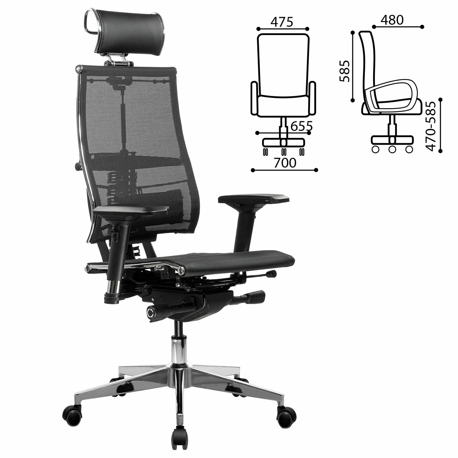 Кресло МЕТТА «YOGA» Y 4DF B2-5D, адаптивная спинка, 3D-подголовник, сверхпрочная сетка, черное