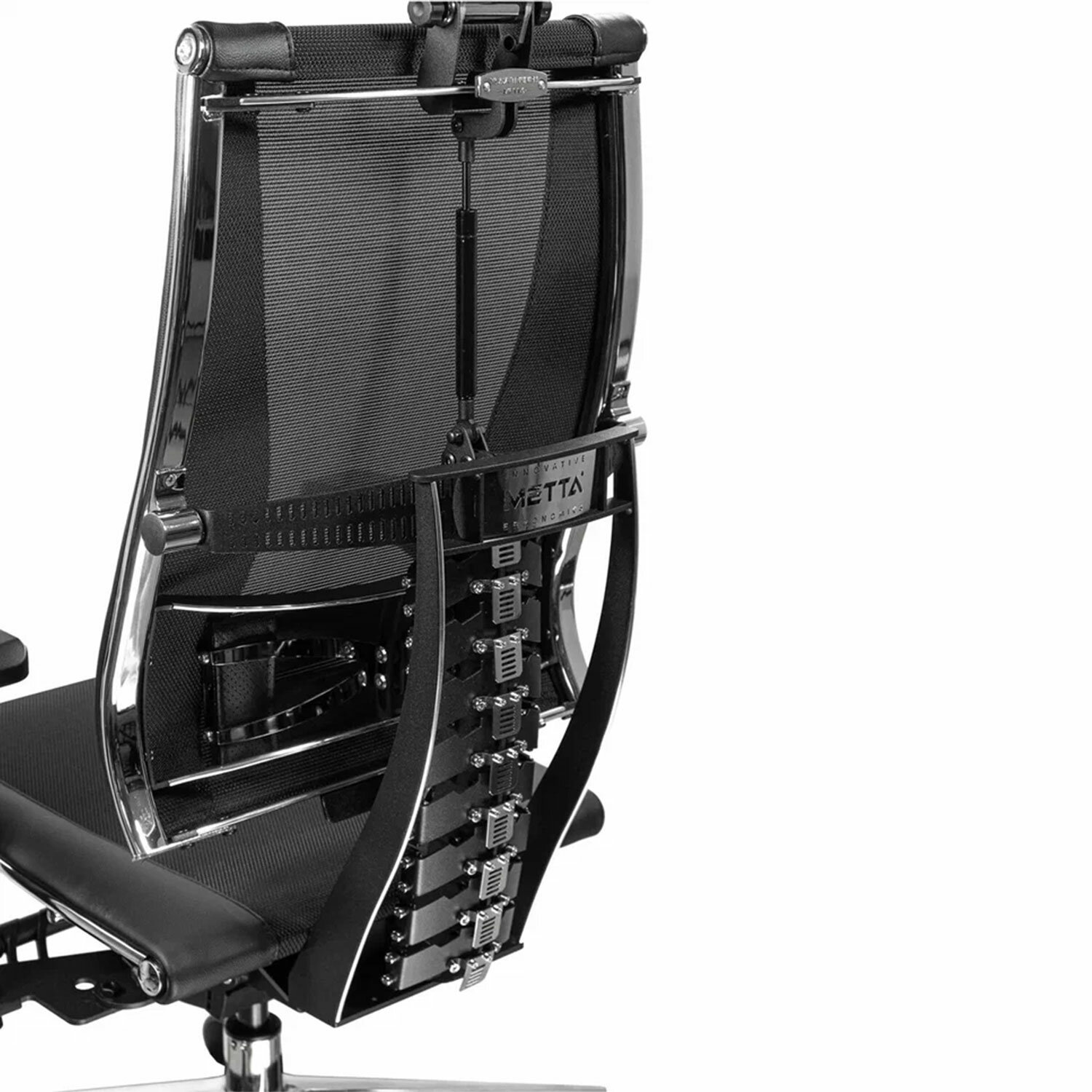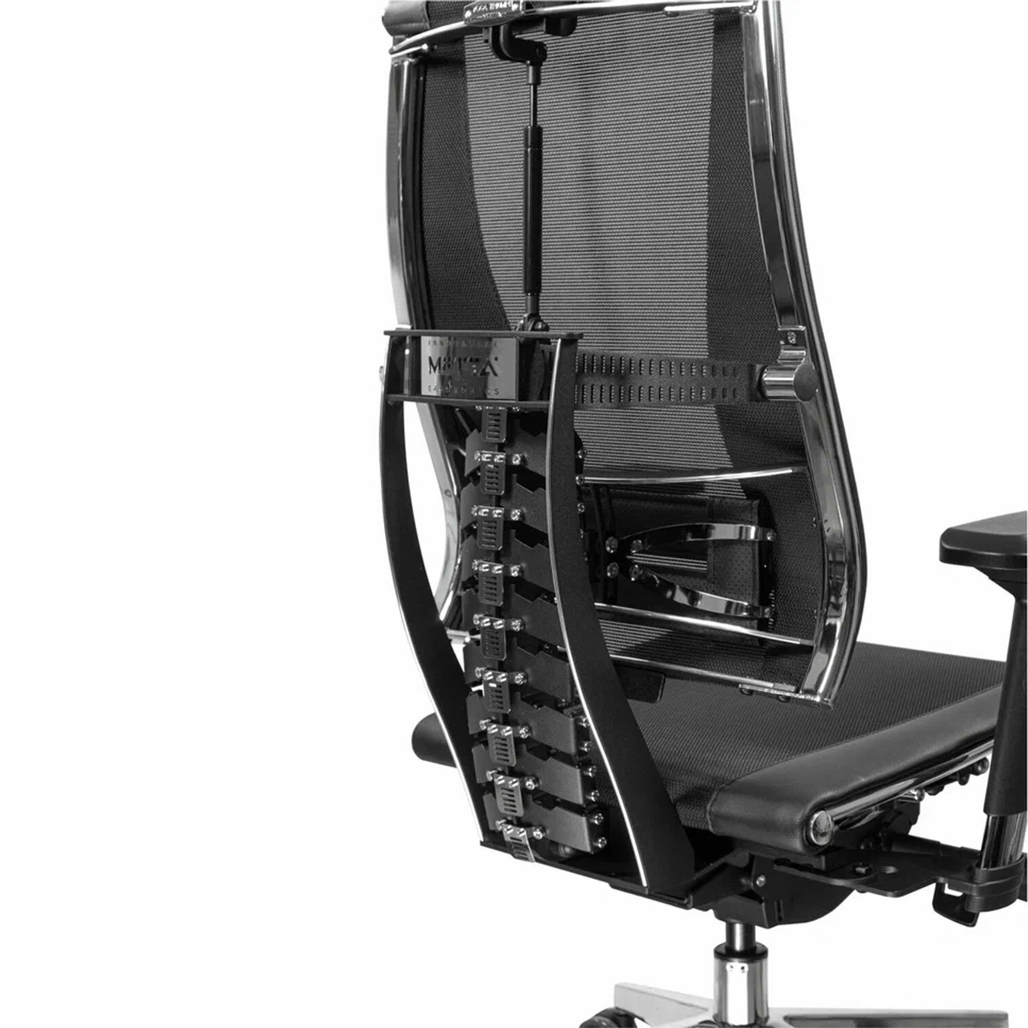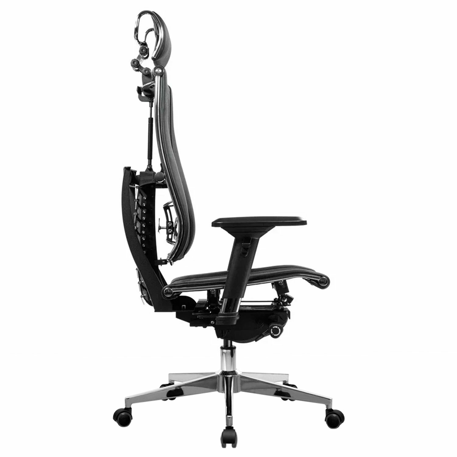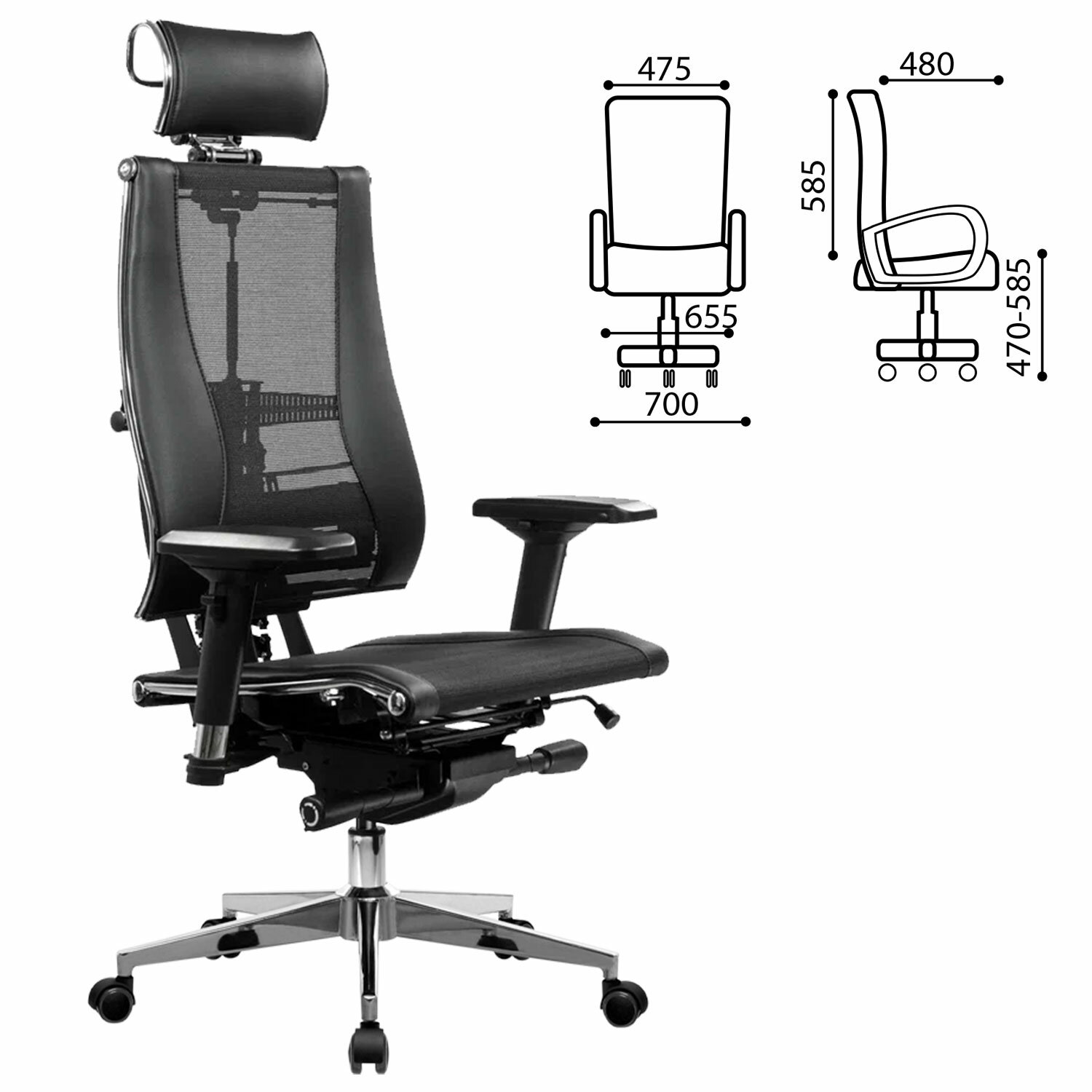 Сверхпрочный стальной каркас обеспечивает надежность кресла, а покрытие зеркальным хромом придает привлекательный вид.Адаптивная подвижная спинка обеспечивающая свободу движения за счёт гибкой опоры, которая поддерживает тело при всех поворотах и наклонах.Уникальная форма передней части сиденья исключает сдавливание сосудов ног, сохраняя ощущение легкости в ногах.Двухзонная регулировка жесткости сиденья позволяет достичь максимального удобства.Регулировка угла наклона сиденья (угол атаки).Регулировка глубины сиденья с помощью специального слайдера, фиксация в нескольких положениях.Раздельное синхронное отклонение спинки и сиденья с фиксацией в любом положении.Обивка из экокожи «Infinity» и сверхпрочной «дышащей» сетчатой ткани плотного плетения «YM93», прошивка «Pilot F».Регулируемый 3D-подголовник повышенной комфортности серии R, каркас стальной хромированный. Регулировка по глубине, высоте и углу наклона, обивка – экокожа.4D-подлокотники с регулировкой по высоте, по ширине, по углу поворота, вперед-назад.»Мультиблок» – механизм качания с возможностью регулировки силы отклонения и фиксации в различных положениях угла наклона кресла. Функция «антишок-эффект» позволяет исключить неожиданное «опрокидывание» кресла при изменении угла наклона.3D-поясничная поддержка (РПП) с регулировкой по глубине, высоте и жесткости.Пятилучие – алюминиевое литое, современного дизайна.Ролики противооткатные d-60 мм, полиамидные, с полиуретановым ободком, обеспечивающим бесшумный ход и защиту пола от повреждений.Прочный газлифт высшего 4 класса.