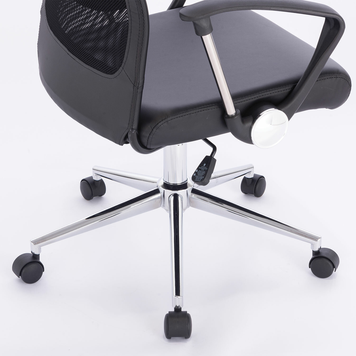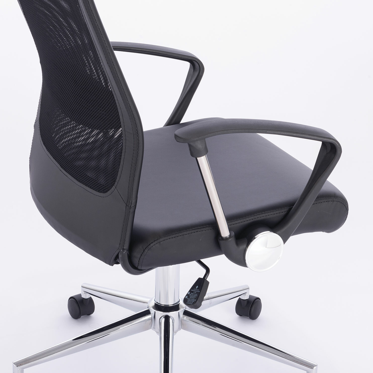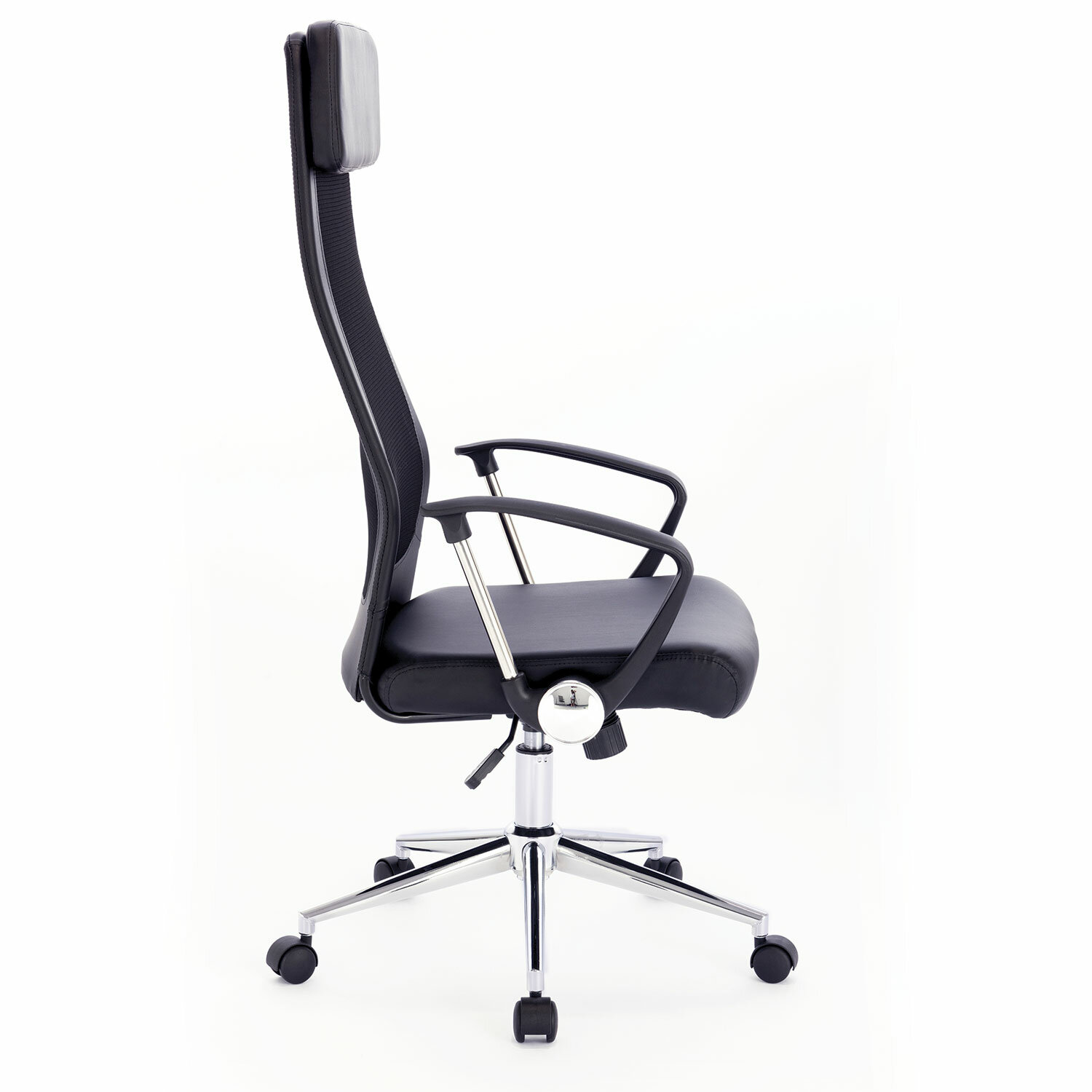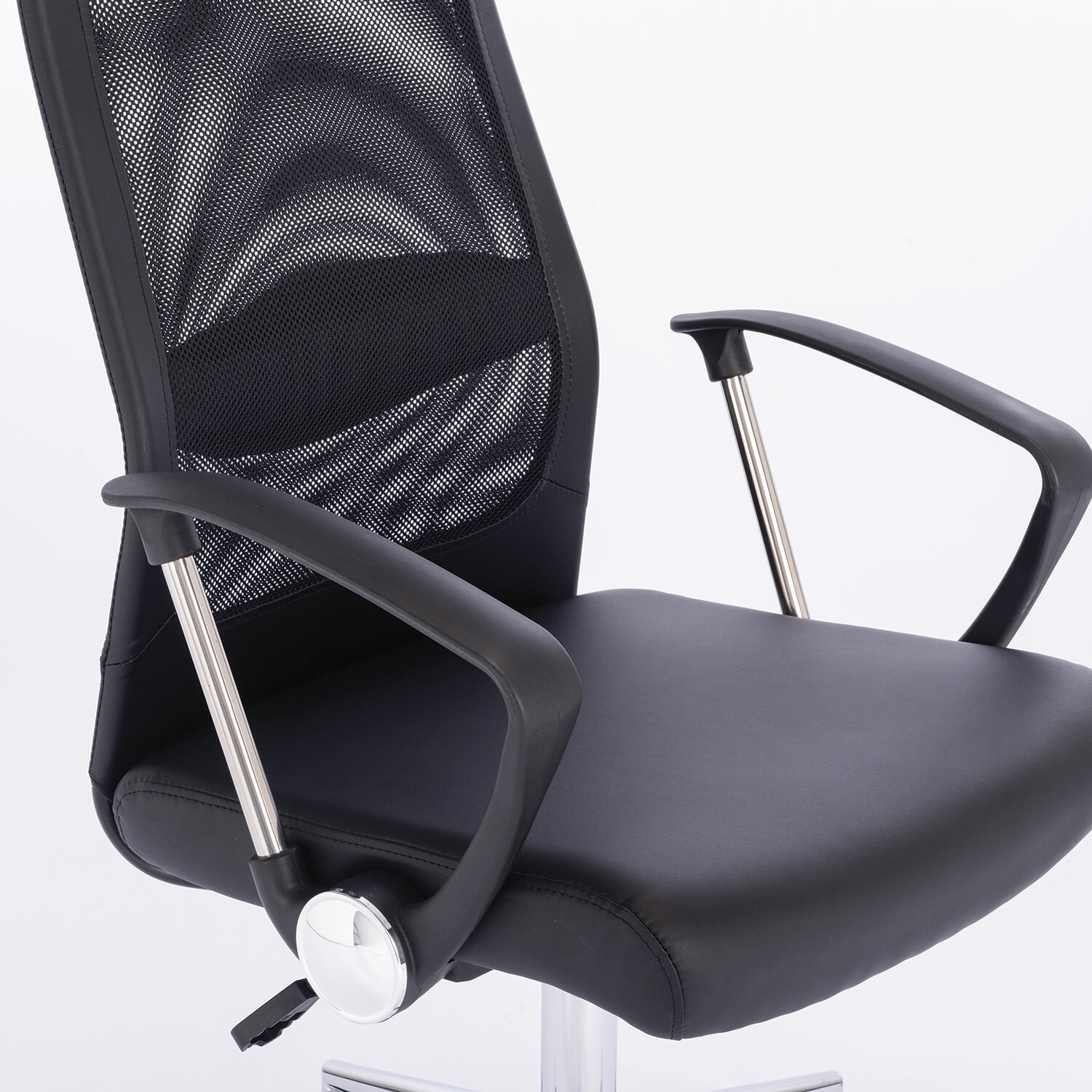 Обивка сиденья выполнена из устойчивой к износу экокожи — современного материала на хлопковой основе, а сетчатая спинка способствует естественной циркуляции воздуха. Прочное металлическое хромированное пятилучие гарантирует длительную эксплуатацию и приятный внешний вид.Широкий мягкий подголовник и поясничная поддержка придают креслу дополнительный комфорт и формируют правильную эргономику. Максимальная нагрузка на кресло — 120 кг.Надежный механизм качания «Top Gun» обеспечивает хорошую поддержку спины и поясницы за счет возможности свободного качания с фиксацией в одном рабочем положении и регулировку угла наклона под вес сидящего.