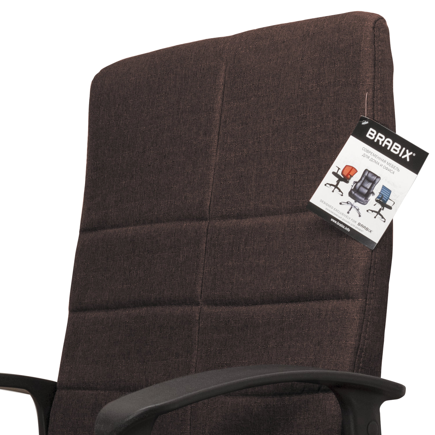 Эргономичная форма спинки и сиденья в сочетании с плотной набивкой из поролона высокого класса обеспечивает непревзойдённый комфорт в процессе эксплуатации. Сдержанный и лаконичный дизайн с использованием высококачественной мебельной ткани не создает эффекта перегруженности и подчёркивает изысканный вкус владельца. Надежный механизм качания «Top Gun» гарантирует хорошую поддержку спины и поясницы за счет возможности свободного качания с фиксацией в одном рабочем положении и регулировку угла наклона под вес сидящего.Максимальная нагрузка на кресло 120 кг.Доступное, качественное кресло среднего ценового сегмента.Кресла марки Brabix отличаются современным дизайном, эргономикой, аккуратным исполнением и отличным соотношением цены и качества.
