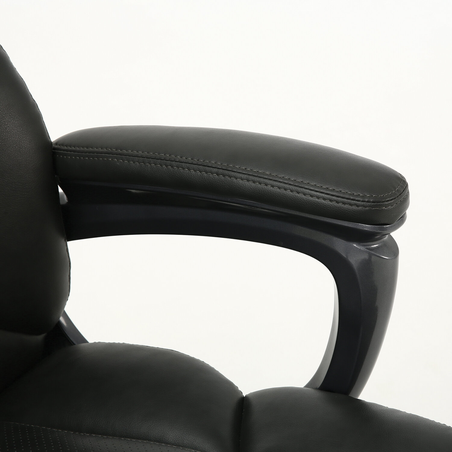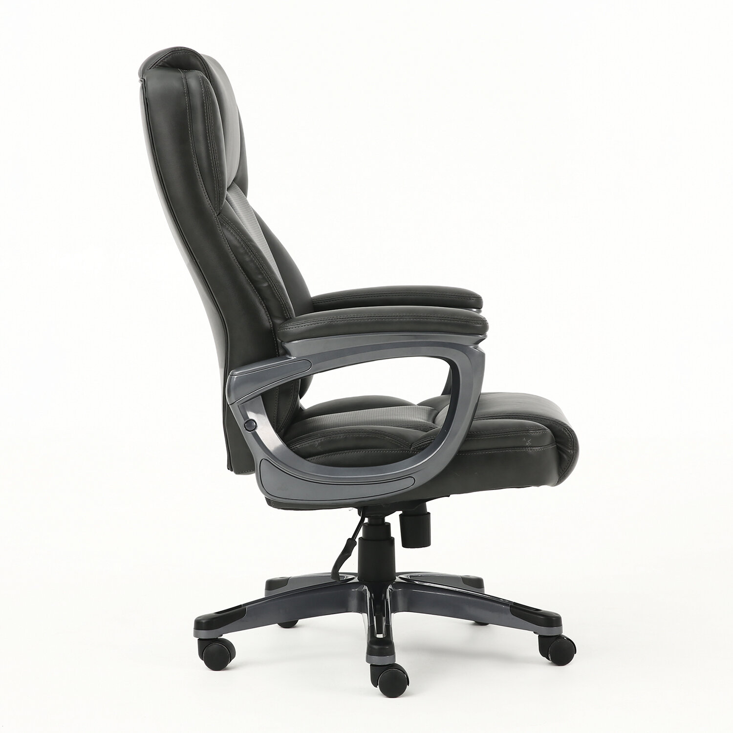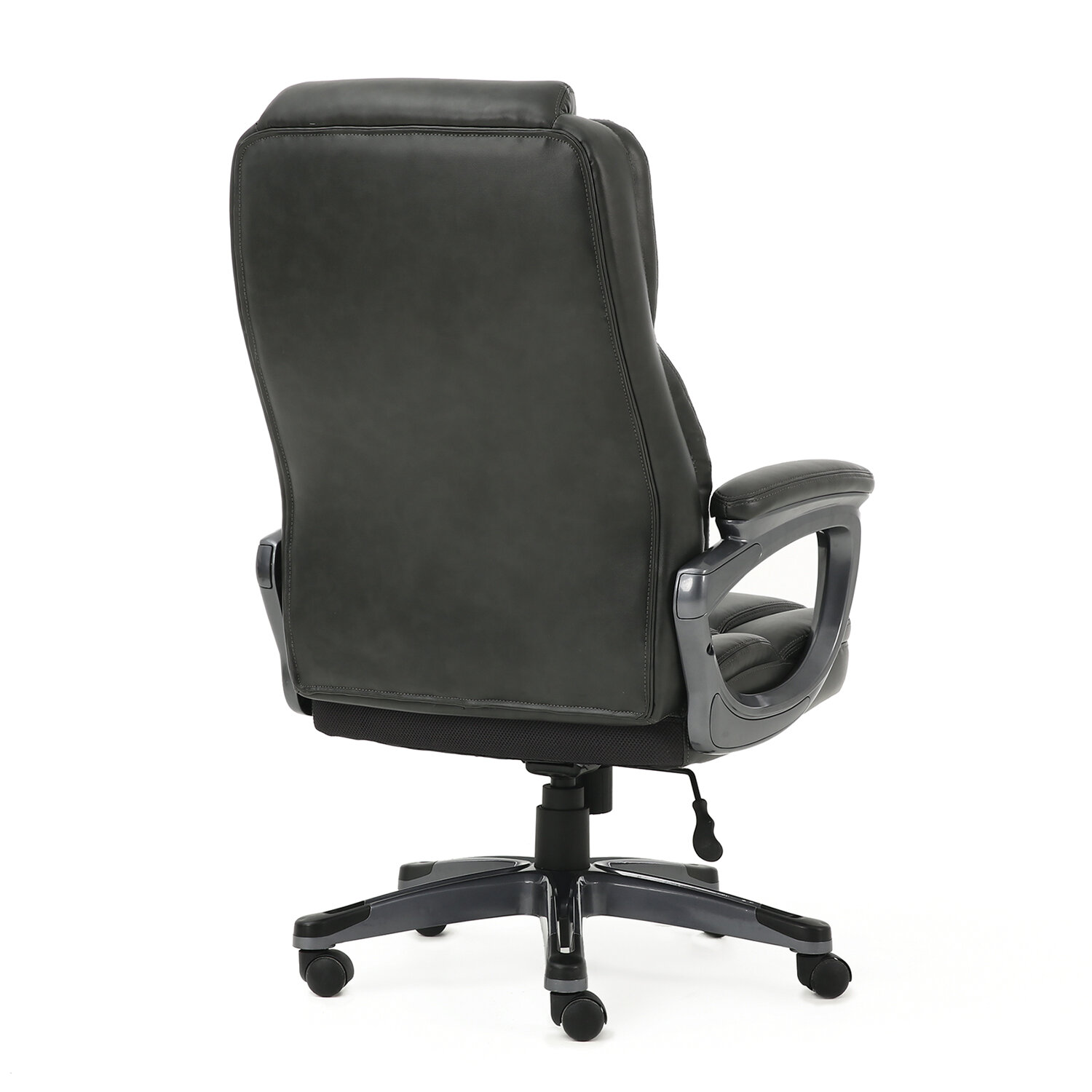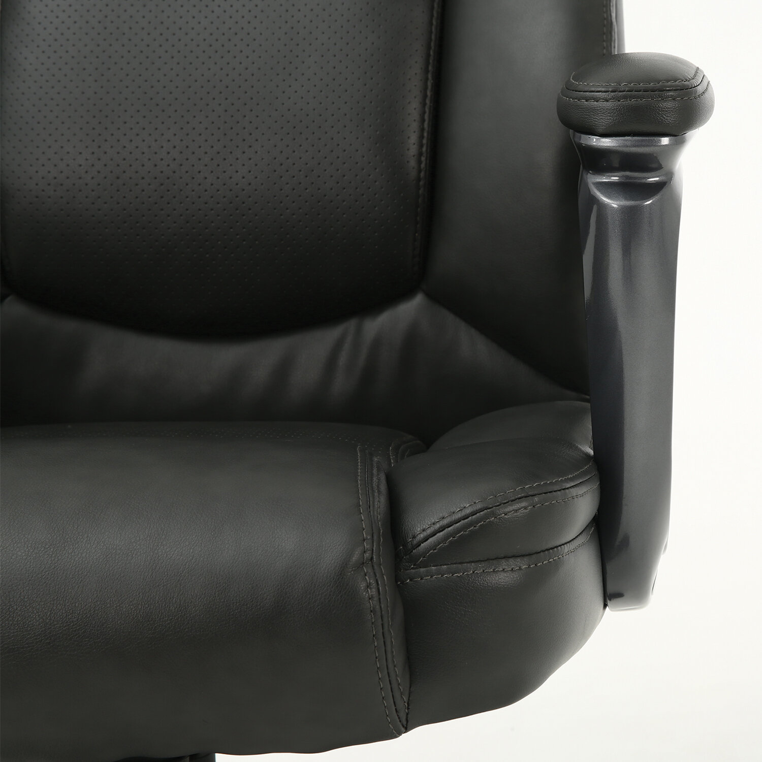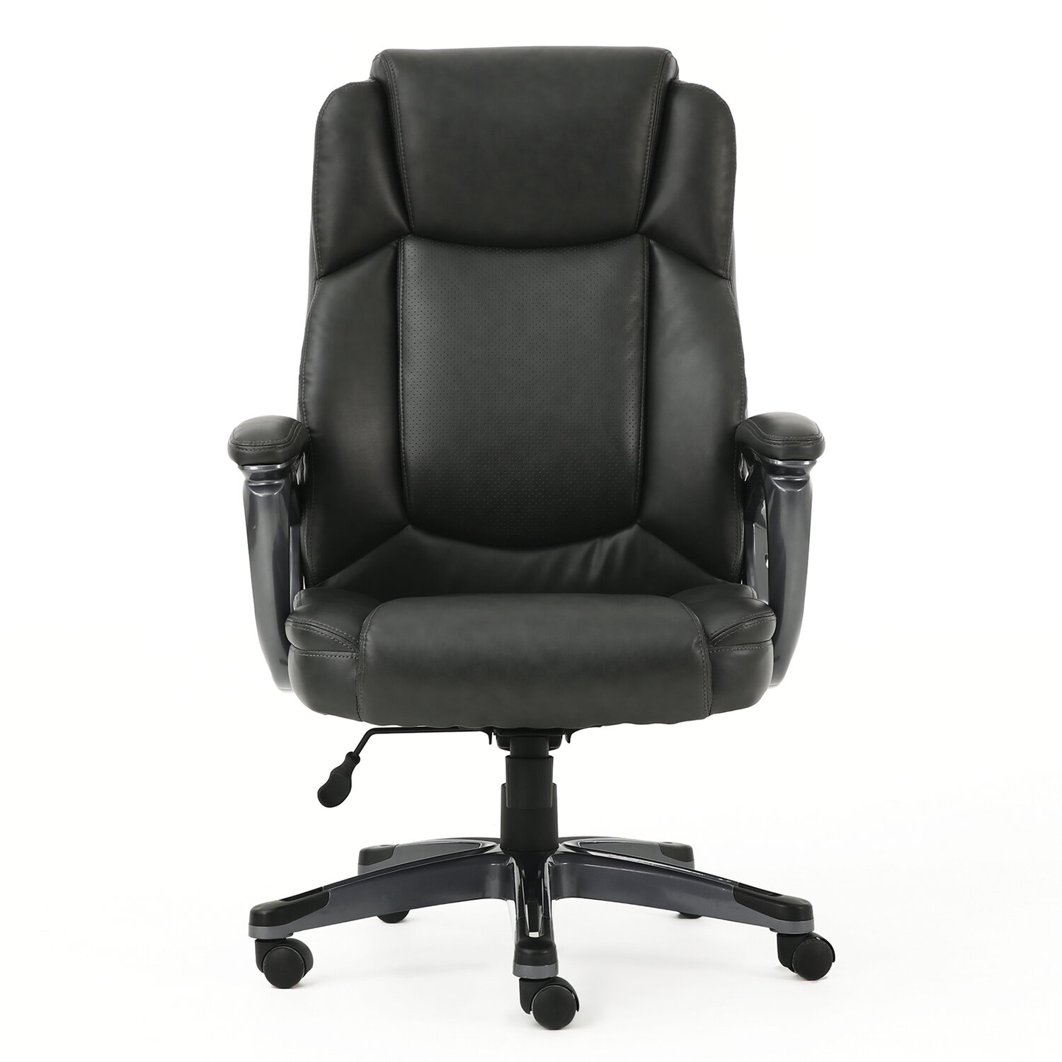 В техническом плане Favorite EX-577 есть чем похвастаться! Эргономичный изгиб спинки обеспечит поддержку в области поясницы, а широкий подголовник поможет разгрузить шейный отдел позвоночника.В сиденье встроен пружинный блок — конструкция из стальных независимых пружин, предназначенная для лучшей амортизации. Благодаря пружинным блокам мебель «не проседает» в процессе эксплуатации, сохраняет комфорт и функциональность. В набивке использован поролон высокой плотности.Прочные пластиковые подлокотники имеют мягкие накладки.Обивка кресла выполнена из рециклированной кожи — современного материала, созданного из измельченных частиц натуральной кожи. По эластичности и прочности такая кожа максимально близка к натуральной, а также имеет запах выделанной кожи. Материал отлично пропускает воздух, что положительным образом сказывается на комфорте во время эксплуатации. Рециклированная кожа износоустойчива, кресло способно сохранять привлекательный внешний вид длительное время.Перфорация в центральной части кресла способствует дополнительной циркуляции воздуха.Надежный механизм качания «Top Gun» обеспечивает хорошую поддержку спины и поясницы за счет возможности свободного качания с фиксацией в одном рабочем положении и регулировку угла наклона под вес сидящего. Максимальная нагрузка на кресло 125 кг.Качественное, надежное кресло премиального сегмента.Кресла марки BRABIX отличаются современным дизайном, эргономикой, аккуратным исполнением и отличным соотношением цены и качества.