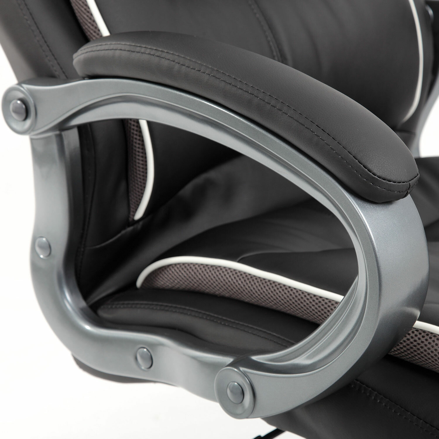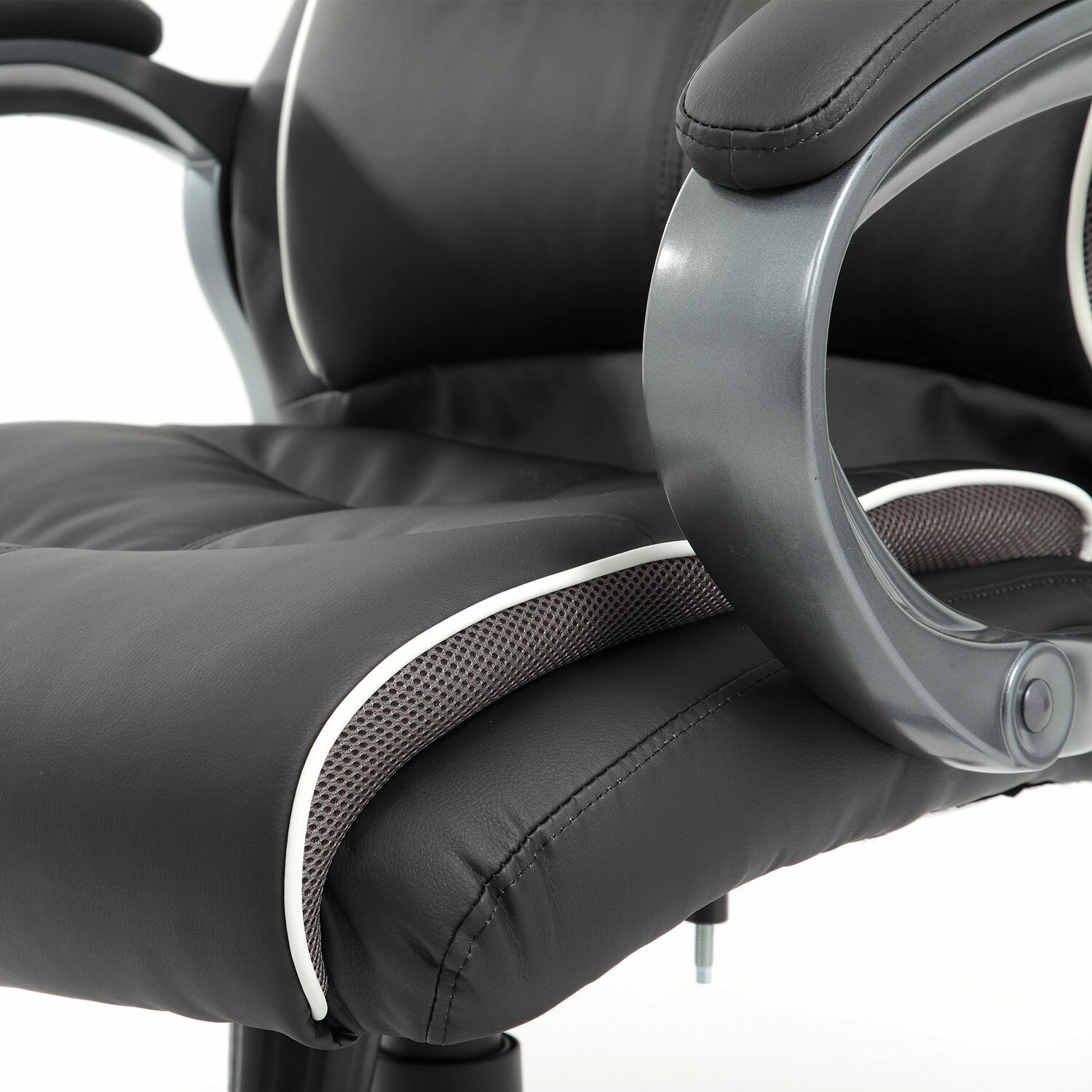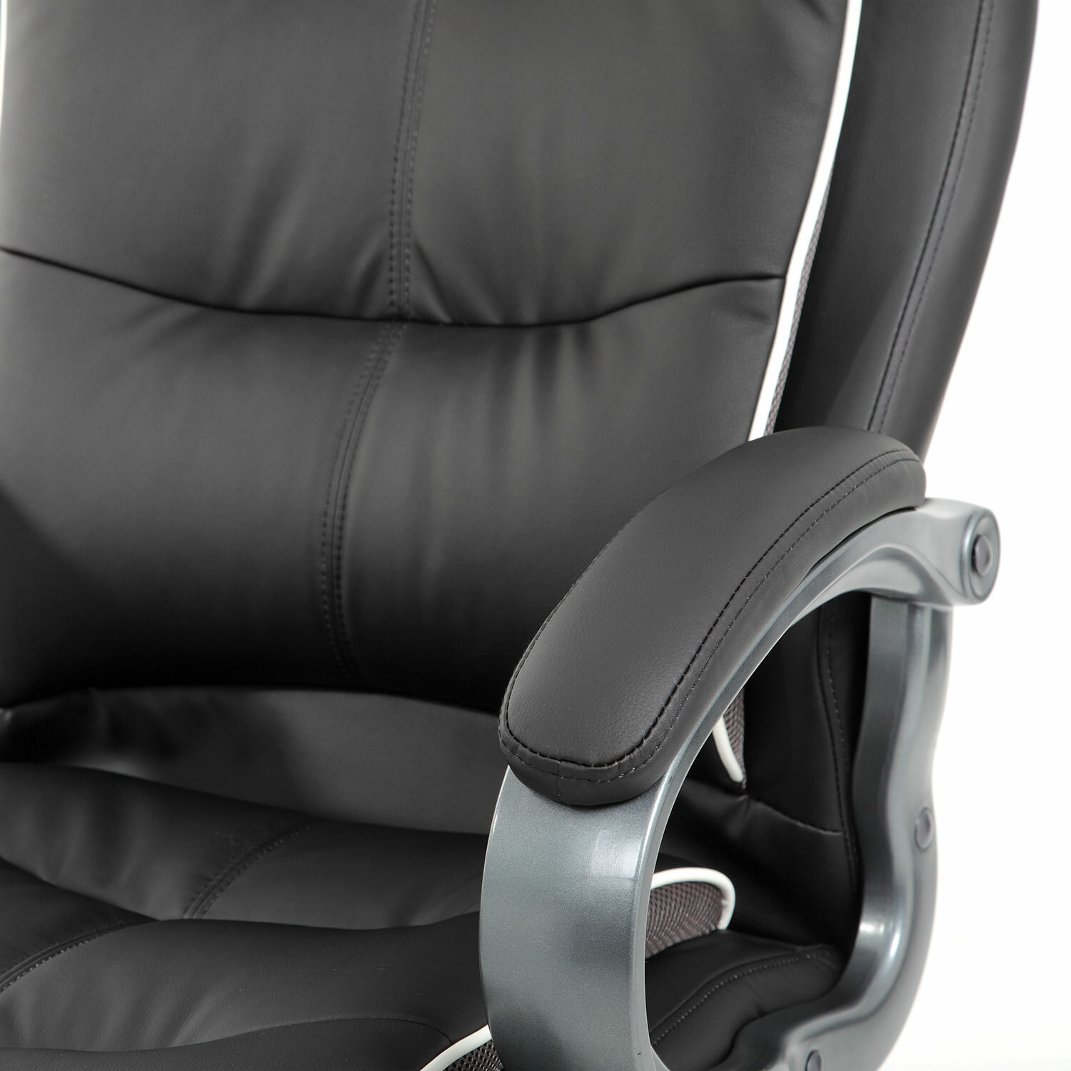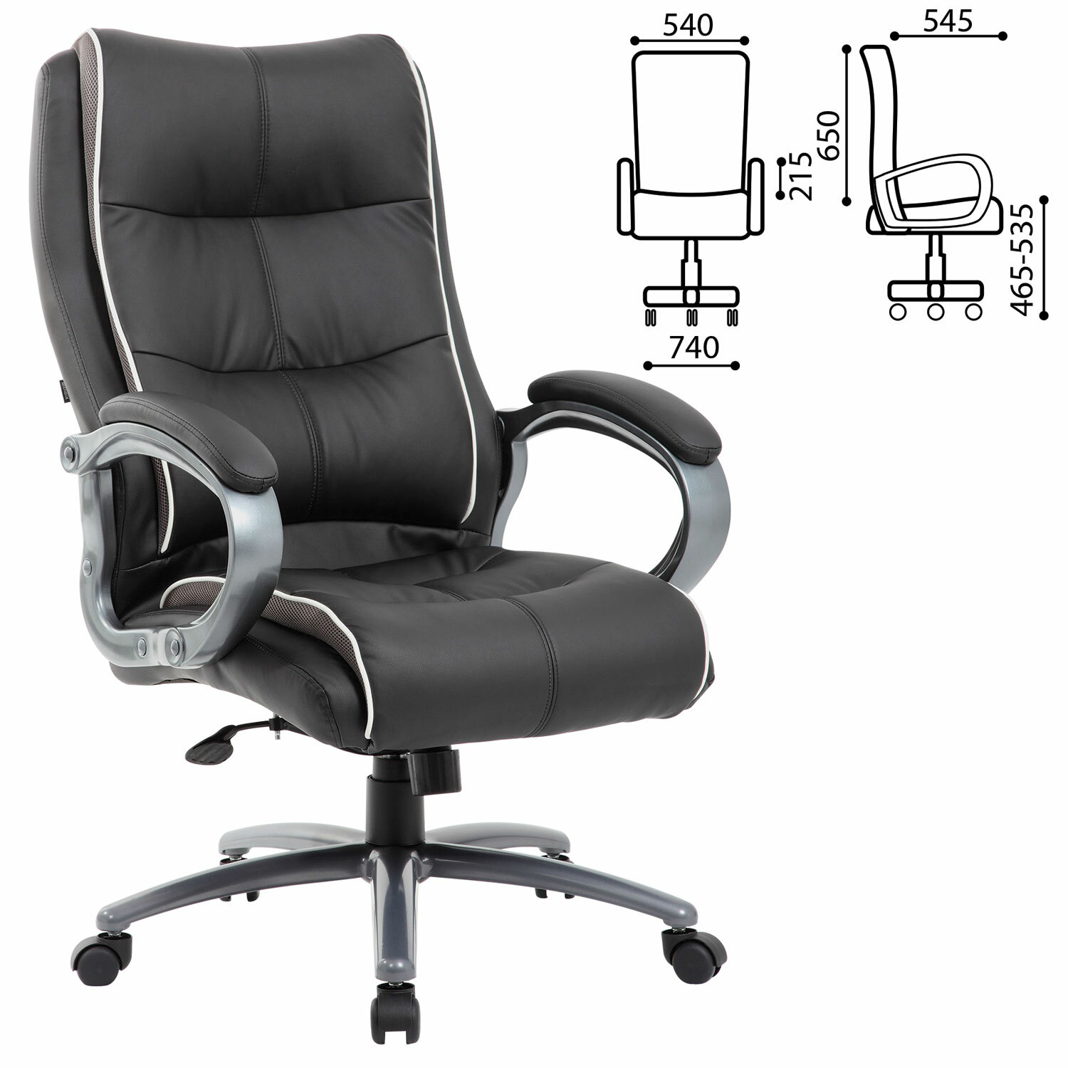 Справиться с повышенной нагрузкой помогают усиленный механизм качания с толщиной металла до 3 мм и специальными поддерживающими распорками, прочный газпатрон высшего 4-го класса, массивный каркас из фанеры толщиной 15 мм, прочное металлическое основание.Обивка выполнена из экокожи высокого качества — современного материала на хлопковой основе. Благодаря тканой основе и пористому полиуретану экокожа отлично пропускает воздух, что положительным образом сказывается на комфорте во время эксплуатации. Материал износоустойчив — кресло сохранит привлекательный внешний вид в течение длительного времени.Боковые вставки серого цвета выполнены из «дышашей» ткани TW, данное решение способствует дополнительной циркуляции воздуха.В набивке кресла использован поролон высокой плотности — это обеспечивает оптимальную поддержку пользователя и препятствует «проминанию» сиденья в ходе эксплаутации.Надежный механизм качания «Top Gun» обеспечивает хорошую поддержку спины и поясницы за счет возможности свободного качания с фиксацией в одном рабочем положении и регулировку угла наклона под вес сидящего.Прочные пластиковые подлокотники имеют мягкие накладки.Качественное, надежное кресло премиального сегмента.Кресла марки Brabix отличаются современным дизайном, эргономикой, аккуратным исполнением и отличным соотношением цены и качества.