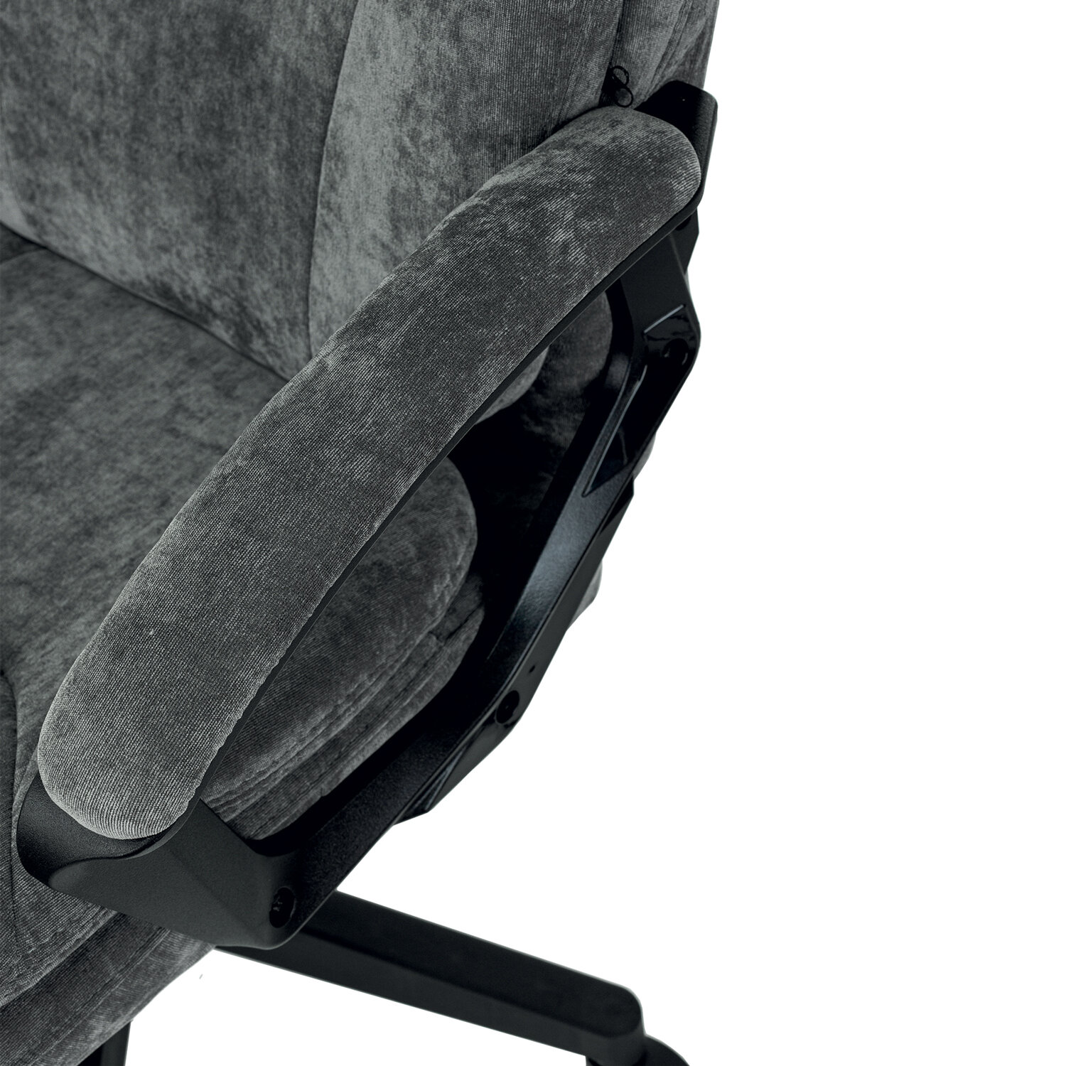 Материал обивки – велюровая ткань. Она хорошо пропускает воздух, устойчива к износу, не выцветает и легко чистится. Кресло выдерживает нагрузку до 120 кг. Модель оснащена механизмом качания «Top-Gun» с регулировкой под вес и возможностью фиксации в рабочем положении.
