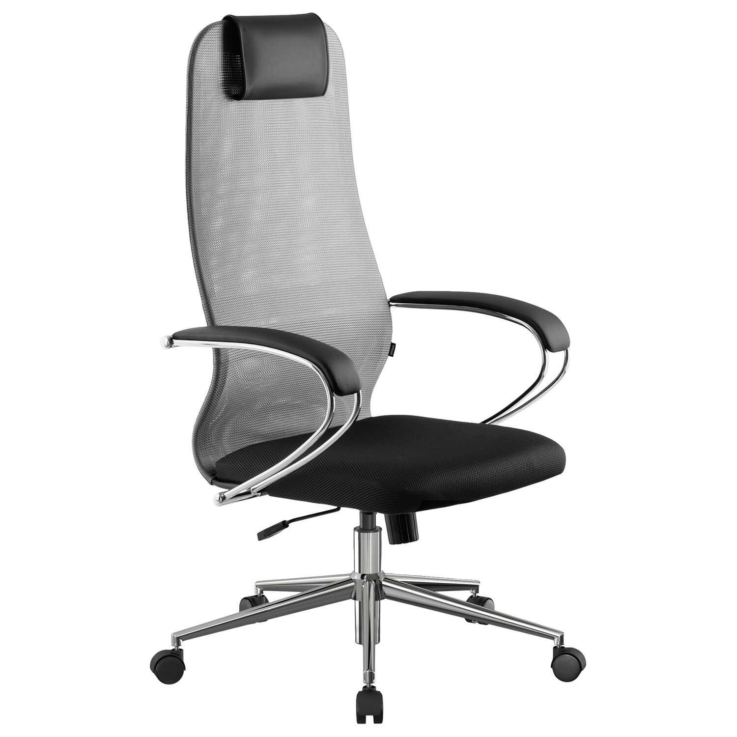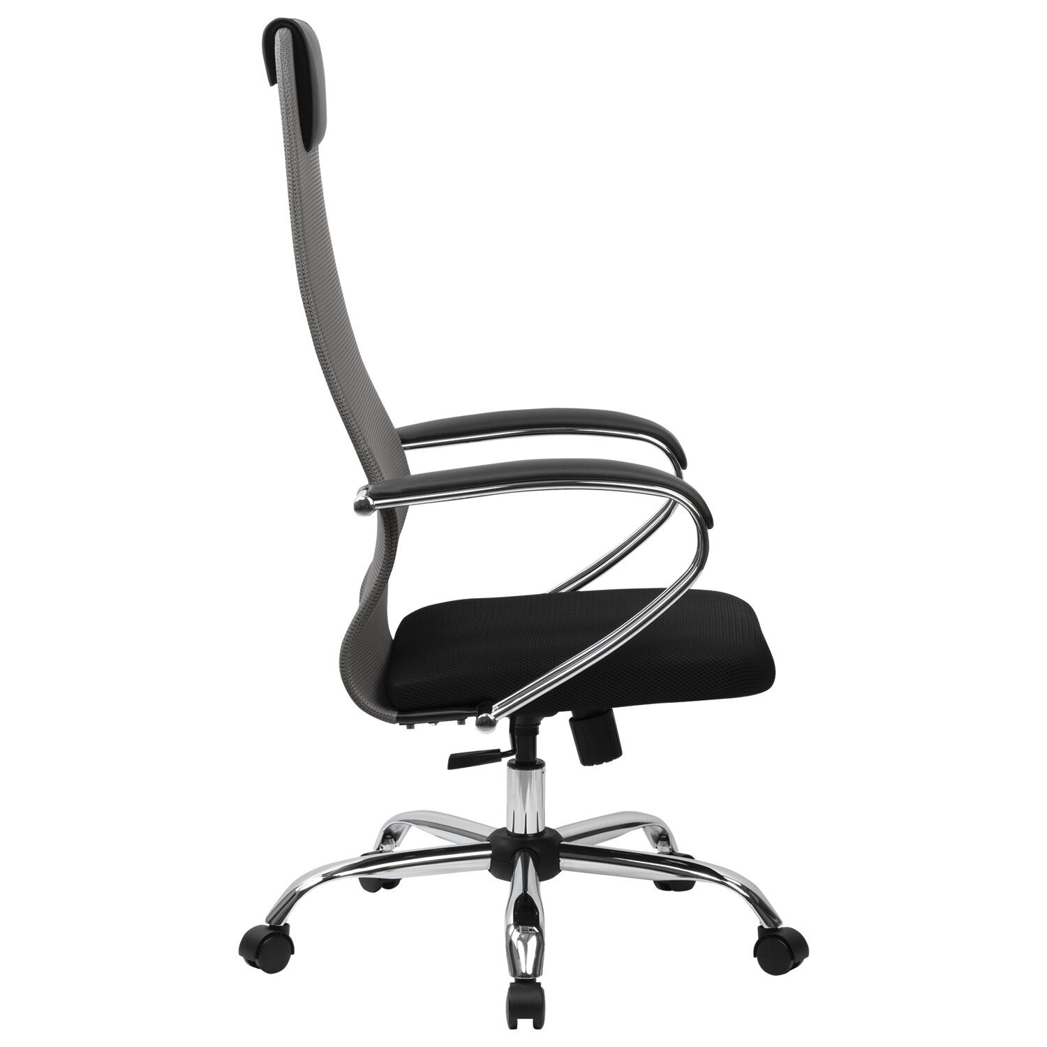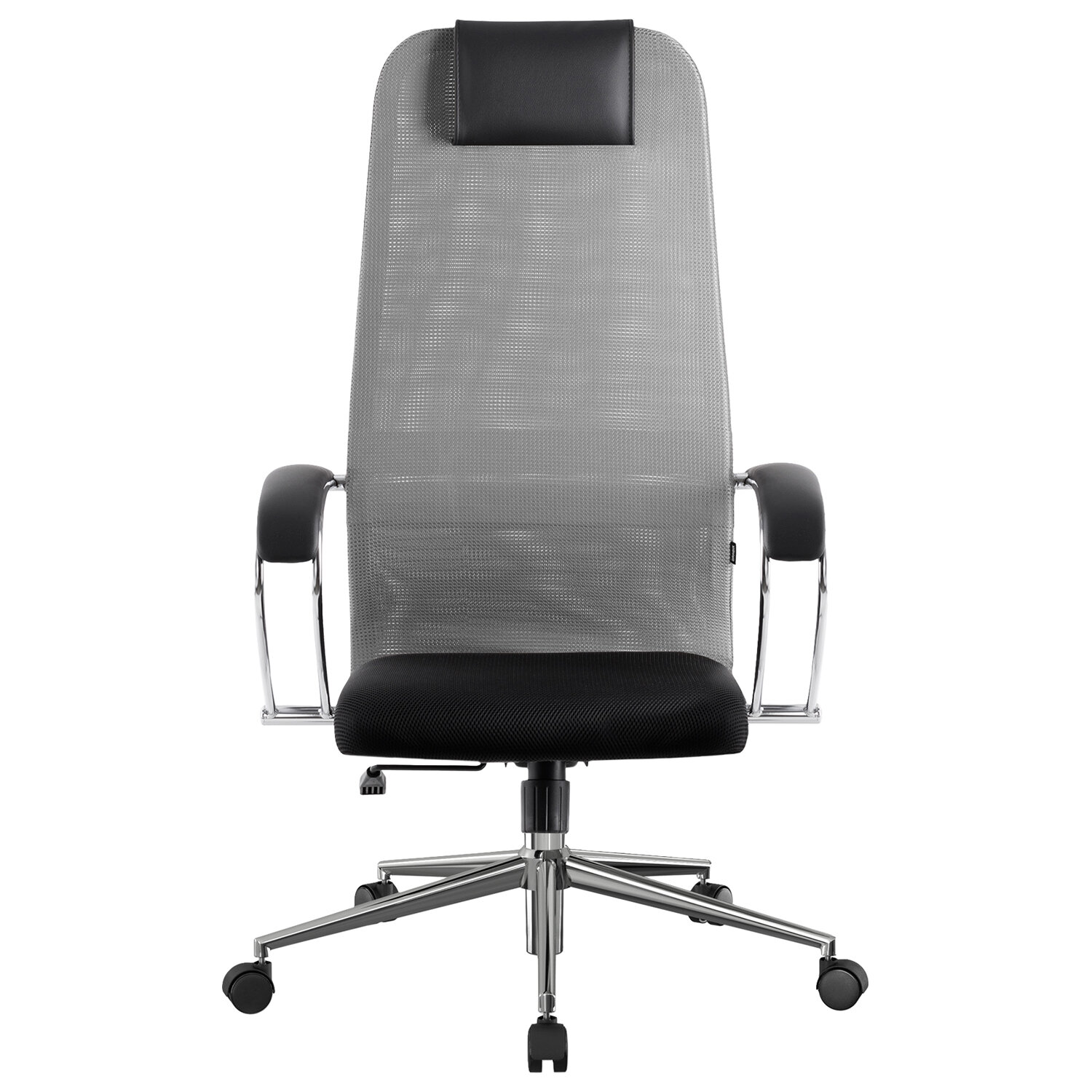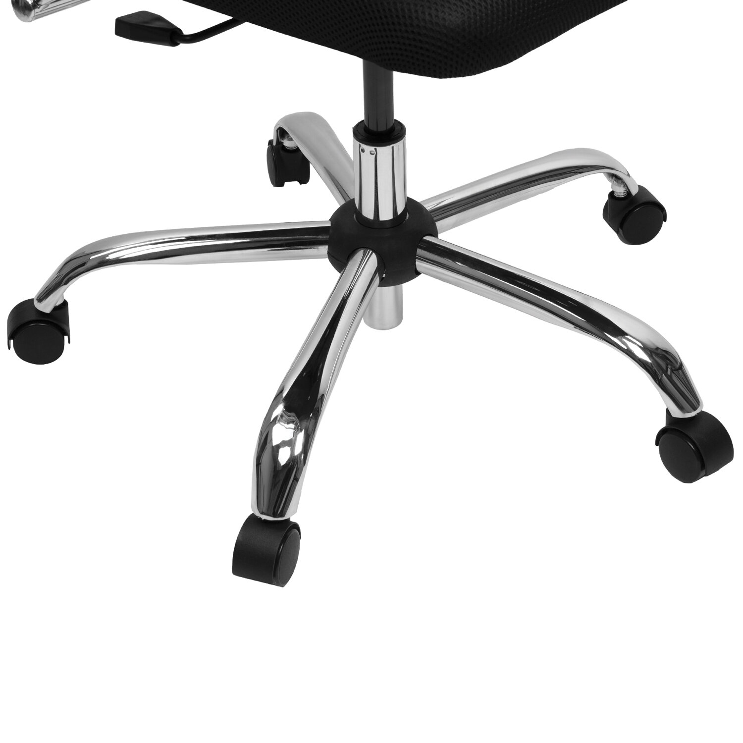 Спинка высокая, эргономичной формы, с ярко выраженной поясничной поддержкой.Спинка имеет сверхпрочный стальной каркас с износостойким полимерным покрытием черного цвета.Спинка снабжена мягким, комфортным подголовником.Сиденье средней жесткости, объемное, на столярном каркасе.Обивка спинки из износоустойчивой «дышащей» сетчатой ткани двойного плетения.Подлокотники стальные классические, покрытые зеркальным хромом, с мягкими накладками.Пятилучие металлическое хромированное.Модель оснащена механизмом качания «Top-Gun» с регулировкой под вес и возможностью фиксации в рабочем положении.