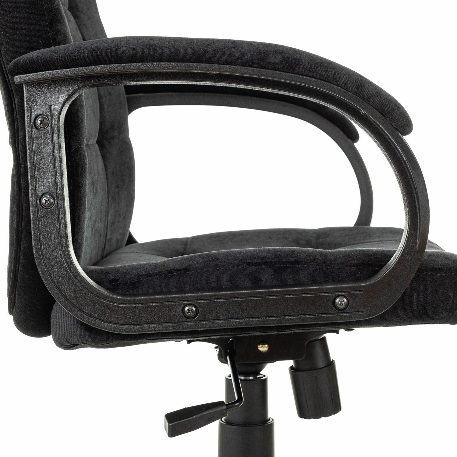 Обивка CH-002: мягкий и приятный на ощупь, неприхотливый в уходе, износостойкий велюр.Подлокотники кресла выполнены из прочного пластика черного цвета с мягкими накладками.Модель оснащена надёжным механизмом качания «Top-Gun» с регулировкой под вес и возможностью фиксации в рабочем положении.Пластиковое пятилучие способно выдержать нагрузку до 120 кг.