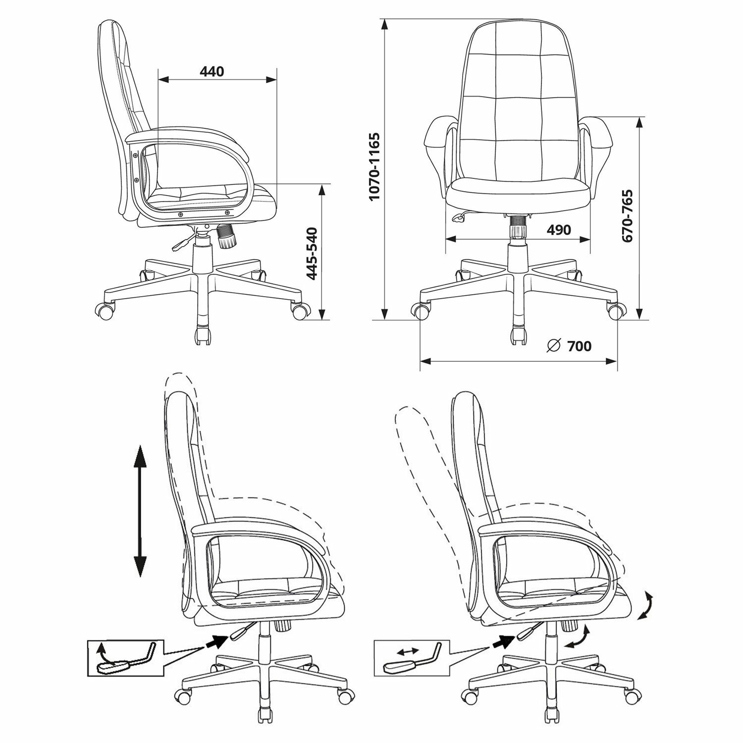 | Минимальная высота кресла | |