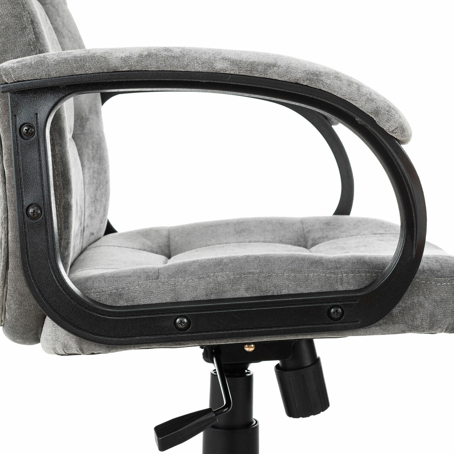 Обивка CH-002: мягкий и приятный на ощупь, неприхотливый в уходе, износостойкий велюр.Подлокотники кресла выполнены из прочного пластика черного цвета с мягкими накладками.Модель оснащена надёжным механизмом качания «Top-Gun» с регулировкой под вес и возможностью фиксации в рабочем положении.Пластиковое пятилучие способно выдержать нагрузку до 120 кг.