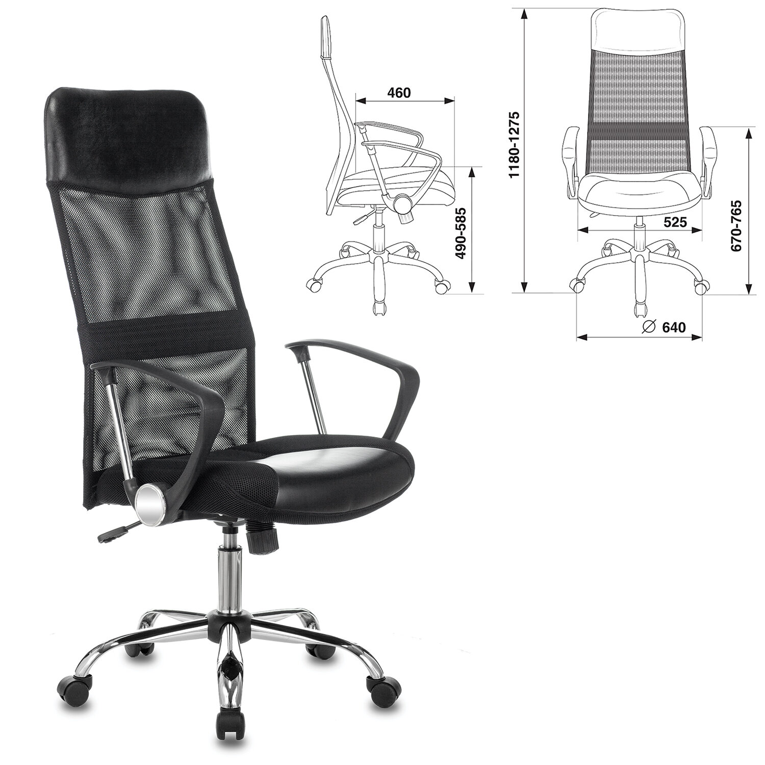 Кресло офисное CH-600SL, хром, ткань-сетка/кожзам, черное, 1380230