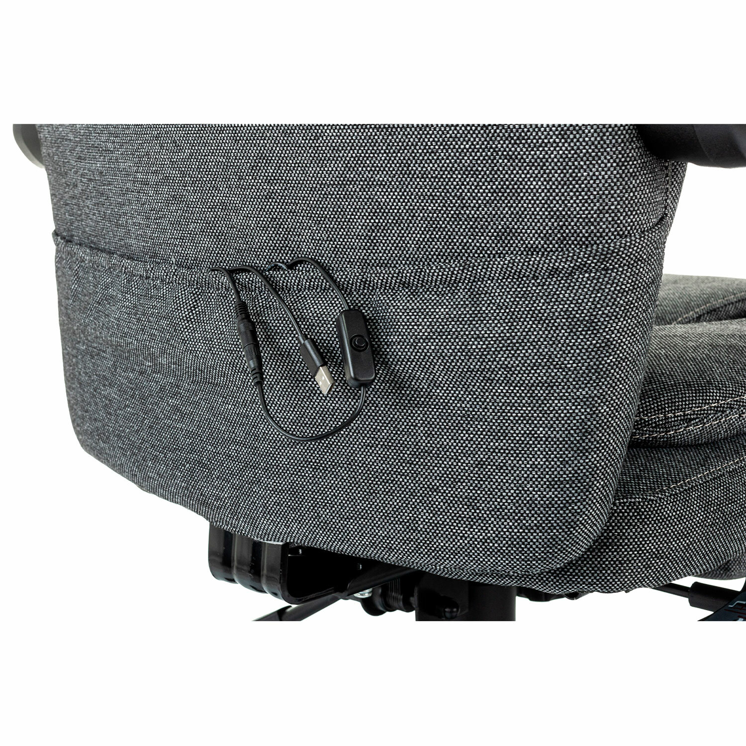 Обивка кресла выполнена из дышащего износостойкого материала, что позволяет комфортно находиться в нем долгое время и надолго сохранить внешний вид в хорошем состоянии.Встроенная функция вибрации в области спинки (подключение с помощью USB-провода).Подвижные подлокотники с мягкими накладками.Максимальное отклонение спинки относительно сиденья 130°.Выдвижная подставка для ног.Модель оснащена синхромеханизмом качания с возможностью фиксации в любом положении, что позволяет подобрать наиболее комфортные параметры, позволяющие продуктивно работать в течение всего дня.Ограничение по весу составляет 120 кг.