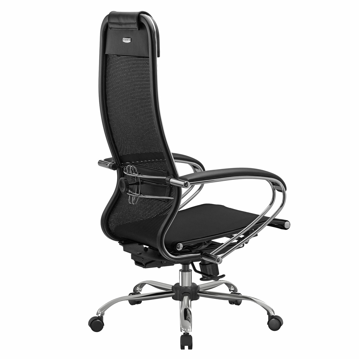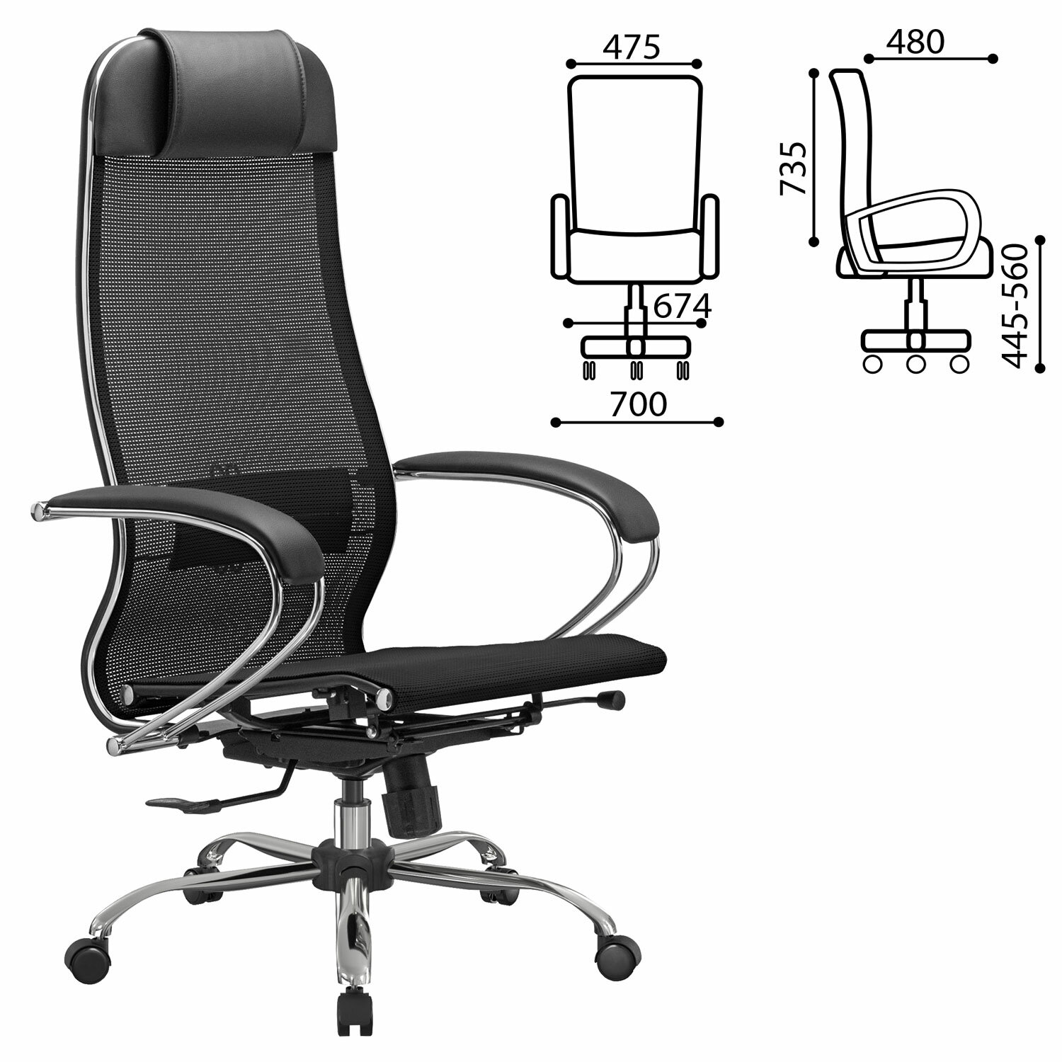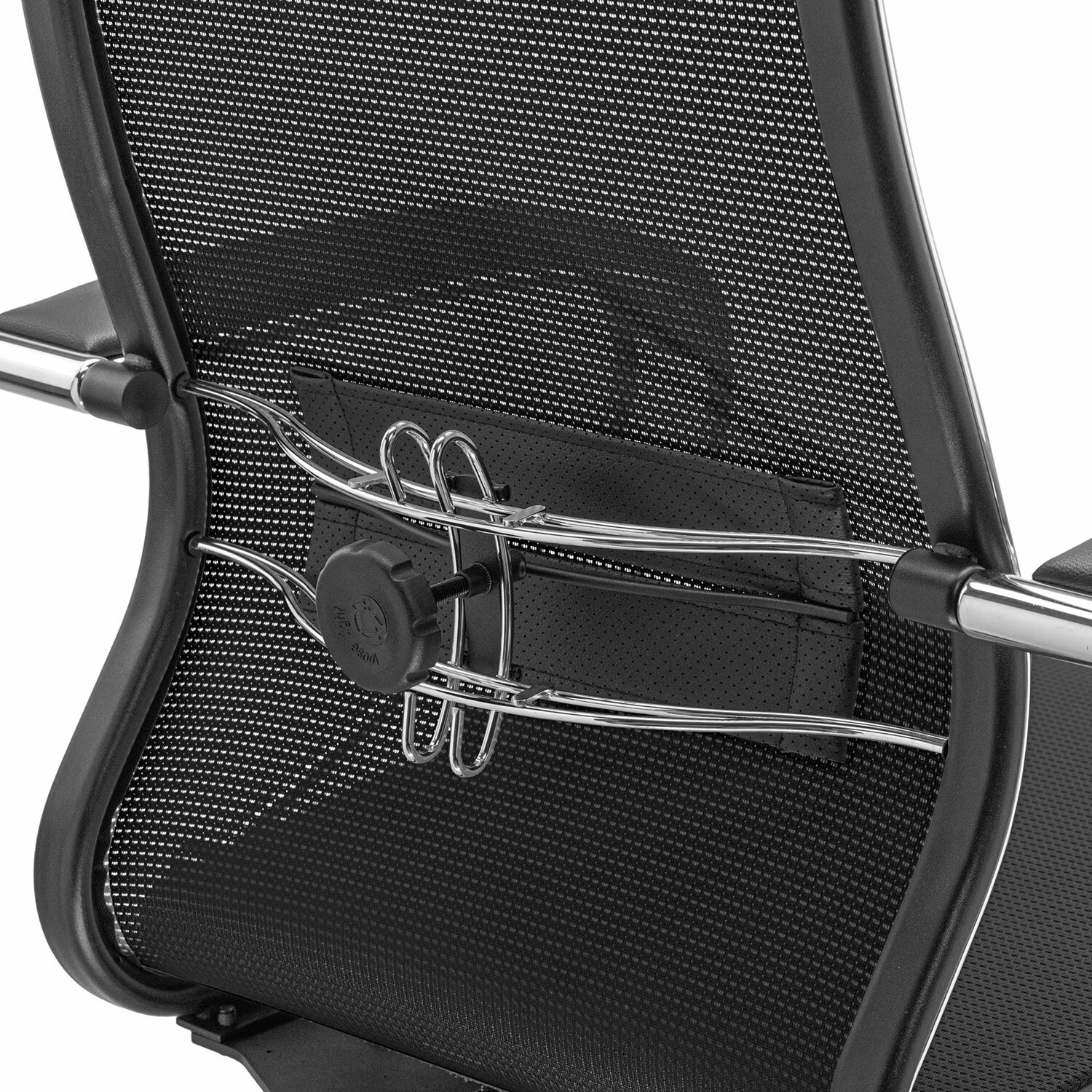 Кресло офисное МЕТТА «К-12», хром, ткань-сетка, сиденье и спинка регулируемые, черное