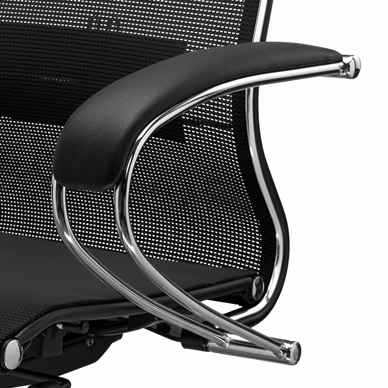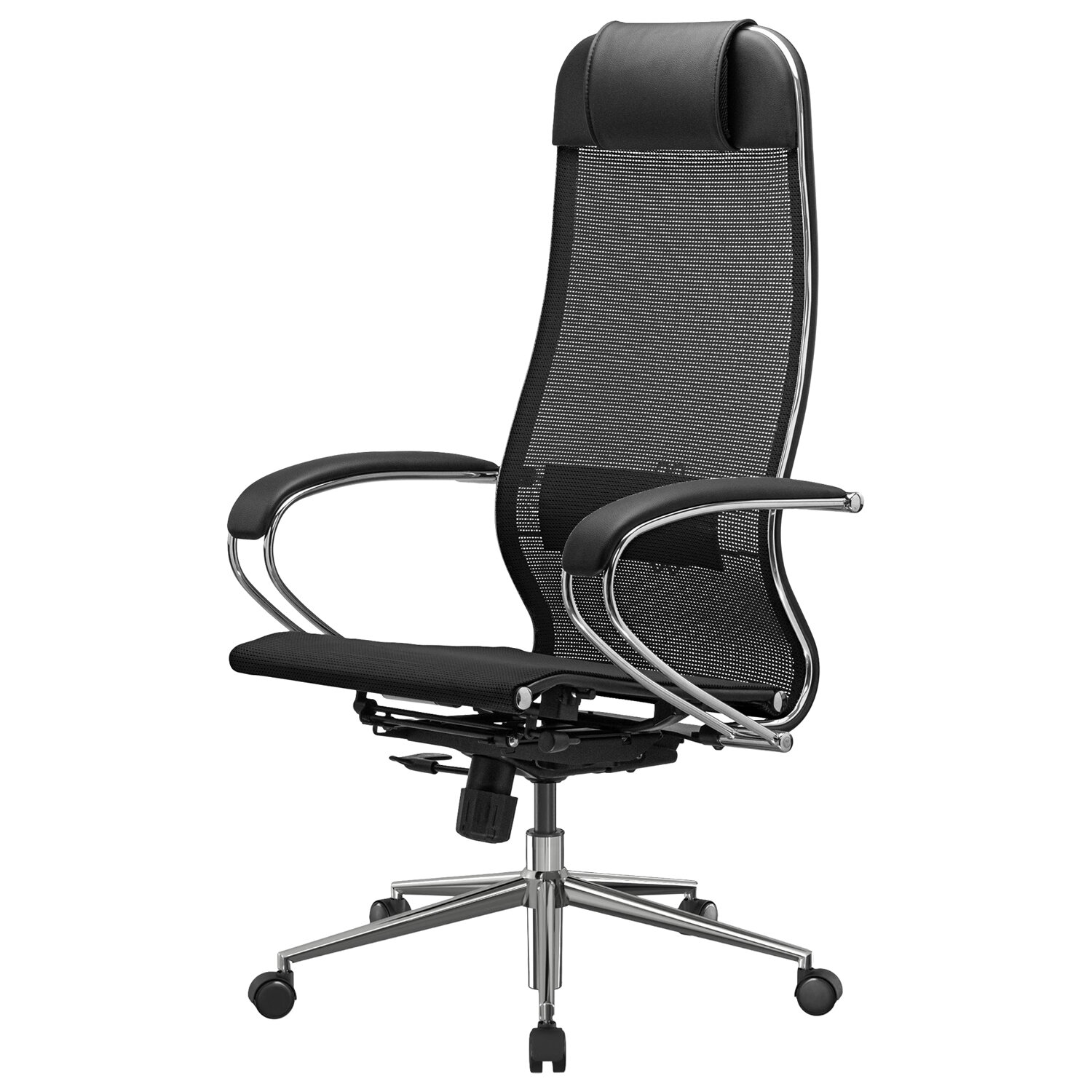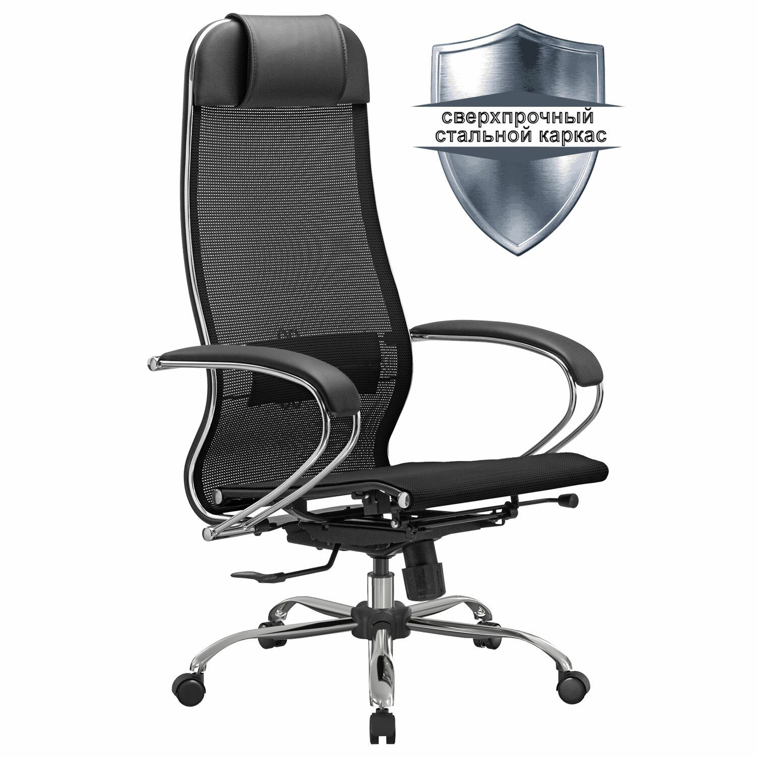 Кресло офисное МЕТТА «К-12», хром, ткань-сетка, сиденье и спинка регулируемые, черное
