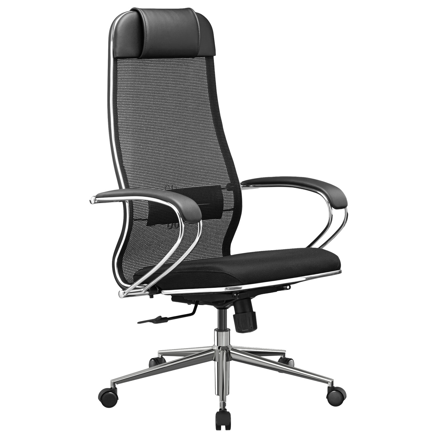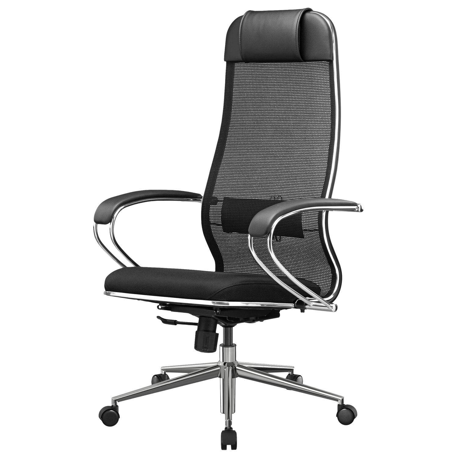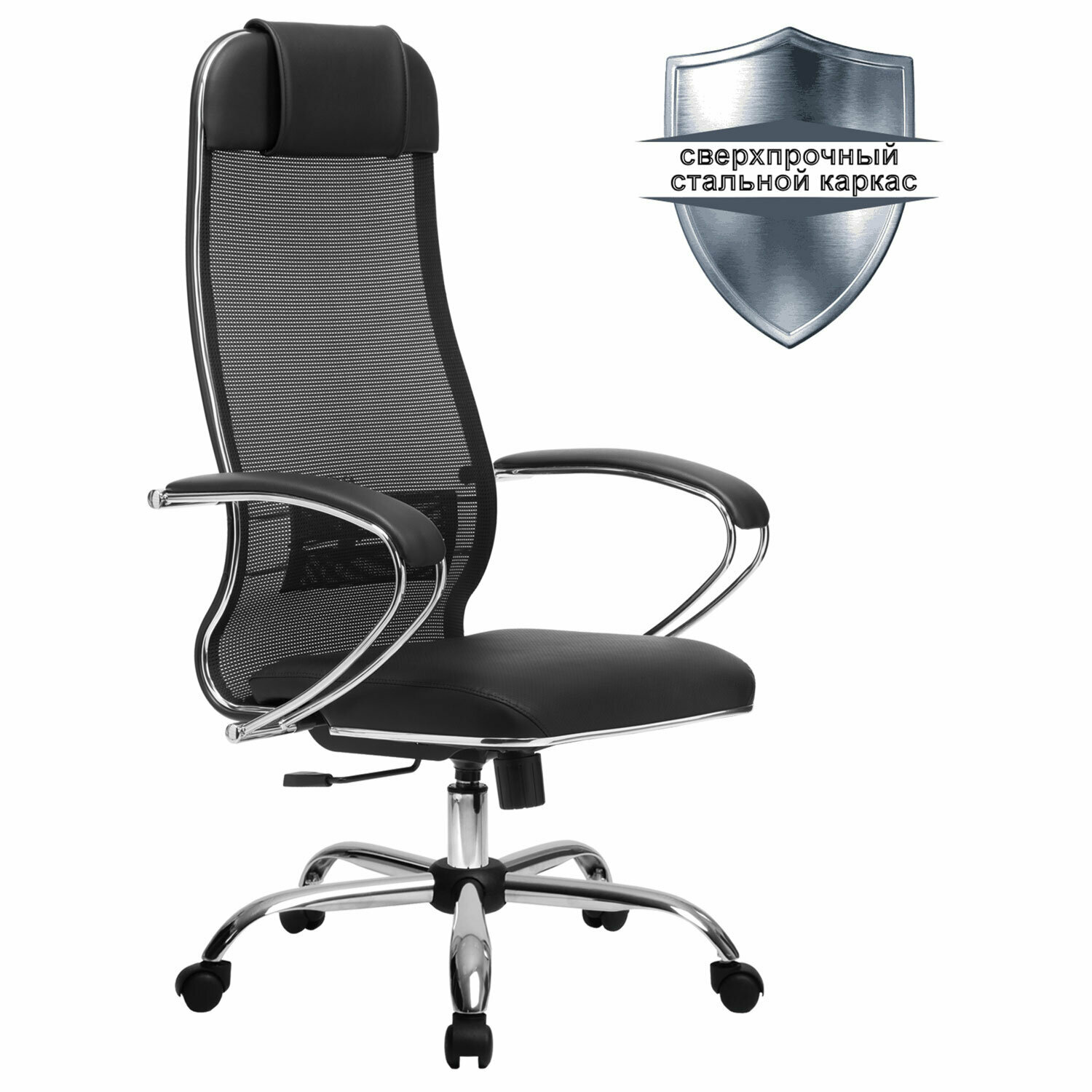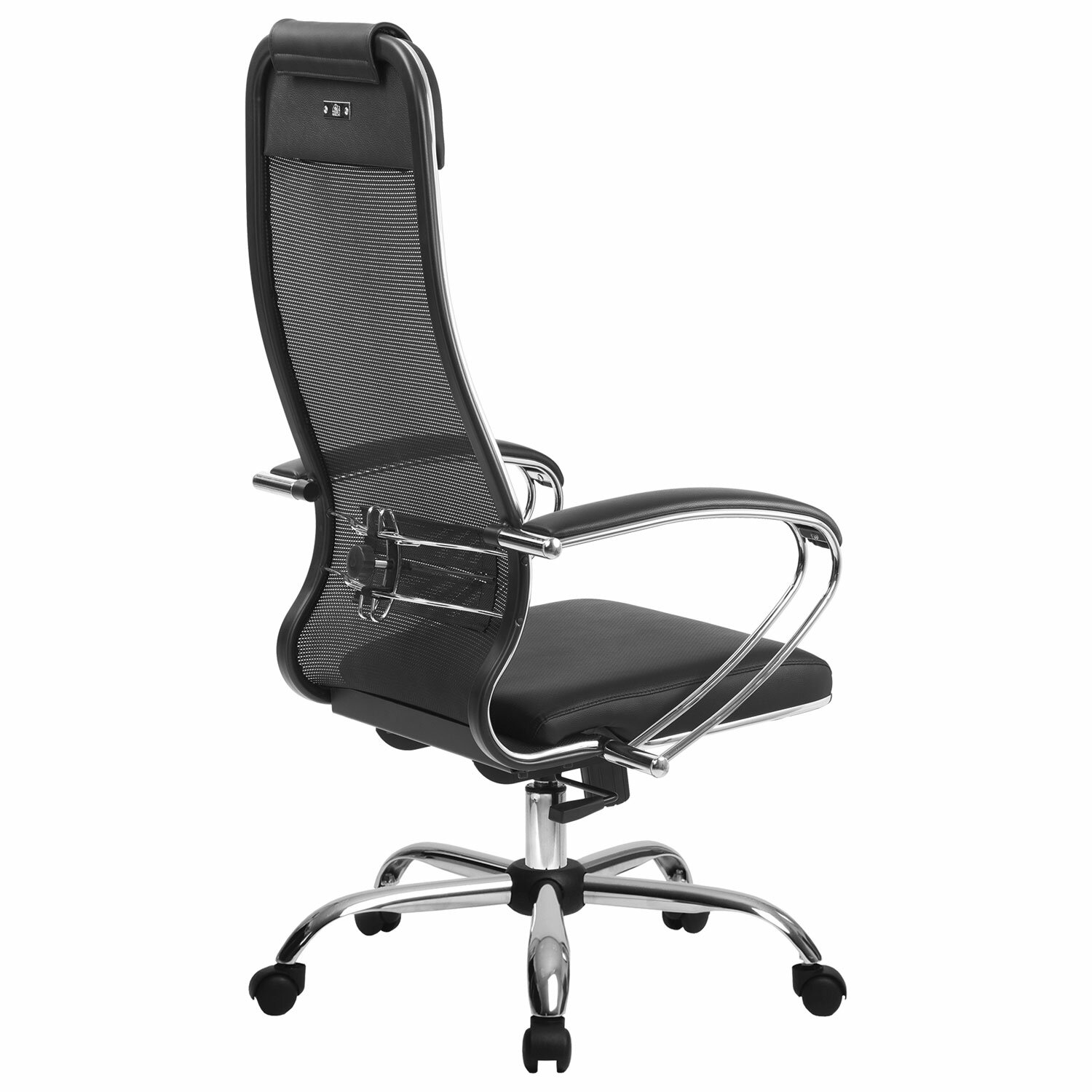 Кресло офисное МЕТТА «К-16» хром, ткань-сетка/экокожа, сиденье мягкое, черное