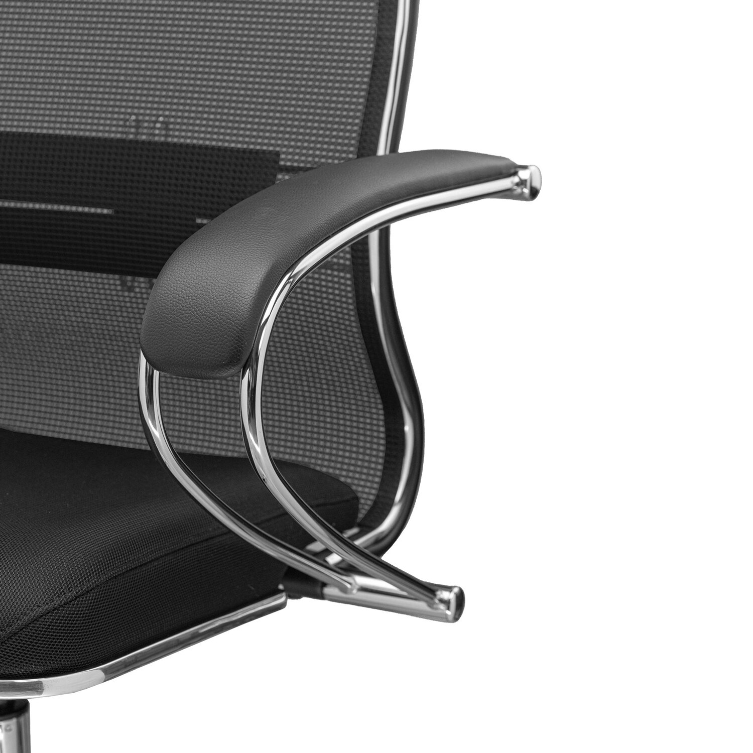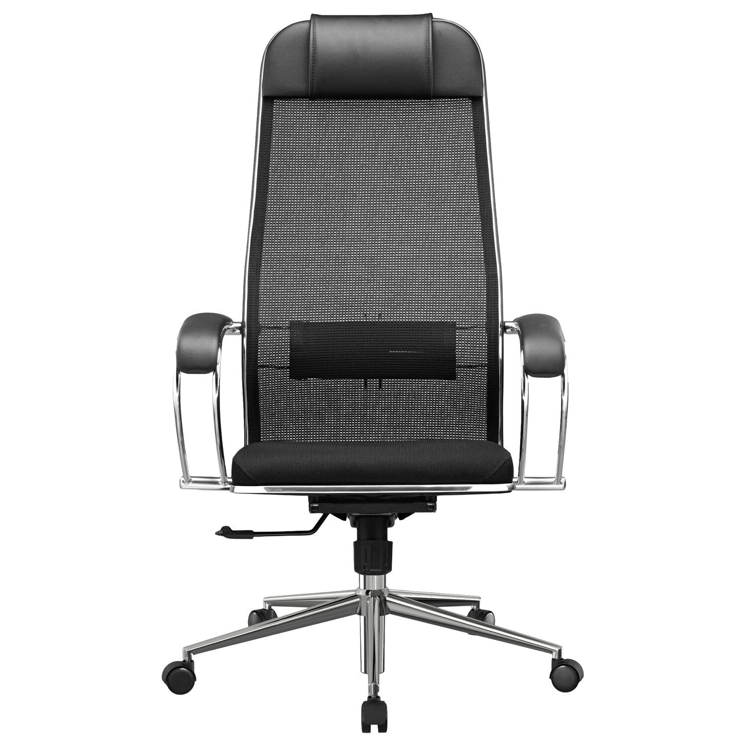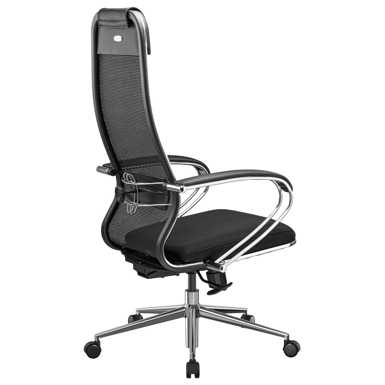 Кресло офисное МЕТТА «К-16» хром, ткань-сетка/экокожа, сиденье мягкое, черное