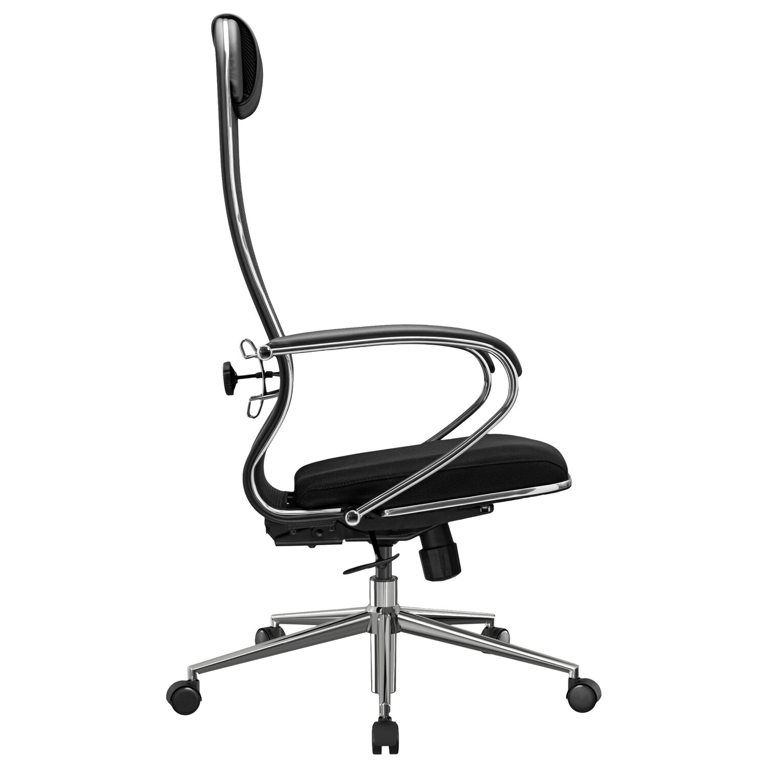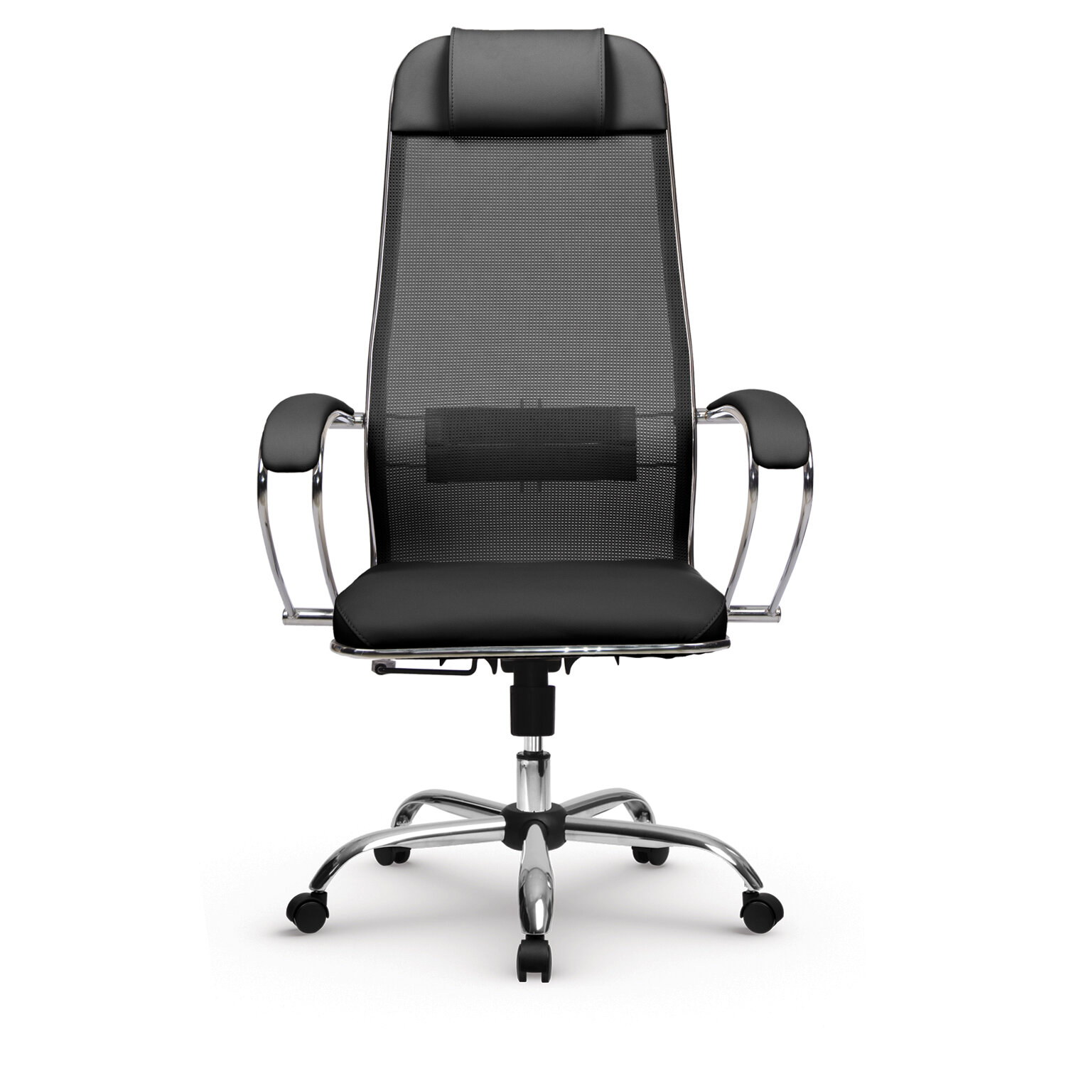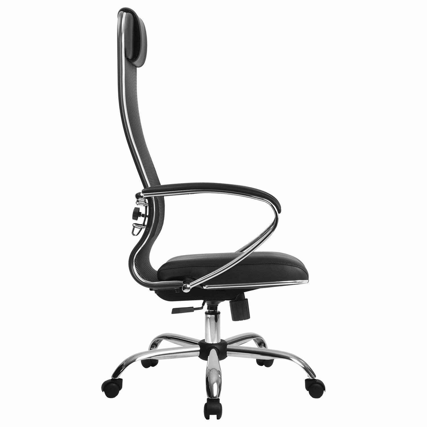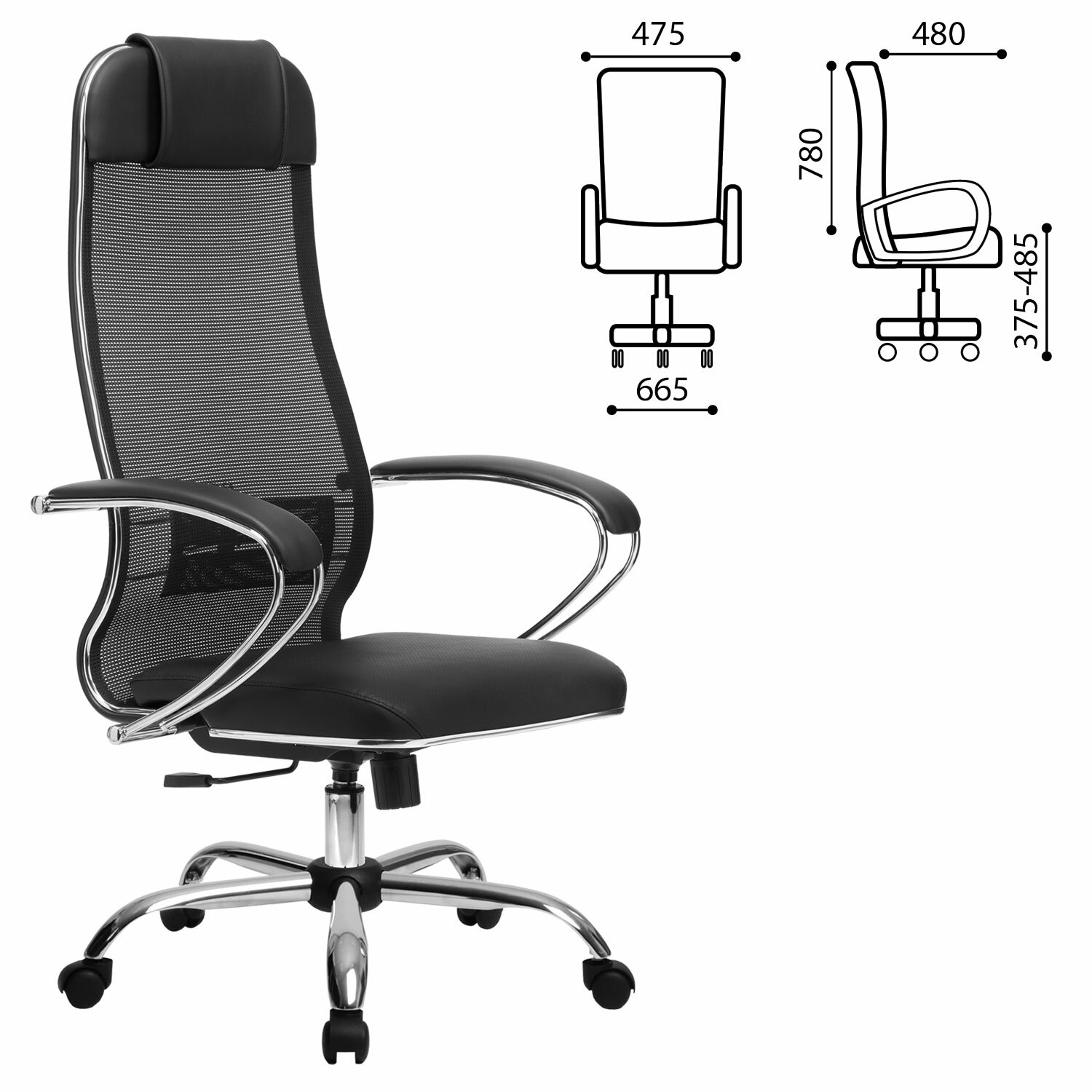 Кресло офисное МЕТТА «К-16» хром, ткань-сетка/экокожа, сиденье мягкое, черное
