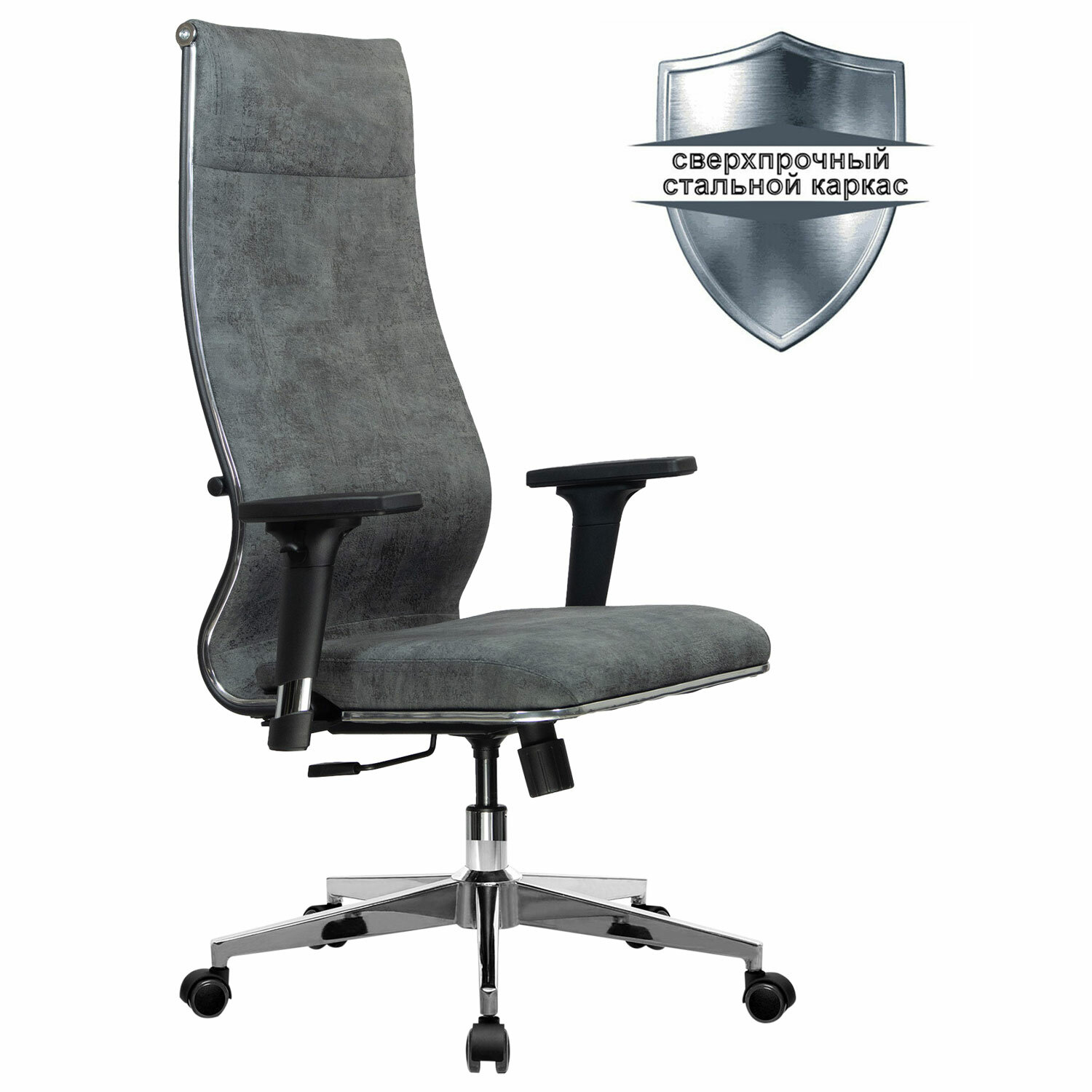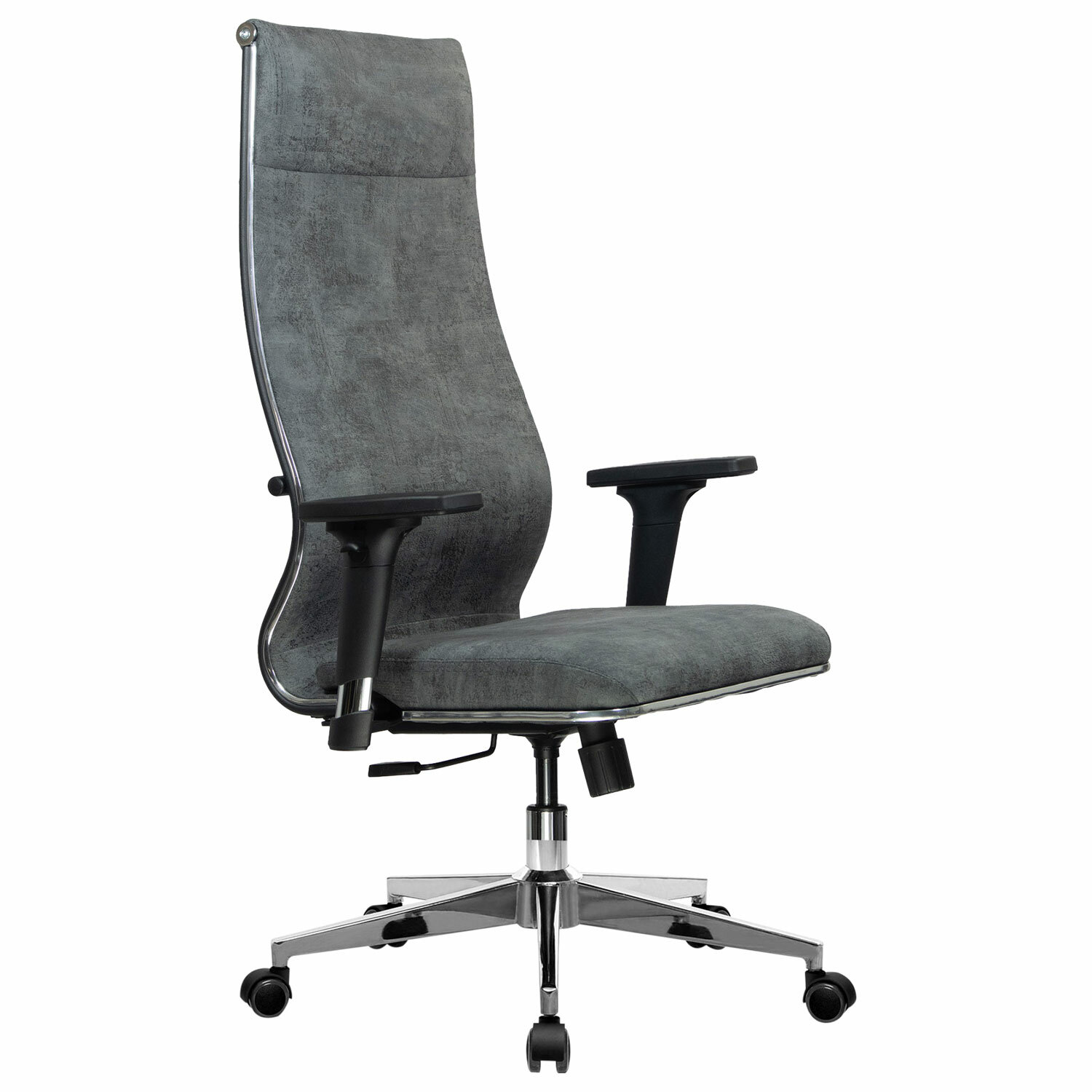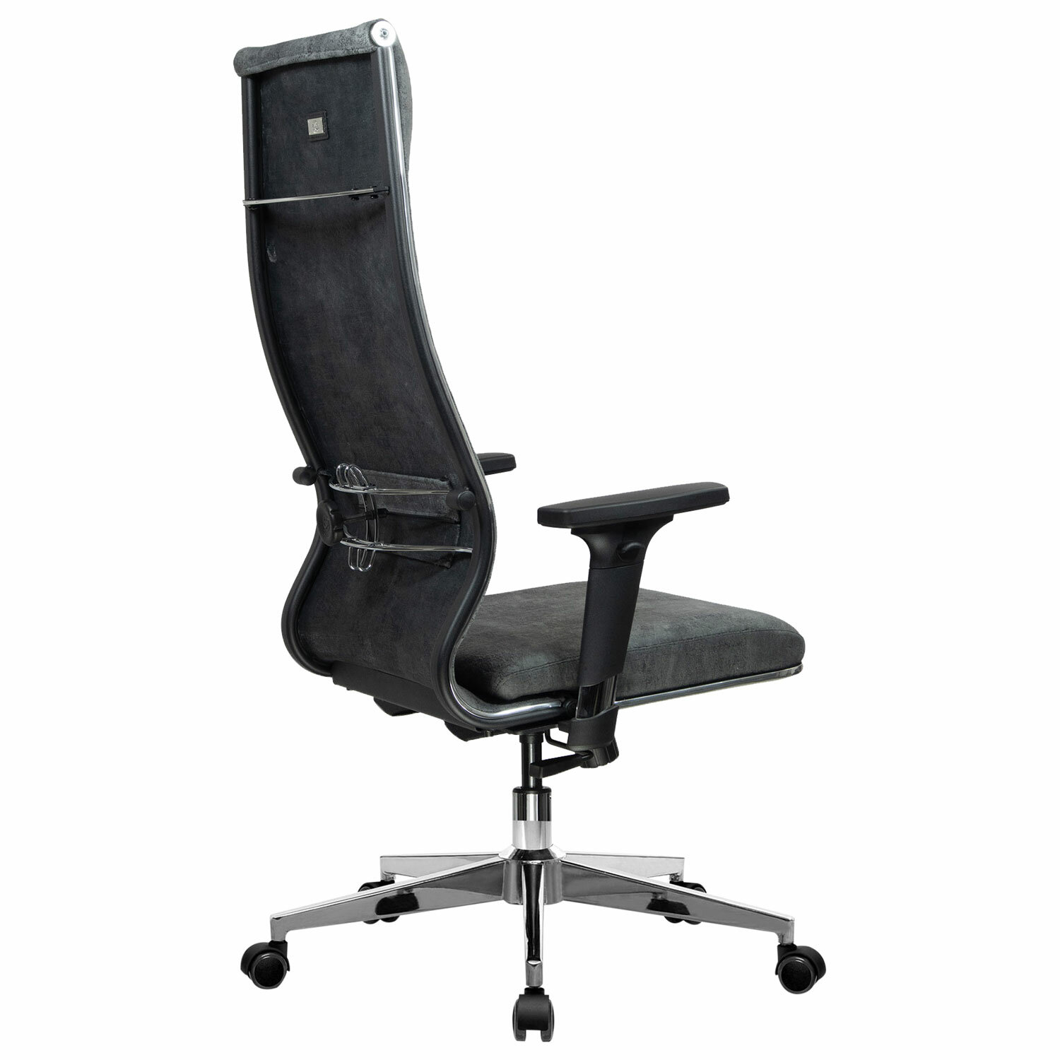 Кресло офисное МЕТТА «L1m 42/2D», хром, 2D-подлокотники, сиденье и спинка мягкие, велюр, темно-серое