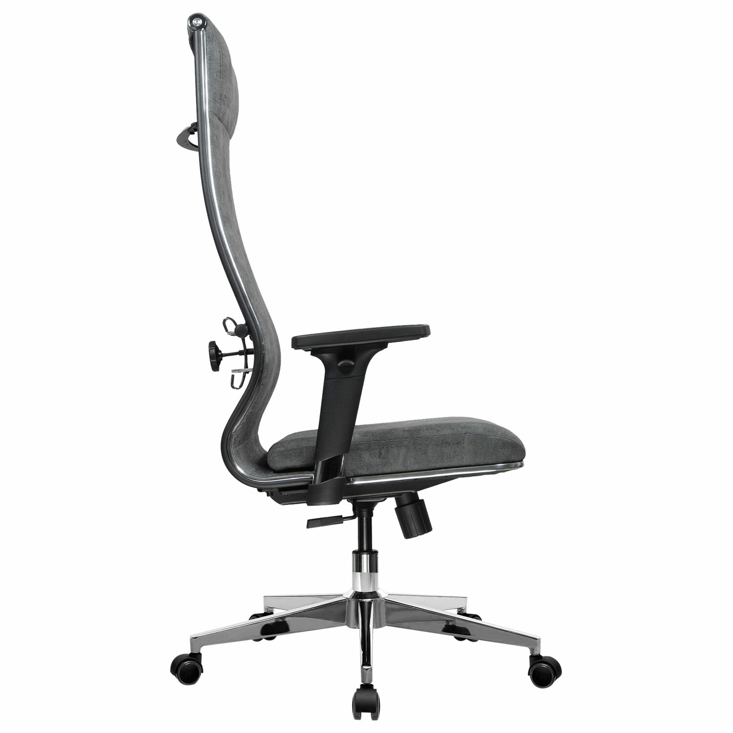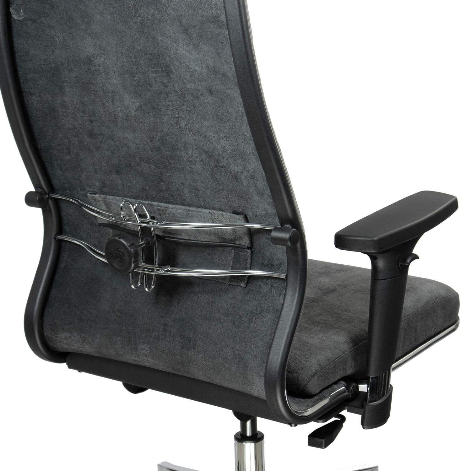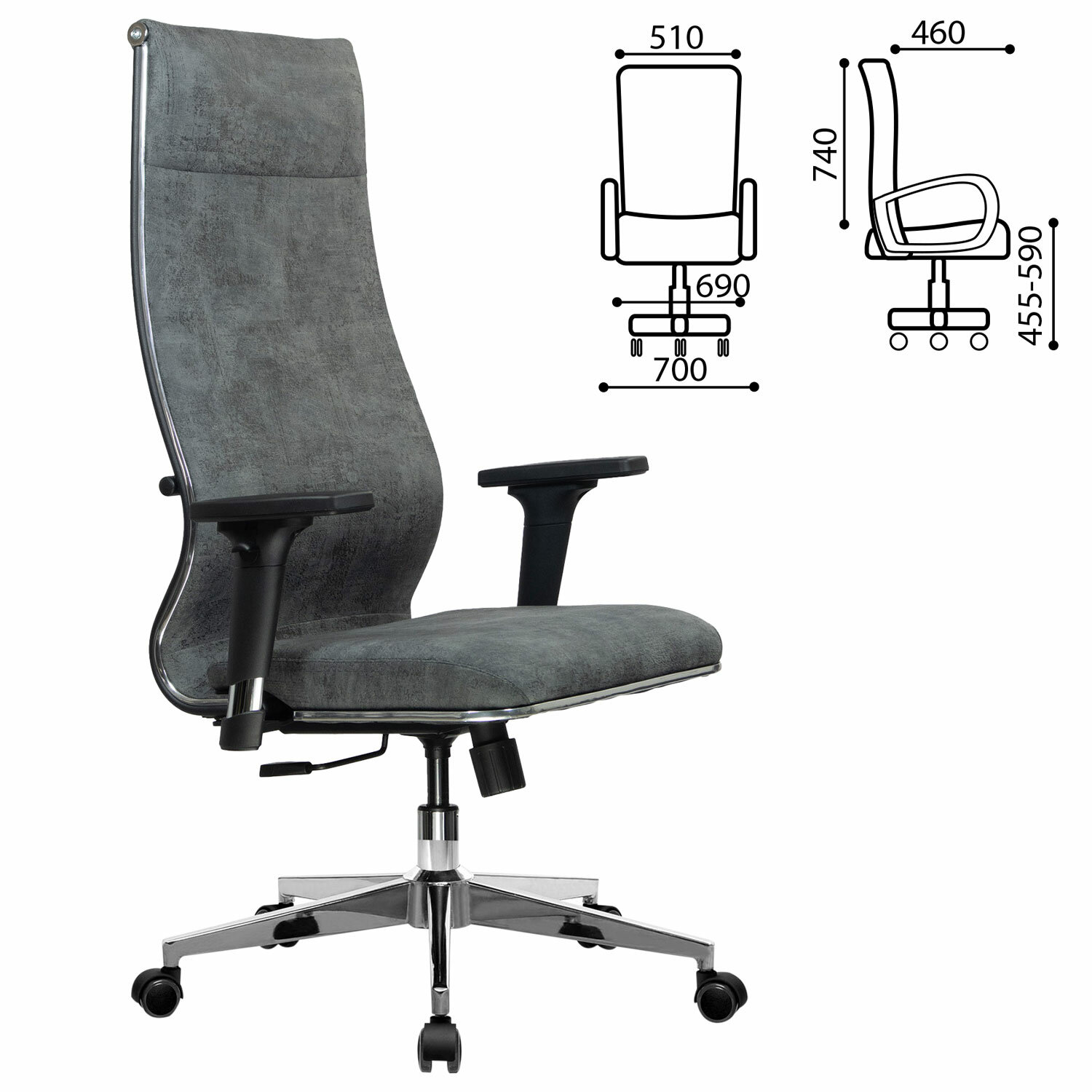 Кресло офисное МЕТТА «L1m 42/2D», хром, 2D-подлокотники, сиденье и спинка мягкие, велюр, темно-серое