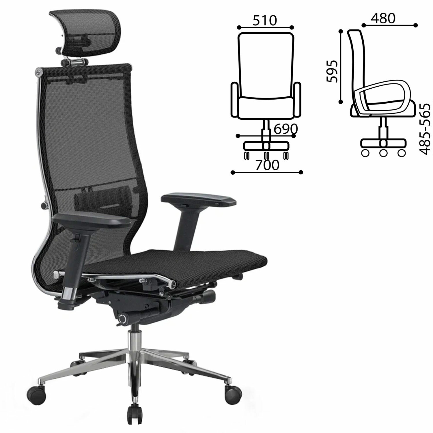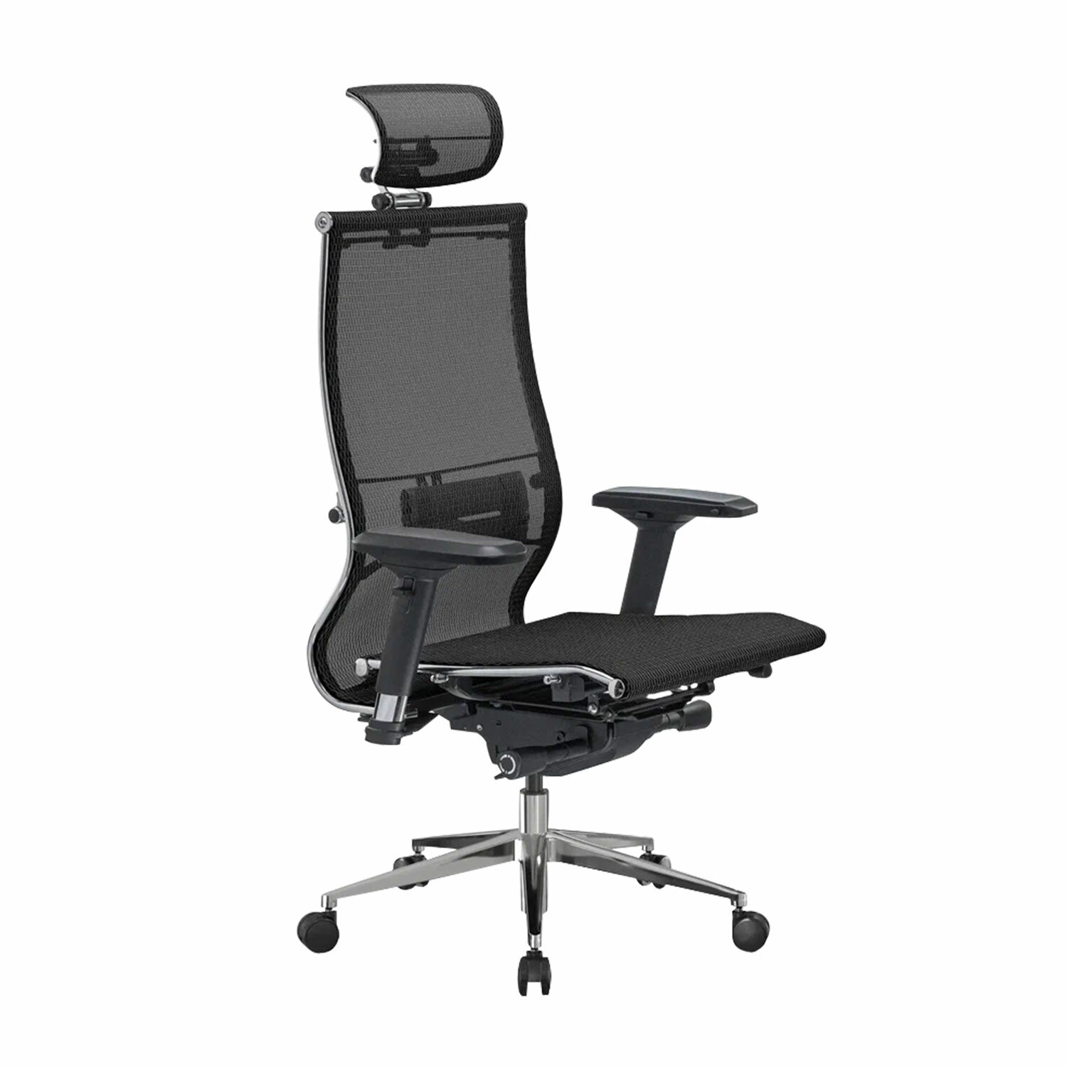 Сверхпрочный стальной каркас обеспечивает надежность кресла, а покрытие зеркальным хромом придает привлекательный вид.Обивка из сверхпрочной сетчатой ткани армированной арамидным волокном.Комфортное и «дышащее» сиденье и спинка из сверхпрочной сетчатой ткани.Регулировка глубины сиденья с помощью специального слайдера.3D-подголовник серии R повышенной комфортности с регулировкой высоты, глубины и угла наклона. 4D-подлокотники с регулировкой по высоте, углу поворота и расстояния между подлокотниками.»Мультиблок со слайдером» – механизм качания с возможностью регулировки силы отклонения и фиксации в четырех различных положениях угла наклона кресла. Функция «Антишок-эффект» позволяет исключить неожиданное «опрокидывание» кресла при изменении угла наклона кресла. Раздельное отклонение спинки и сиденья.Спинка имеет стальной поясничный подпор с двухзонной регулировкой поддержки и ремнем из перфорированной экокожи Extra.Зеркальное литое пятилучие с прямоугольным сечением лучей, D – 700 мм.