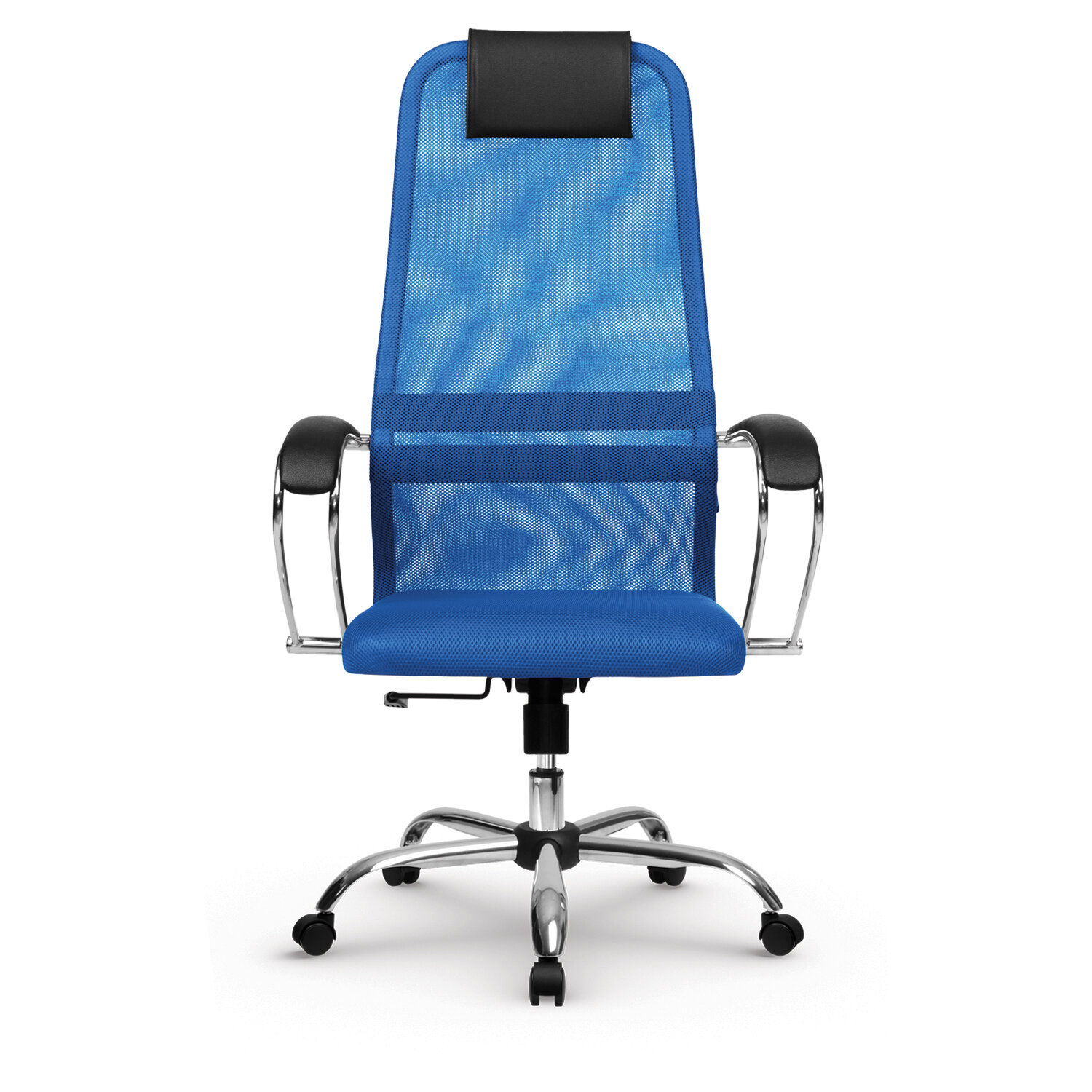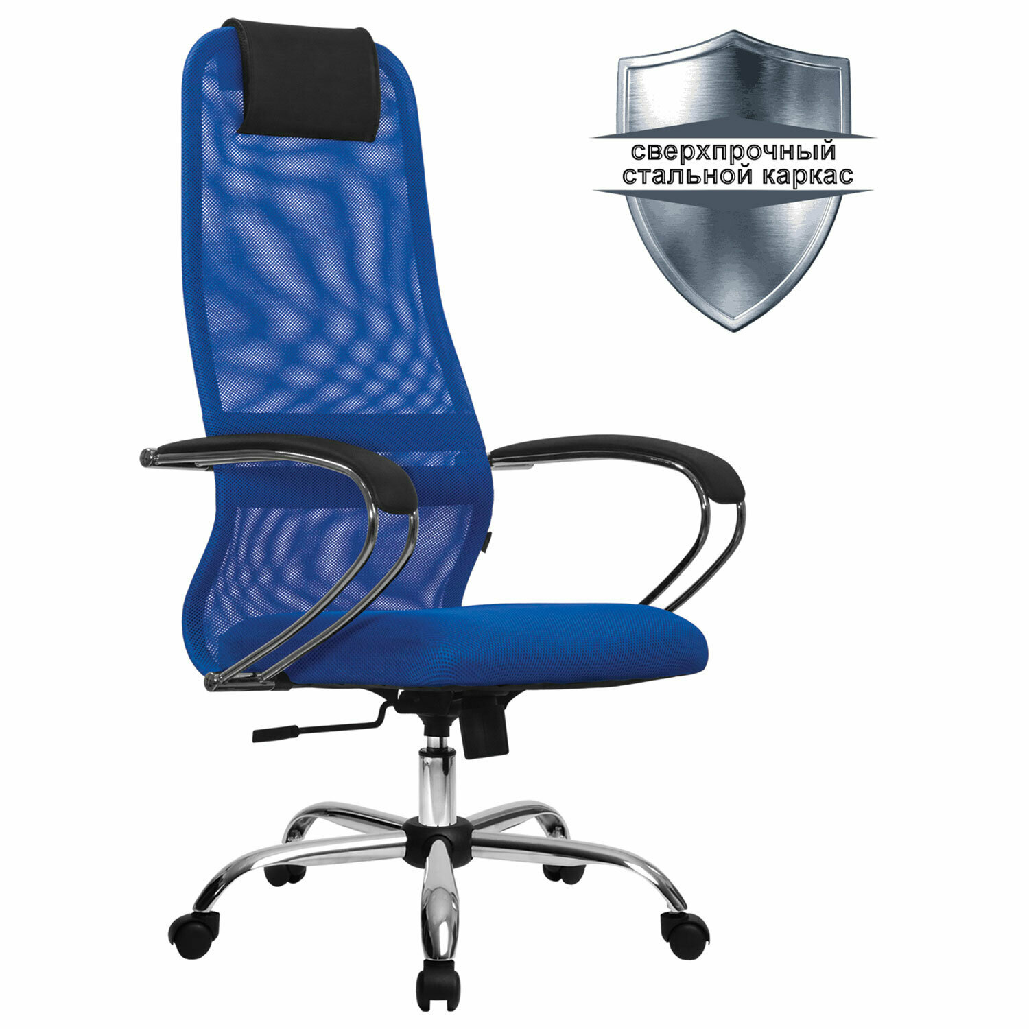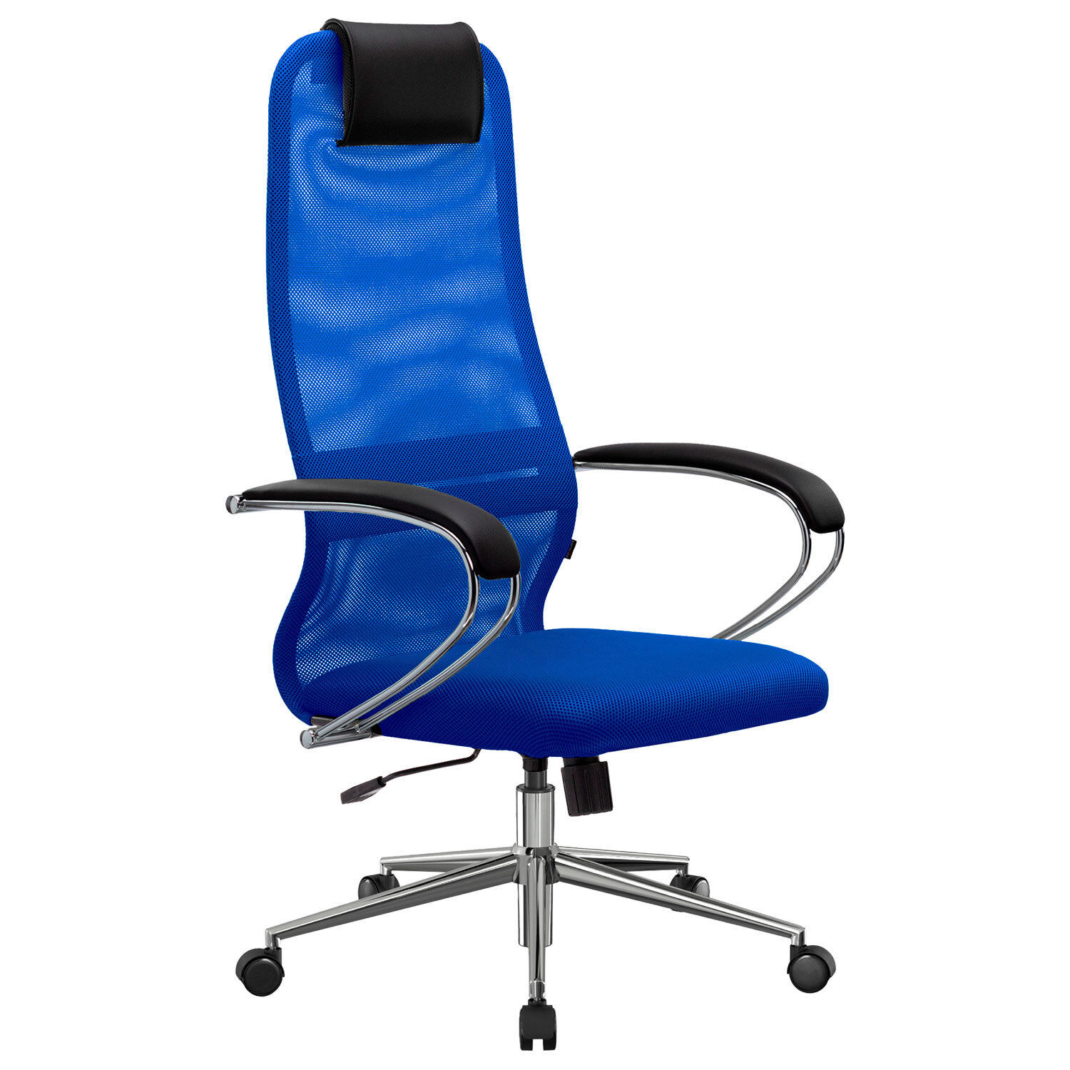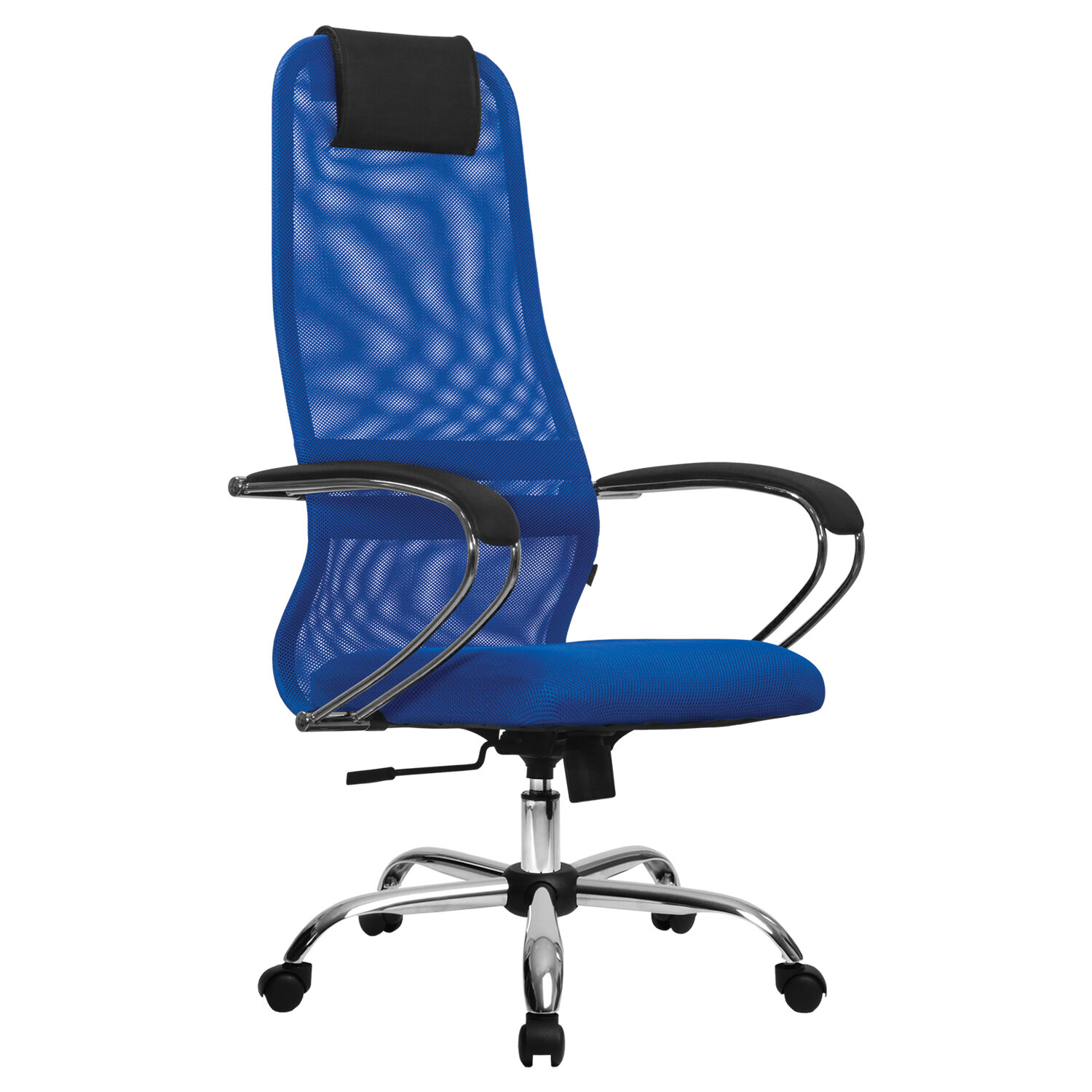 Кресло офисное МЕТТА «SU-B-8» хром, ткань-сетка, сиденье мягкое, синее