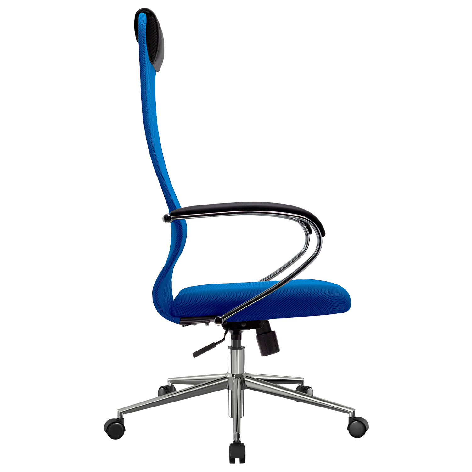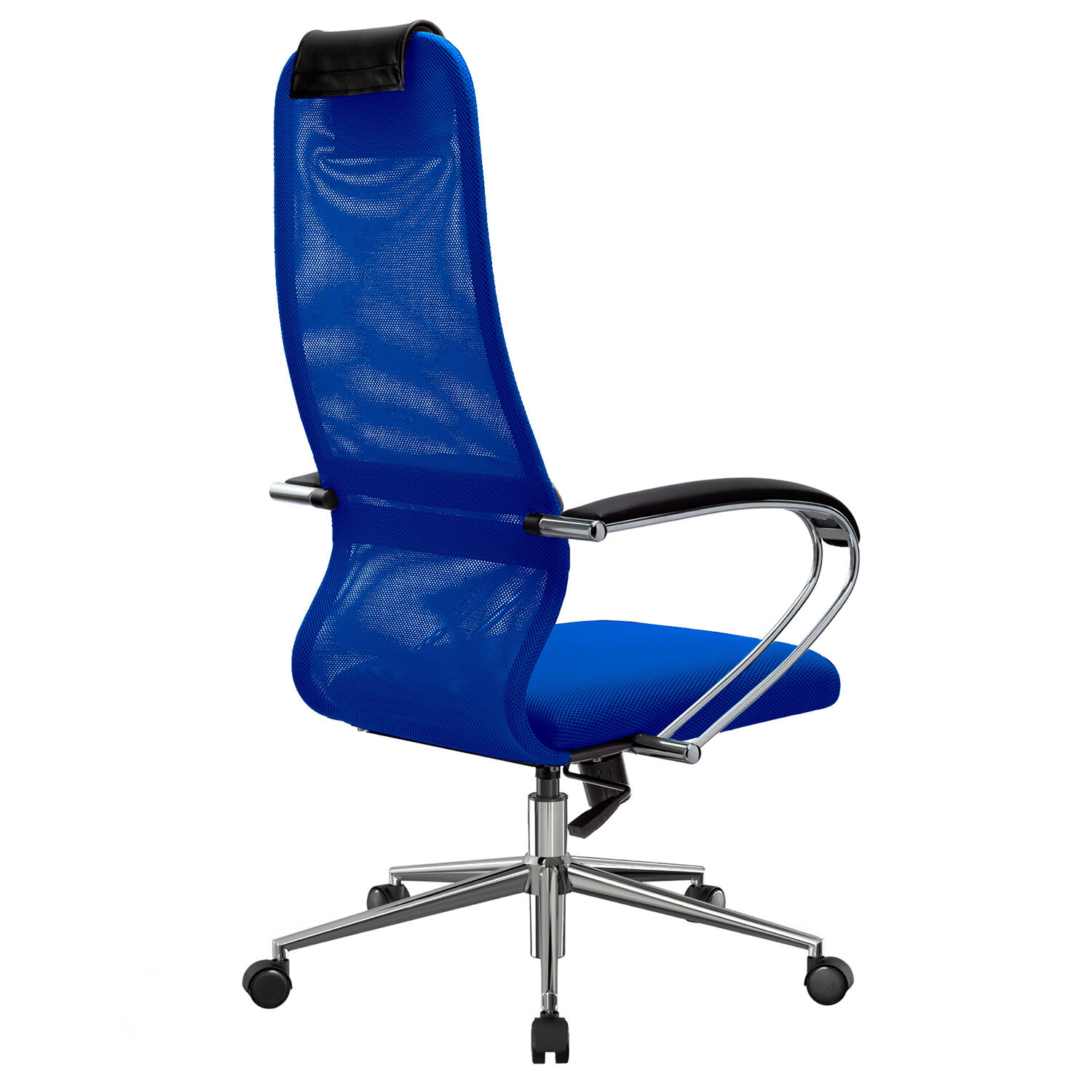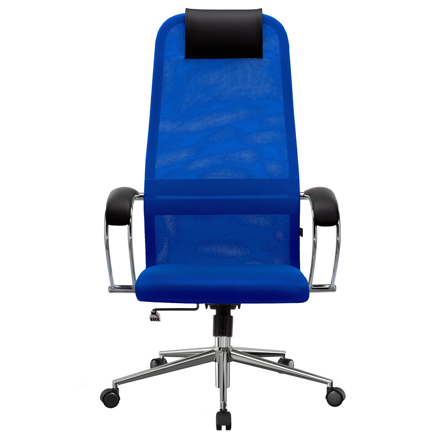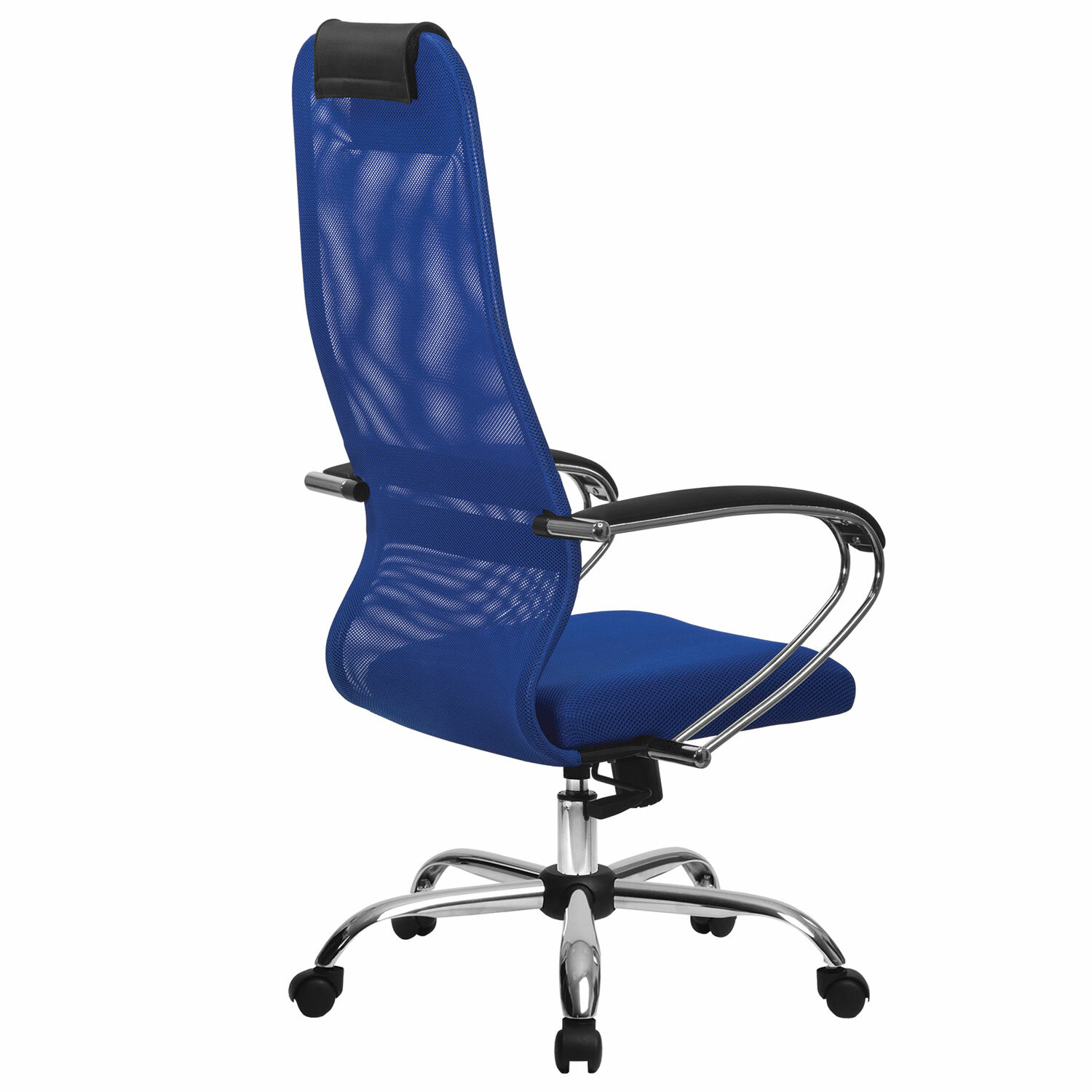 Кресло офисное МЕТТА «SU-B-8» хром, ткань-сетка, сиденье мягкое, синее