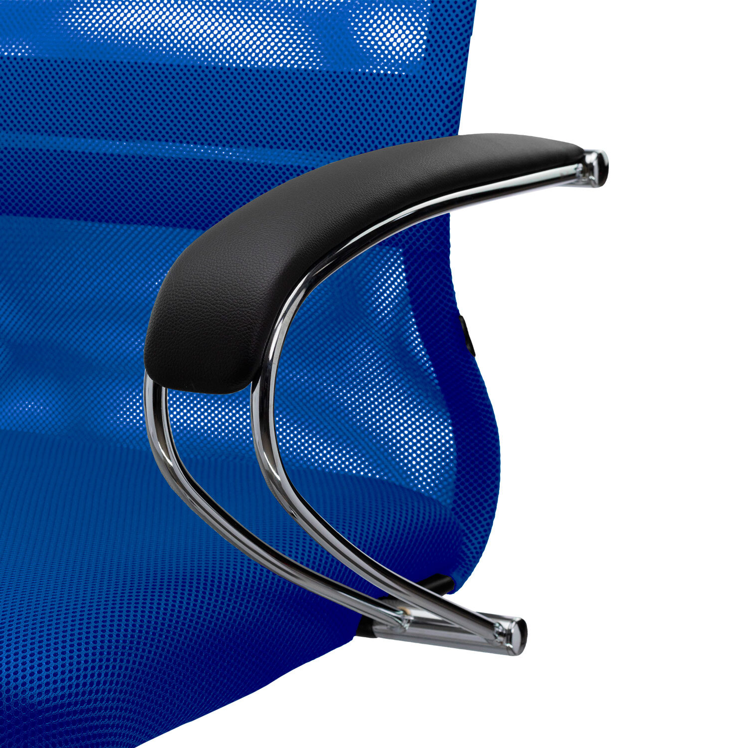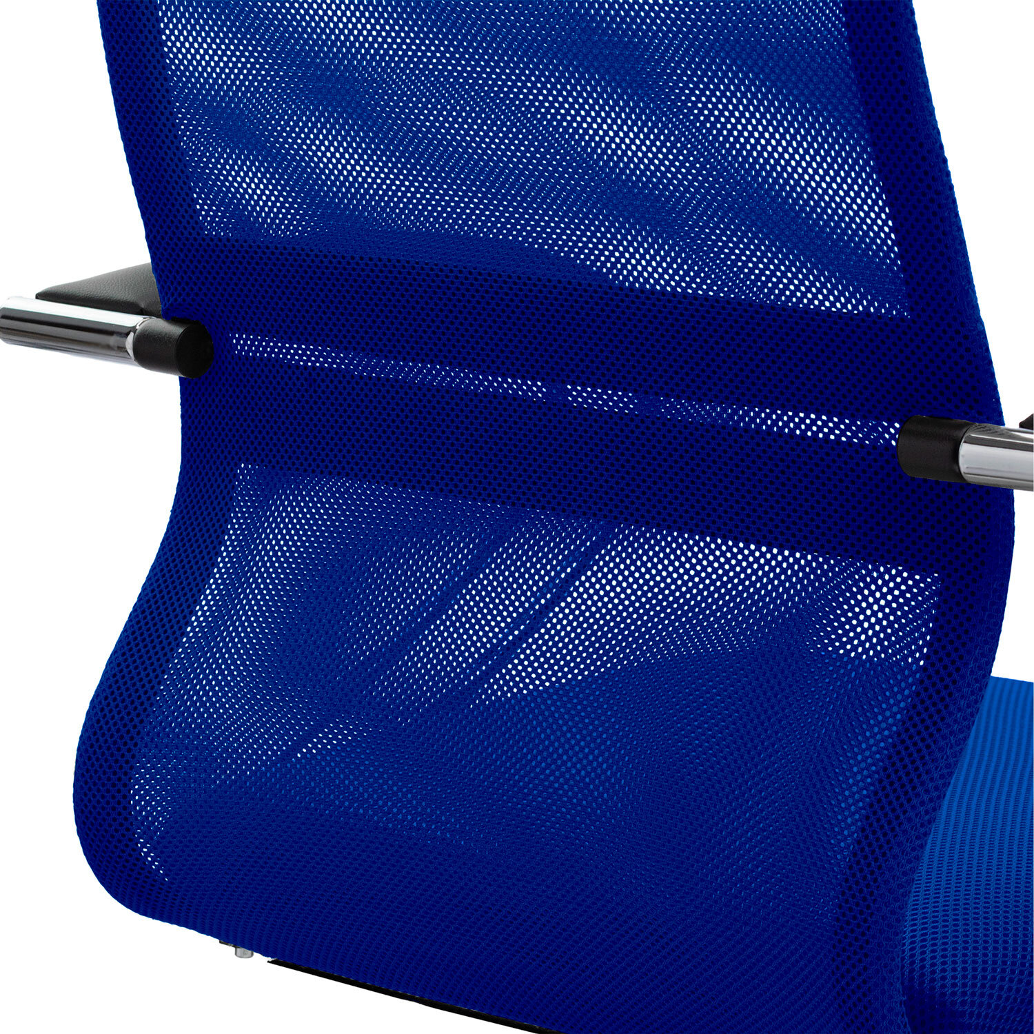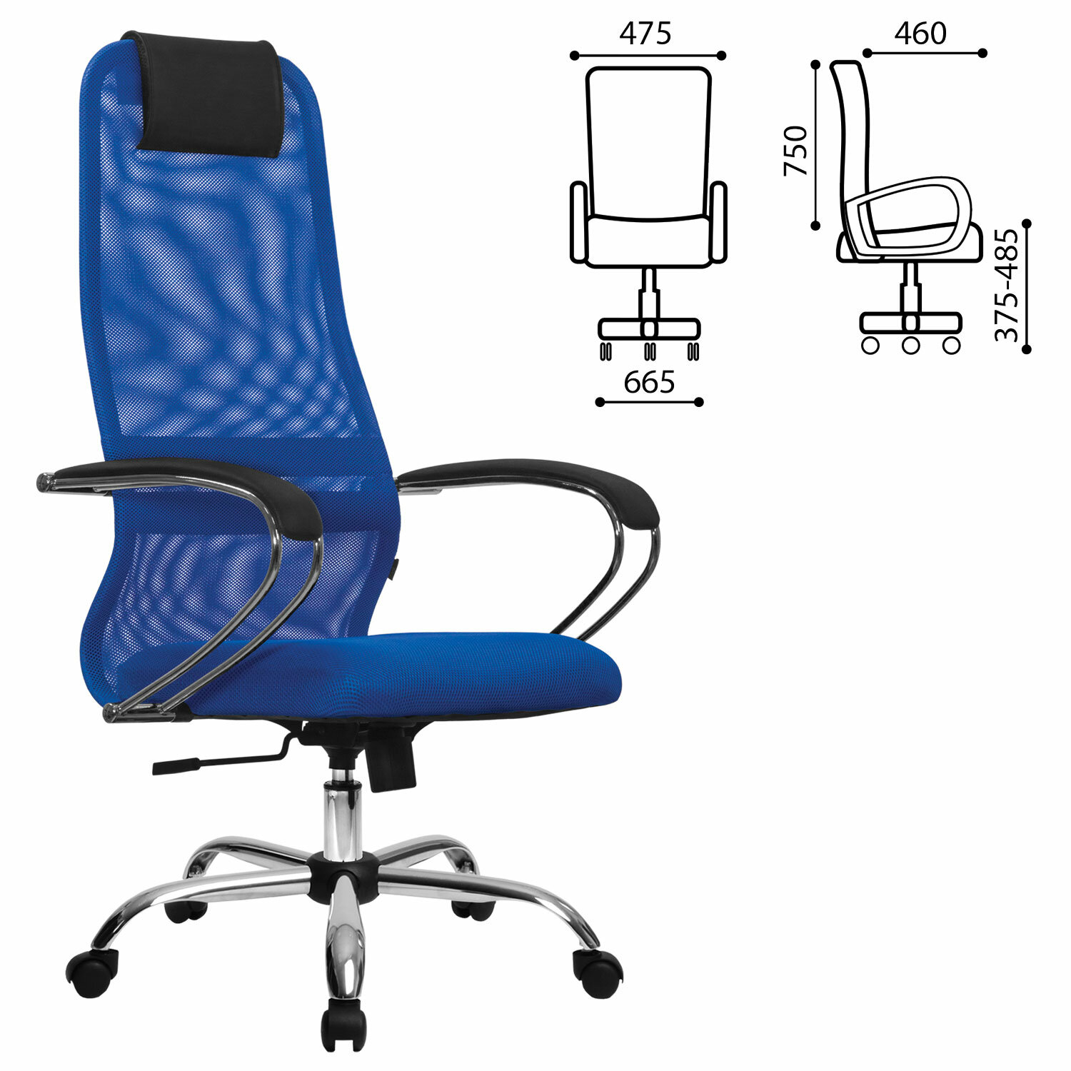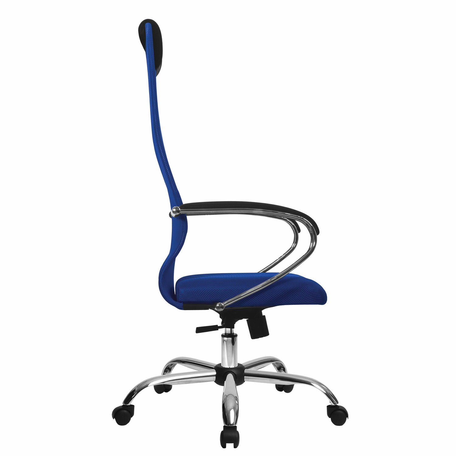 Кресло офисное МЕТТА «SU-B-8» хром, ткань-сетка, сиденье мягкое, синее