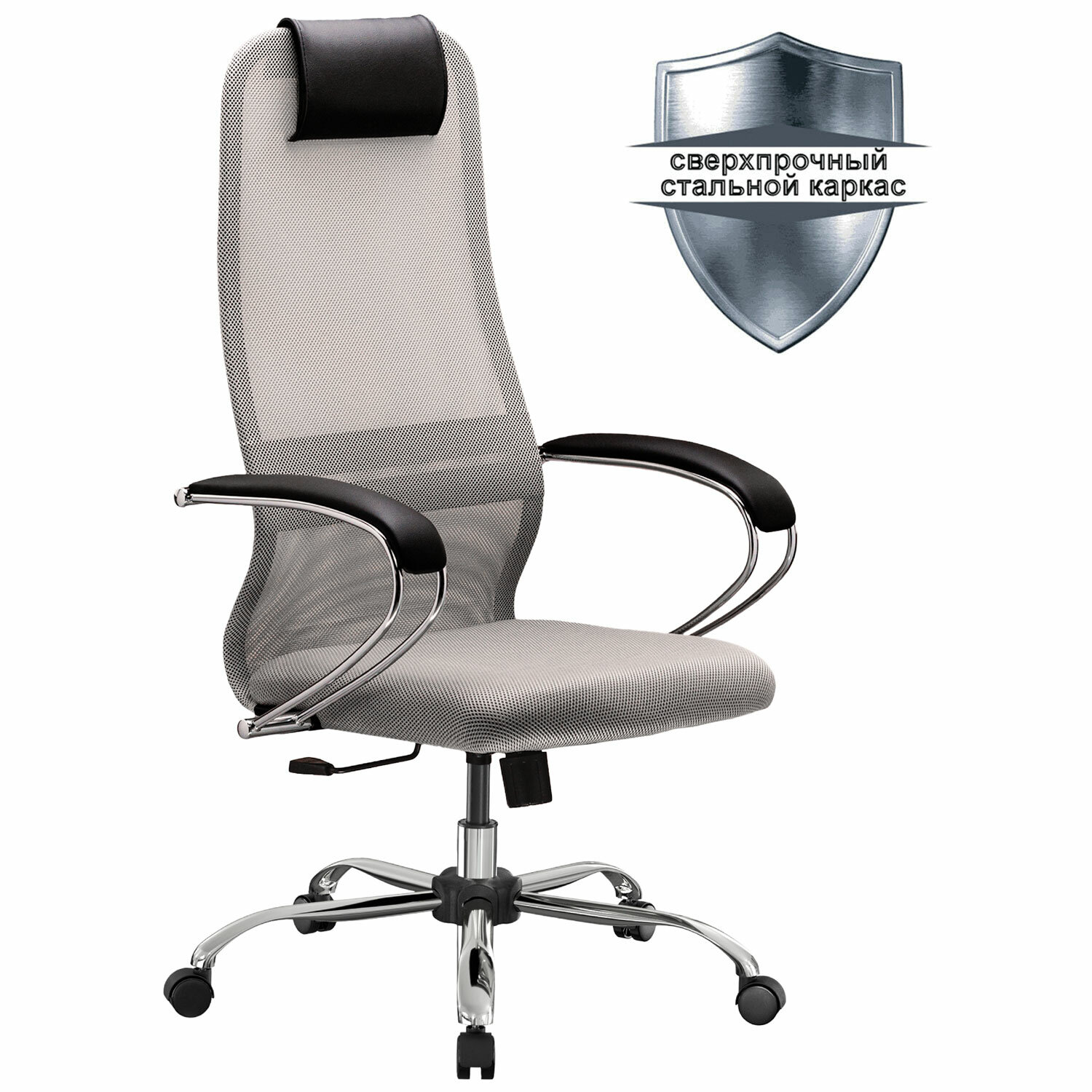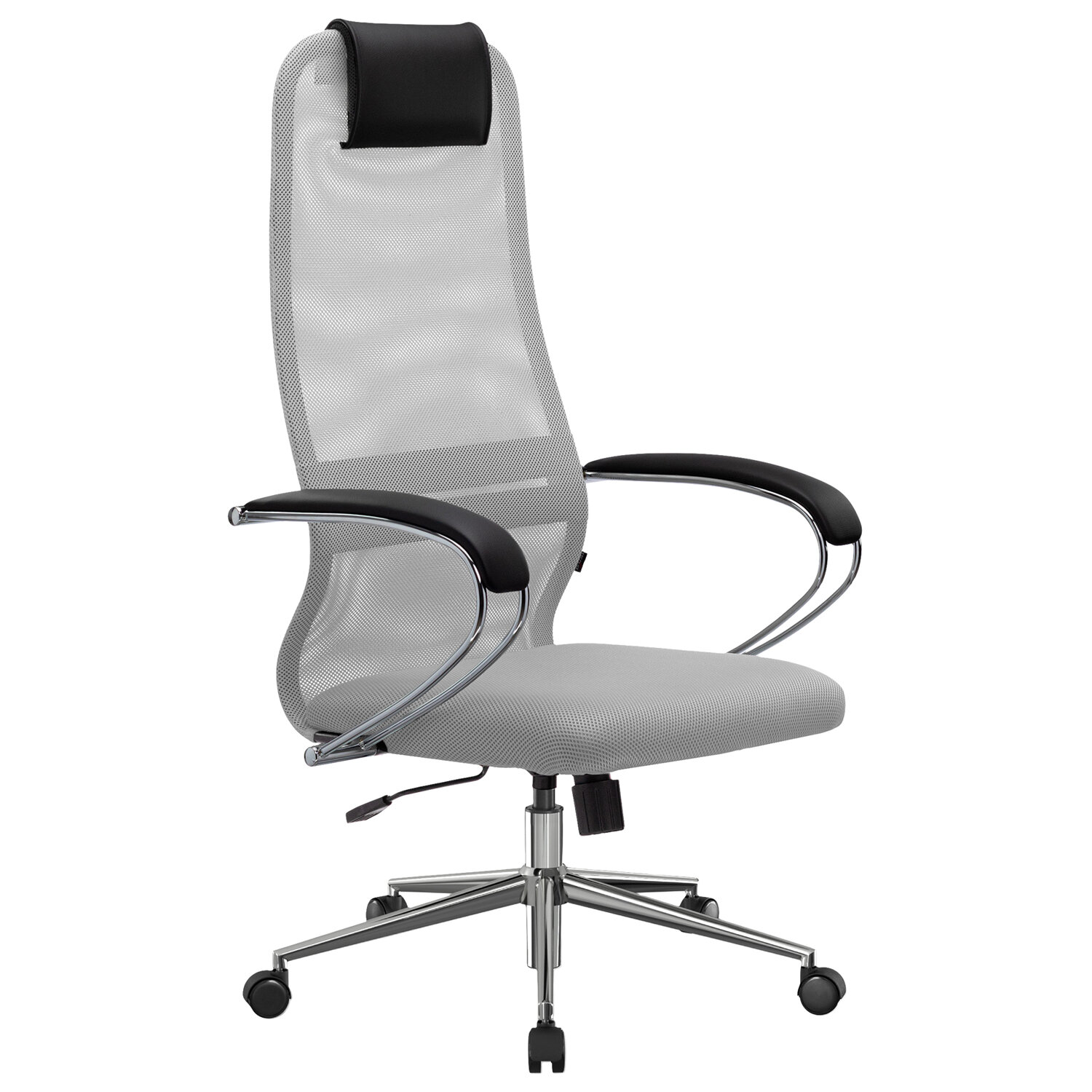 Кресло офисное МЕТТА «SU-B-8» хром, ткань-сетка, сиденье мягкое, светло-серое