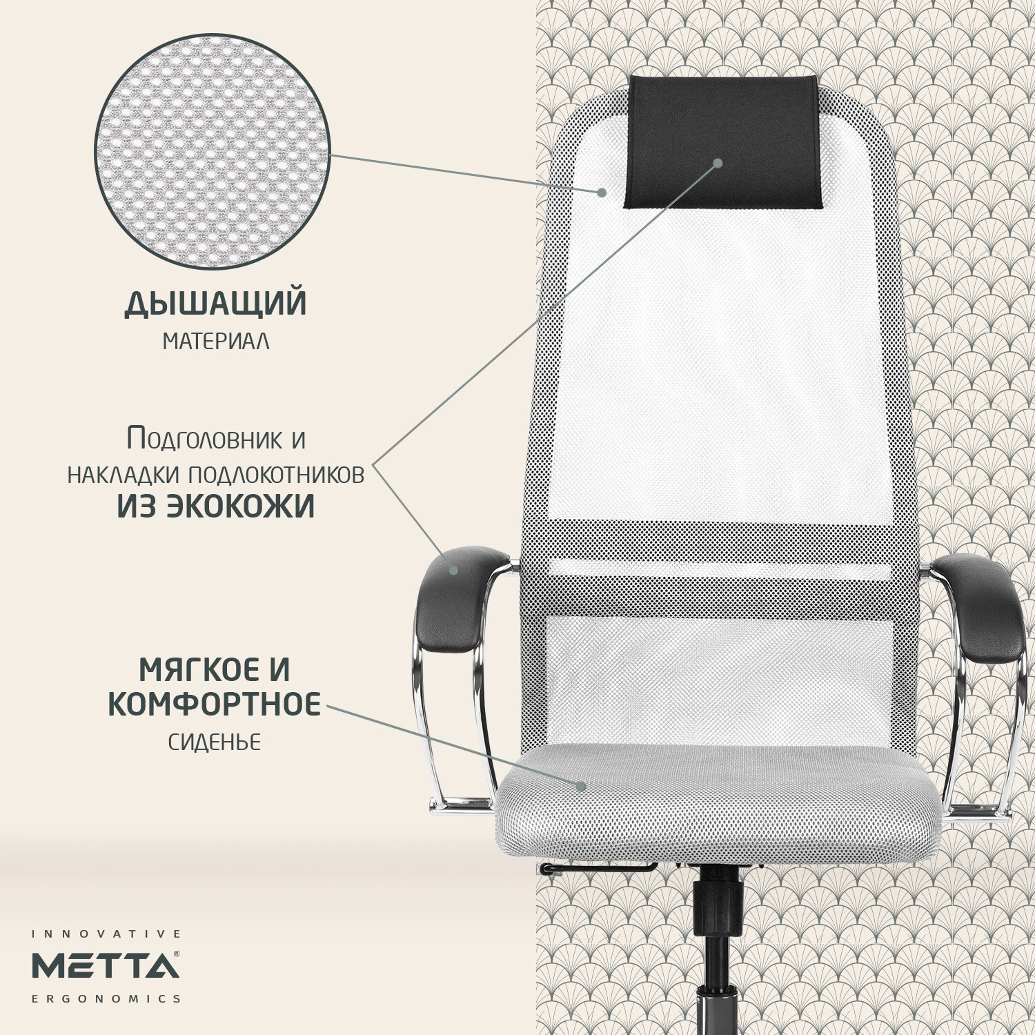 Кресло офисное МЕТТА «SU-B-8» пластик, ткань-сетка, сиденье мягкое, светло-серое