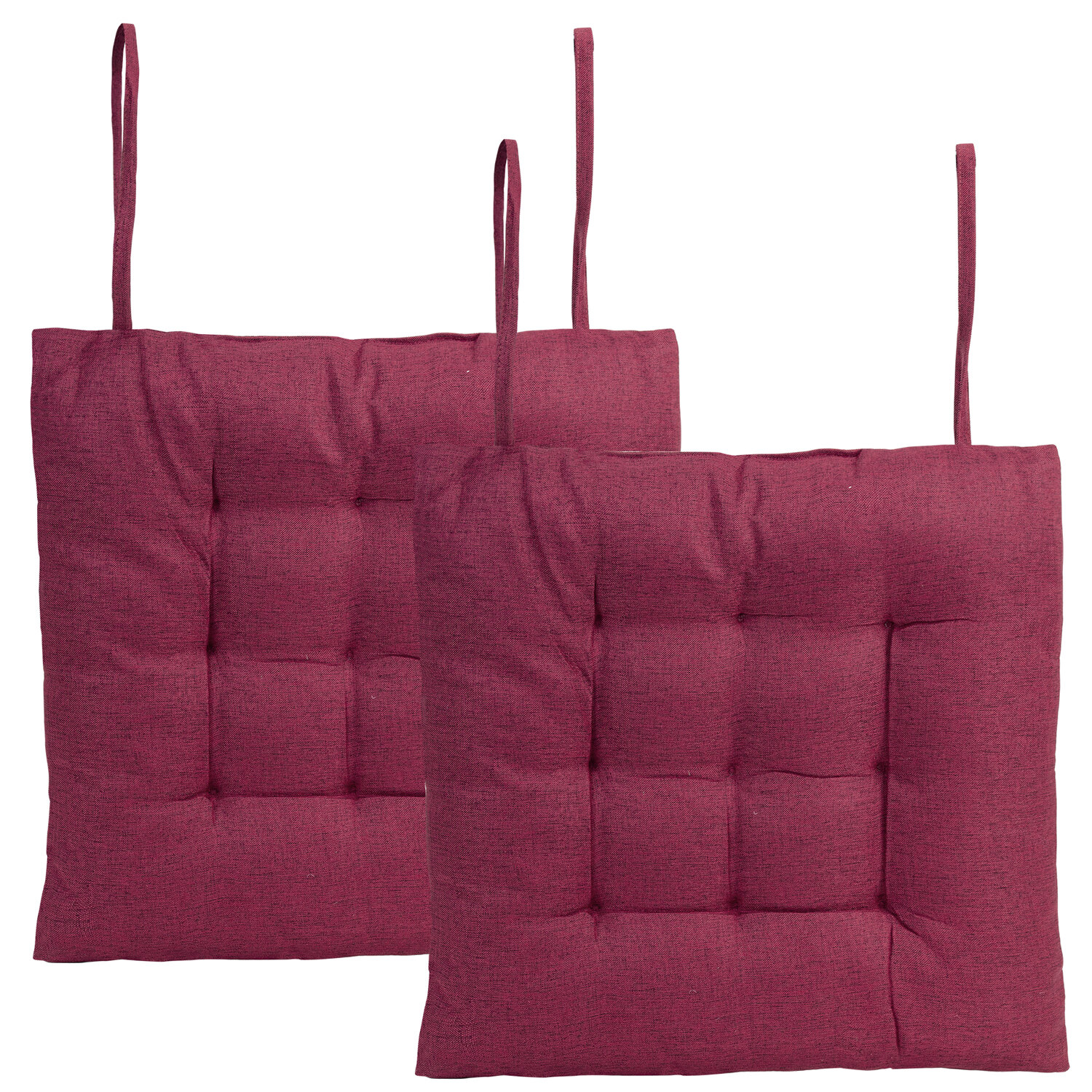 • Характеристики:- размер: 40х40 см.- цвет: бордовый.- чехол: 100% полиэстер.- наполнитель: 100% полиэфирное волокно.• Преимущества:- 2 пары завязок надежно зафиксируют подушку и не позволят ей скользить.- стильный дизайн и оригинальный вид (9 прошитых углублений).- объемная форма и оптимальная толщина.- благодаря прошитым углублениям наполнитель равномерно распределен по подушке, что обеспечивает дополнительный комфорт при длительном сидении.Если подушка загрязнится, ее можно постирать в деликатном режиме при температуре не более 30 °С. Не рекомендуется сушить в сушильной машине, гладить и подвергать химчистке.ВАЖНО! Продукция поставляется в вакуумированном виде, в связи с чем для первые несколько дней использования форма подушки будет иметь более плоский вид. Для ускорения процесса восстановления первоначальной формы рекомендуется промять подушку по всей поверхности.