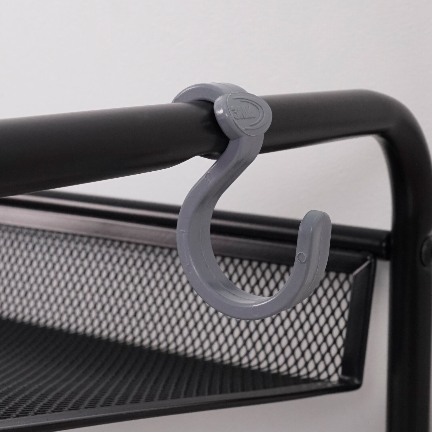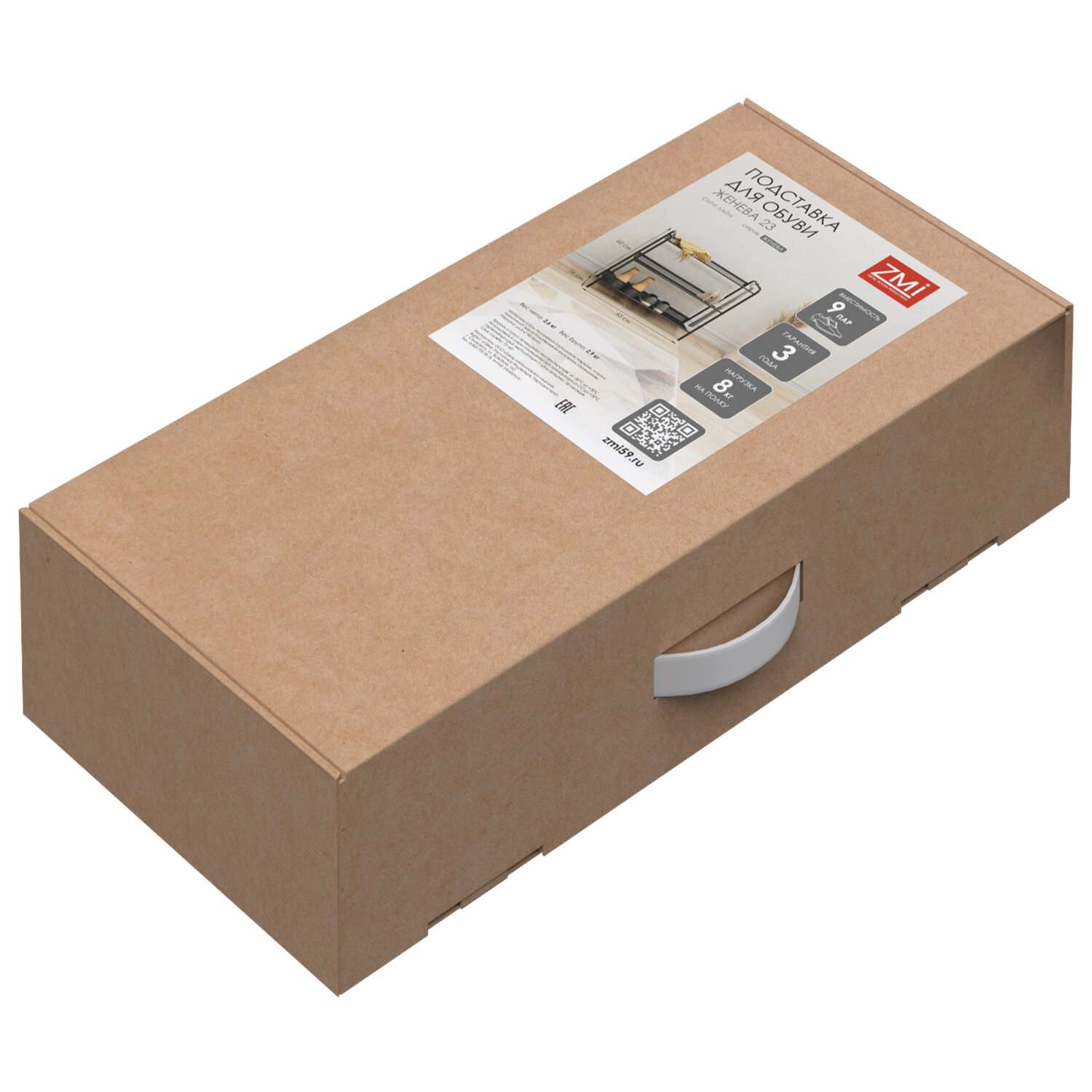 Этажерка выполнена из прочной металлической трубы диаметром 14 мм и стального листа в мелкую сетку.Три наклонные полки: каждая способна вместить до 3-х пар обуви и выдержать нагрузку до 8 кг.Полки имеют бортик, защищающий стену от грязной обуви.Дополнительный пластиковый декоративный крючок для обувной ложки.На ножках предусмотрены заглушки, защищающие пол от повреждения.Изделие поставляется в разобранном виде в картонной красочной коробке с ручкой.Простая сборка согласно инструкции, шестигранный ключ для сборки в комплекте.