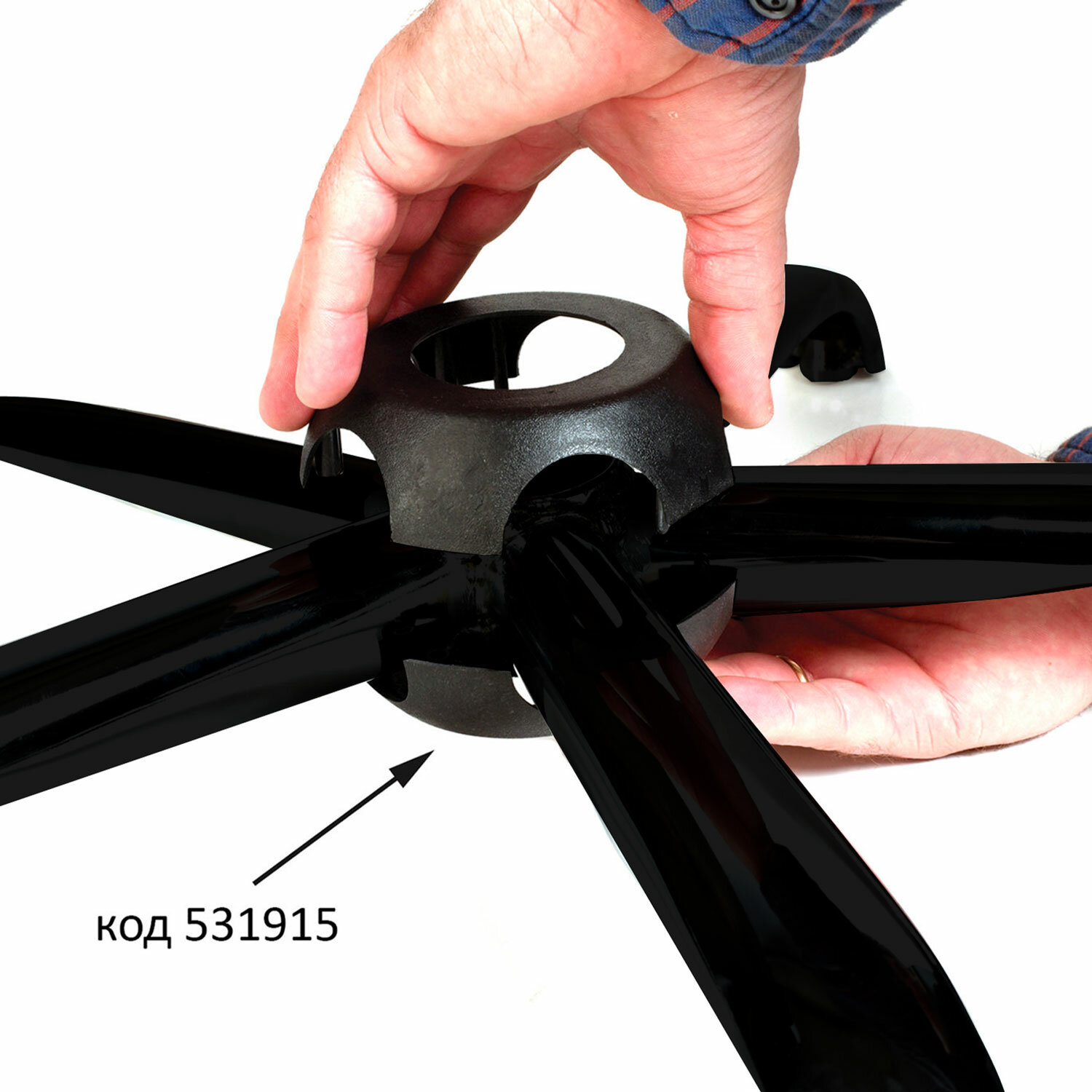 Надежное металлическое пятилучие. Подходит к большинству кресел руководителя. Без пластиковой накладки-кожуха. Дополнительно к пятилучию возможно приобрести накладку-кожух (арт. 531915).