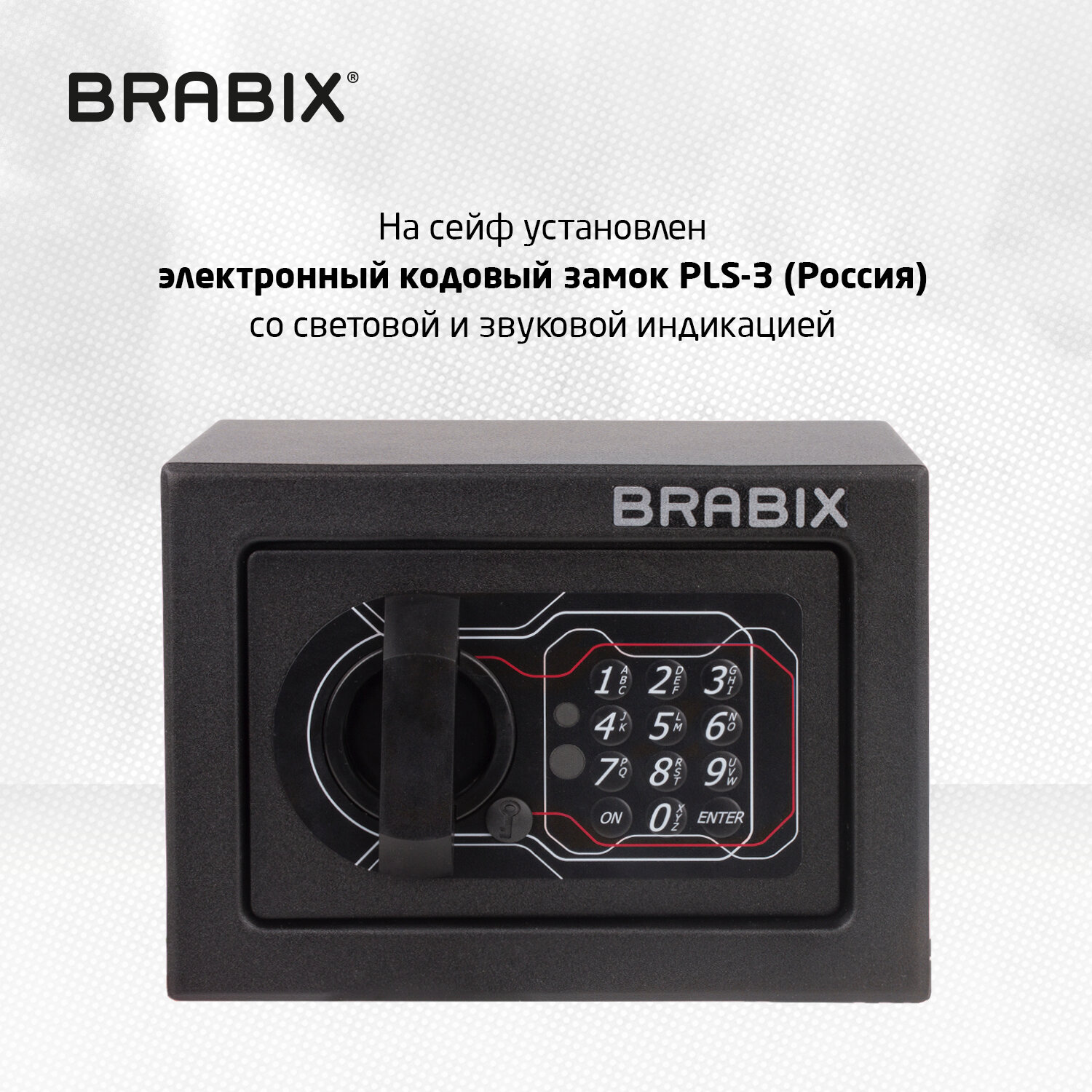 Сейф изготовлен из стали. Лицевая панель толщиной — 2,8 мм, боковые — 1,2 мм.На сейф установлен электронный кодовый замок PLS-3 (Россия) со световой и звуковой индикацией, позволяющий запрограммировать свой уникальный код (от 4 до 8 знаков). В комплект входит аварийный мастер-ключ на случай, если забыли код или вышли из строя элементы питания. Подробная инструкция по эксплуатации замка в комплекте. Изделие имеет ригельную систему запирания, диаметр ригелей до 20 мм. Окраска — стойкое полимерное порошковое покрытие, защищающее от царапин и ржавчин. Конструкция мебельного сейфа BRABIX «SF» предусматривает возможность установки и крепления сейфа внутри мебели, а также анкерное крепление к стене.Продукция марки BRABIX выделяется лучшим соотношением цены и качества.