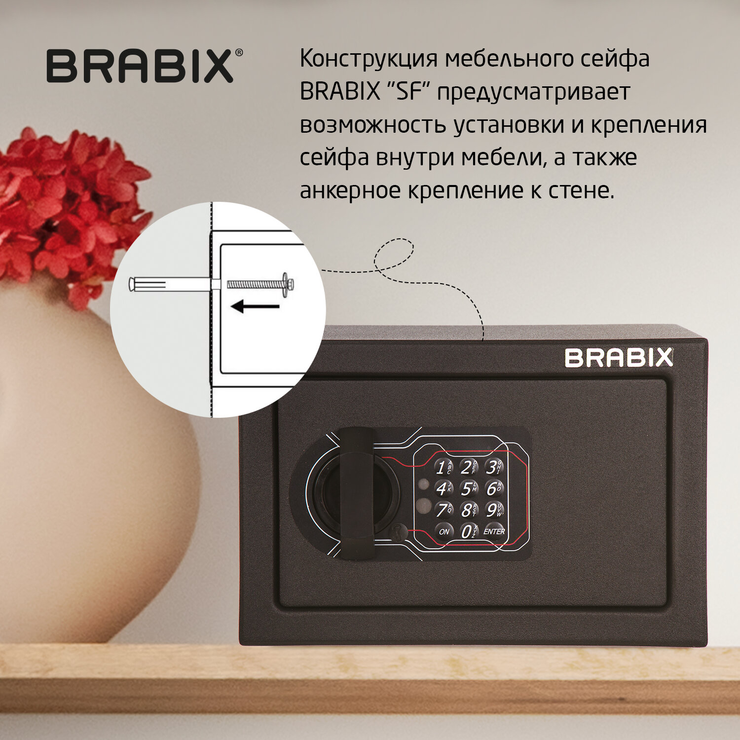 Мебельные сейфы BRABIX серии «SF» предназначены для хранения незначительных ценностей, документов и личного огнестрельного оружия. Могут использоваться как в офисе, так и дома.