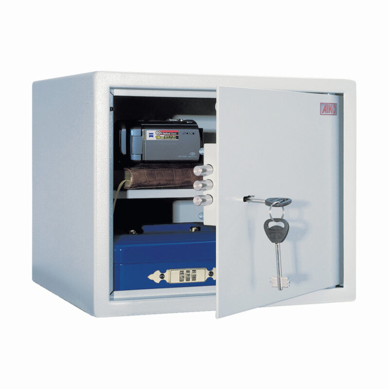 Сейф изготовлен из стали. Лицевая панель толщиной 3 мм, боковые — 1,5 мм.На сейф установлен электронный кодовый замок со световой и звуковой индикацией, позволяющий запрограммировать свой уникальный код (от 4 до 8 знаков). В комплект входит аварийный мастер-ключ на случай, если забыли код или вышли из строя элементы питания. Подробная инструкция по эксплуатации замка в комплекте. Изделие имеет ригельную систему запирания, диаметр ригелей — до 16 мм. Окраска — стойкое полимерное порошковое покрытие, защищающее от царапин и ржавчины. Конструкция мебельного сейфа DASWERK «SС» предусматривает возможность установки и крепления сейфа внутри мебели, а также анкерное крепление к стене.