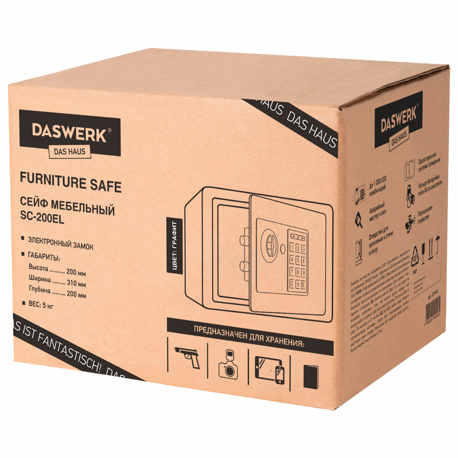 Сейф мебельный DASWERK (ДАСВЕРК) SC-200EL (200х310х200 мм), электронный замок, графит, 291341