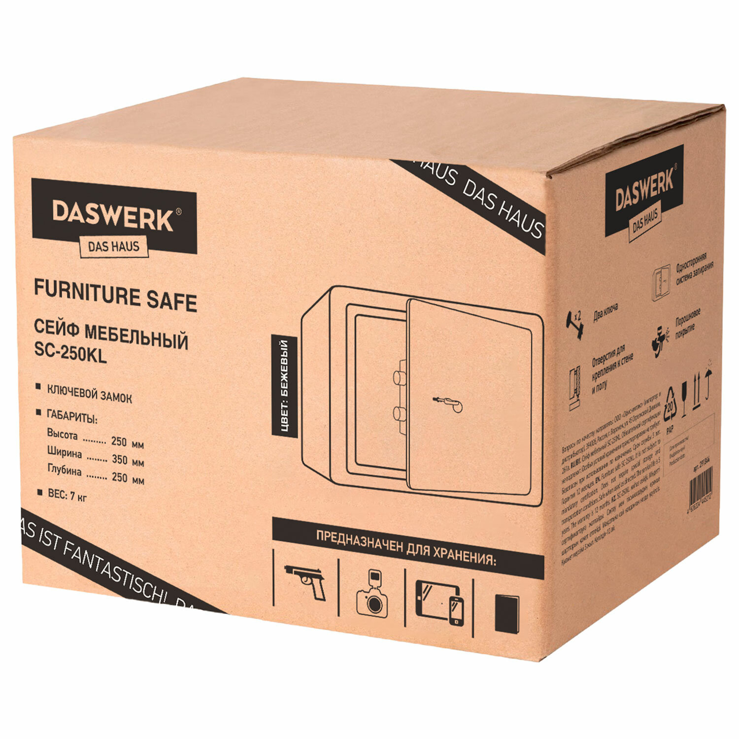 Сейф мебельный DASWERK (ДАСВЕРК) SC-250KL (250х350х250 мм), ключевой замок, бежевый, 291344