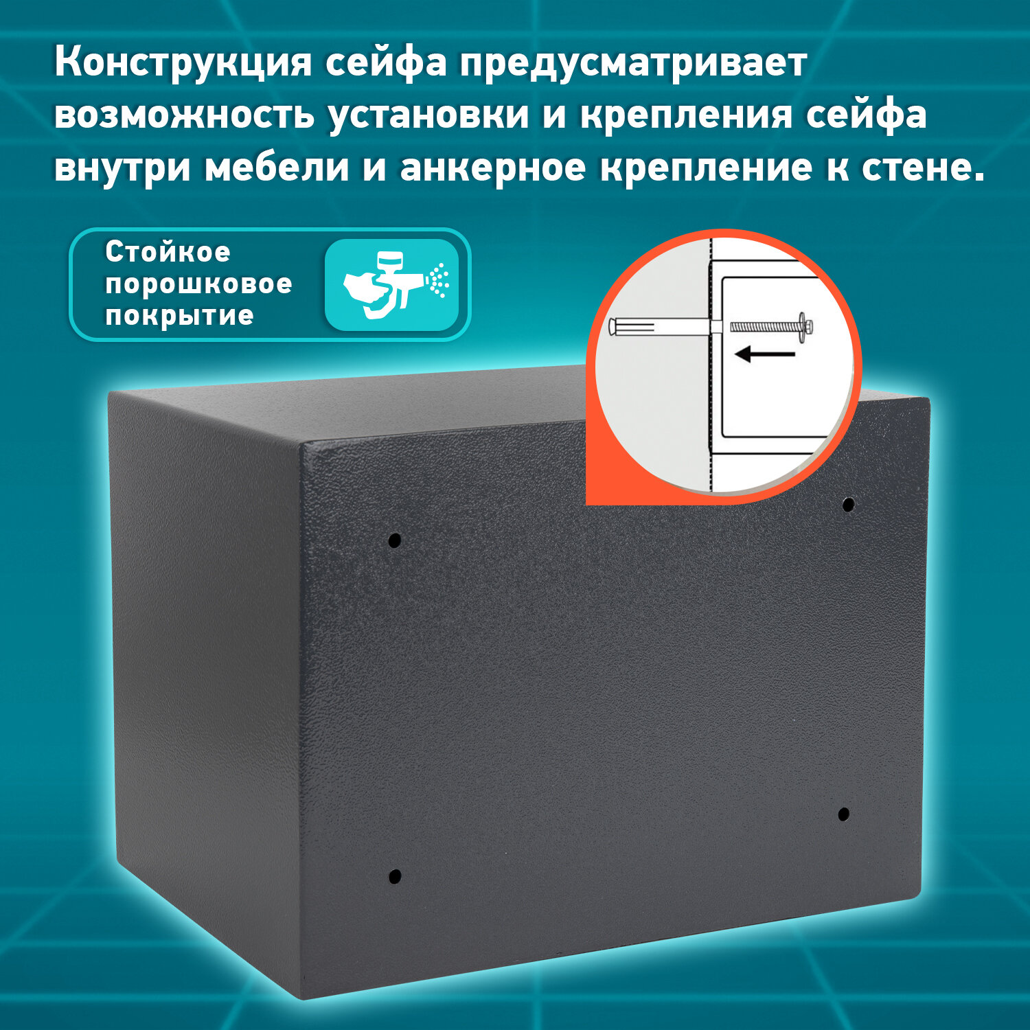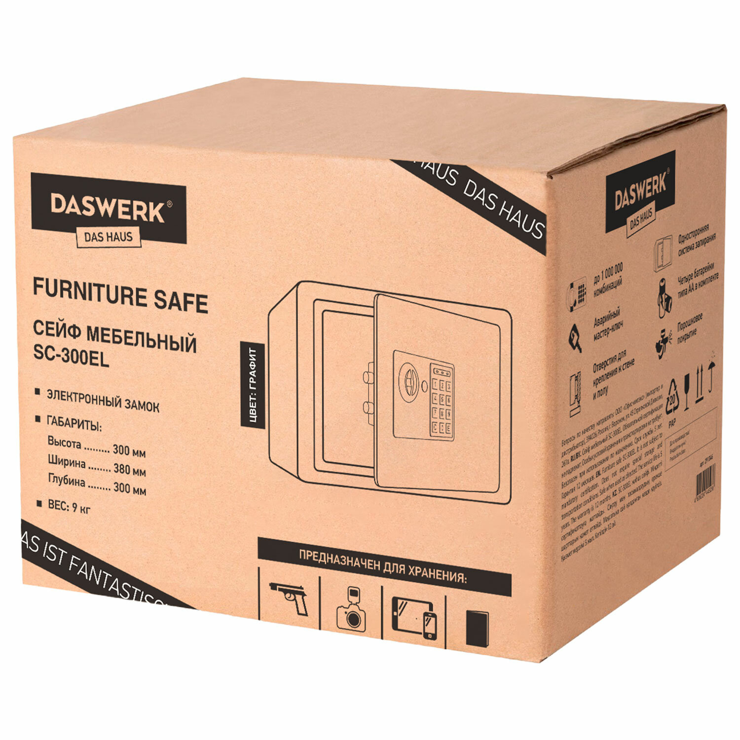 Сейф мебельный DASWERK (ДАСВЕРК) SC-300EL (300х380х300 мм), электронный замок, графит, 291346