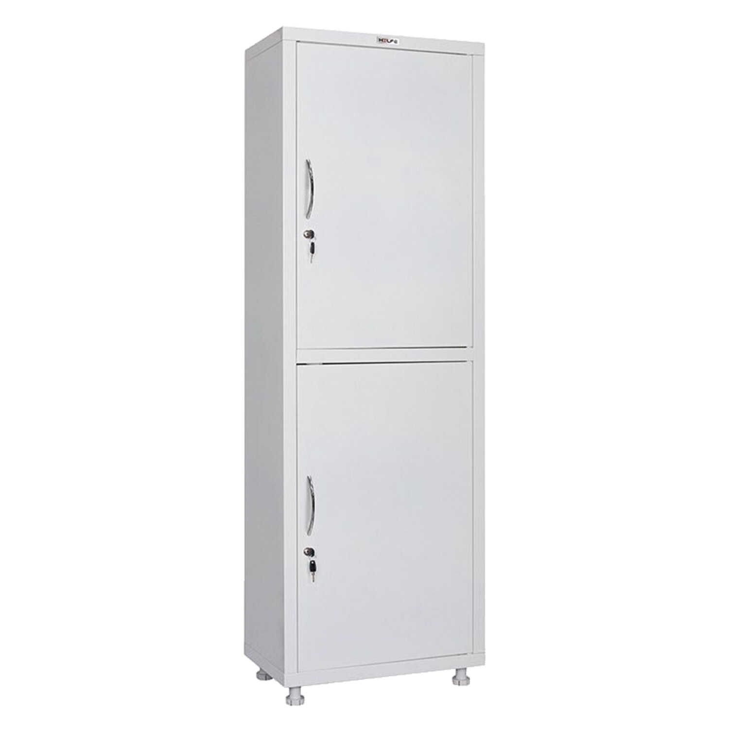 Шкаф изготовлен из стали, толщина корпуса — 0,6 мм, толщина двери — 0,7 мм.Шкаф комплектуется ключевыми замками HILFE (2000 комбинаций).Максимальная нагрузка на полку — 30 кг.Шкаф поставляется в разобранном виде, в комплект поставки входят четыре регулируемые опоры (минимальная высота — 100 мм, максимальная высота — 130 мм).Максимальная высота с установленными регулируемыми опорами — 1850 мм.