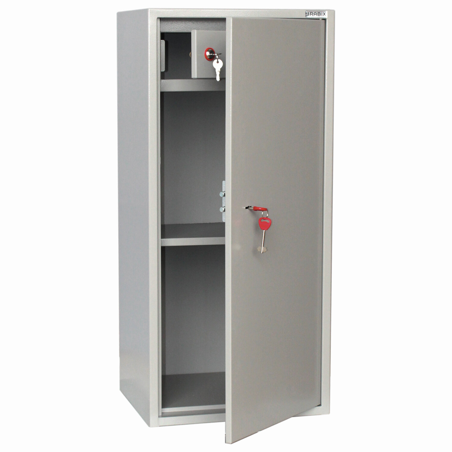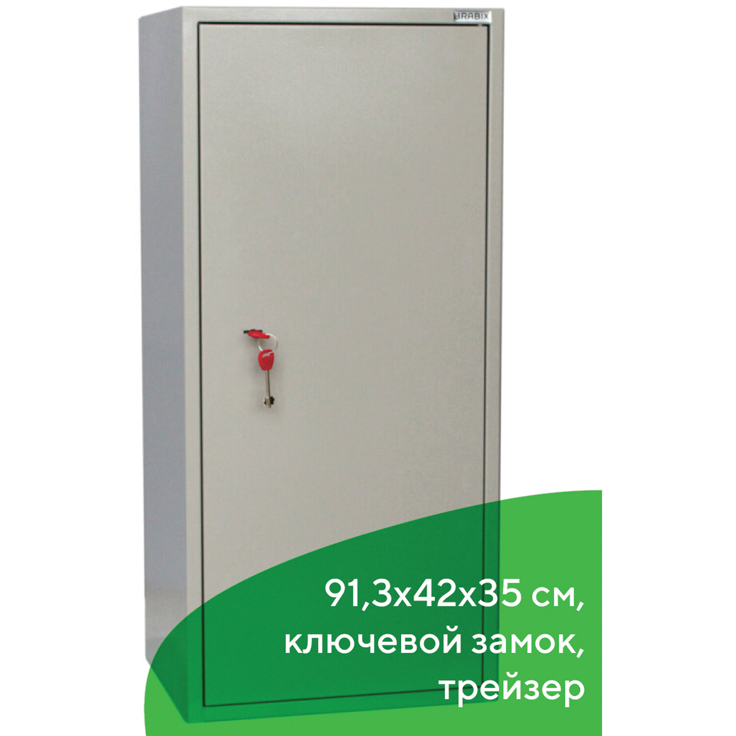 Комплектуется 1 переставной полкой. Шаг перфорации — 160 мм.Толщина лицевой панели и корпуса — 1,2 мм.Дверь имеет двойные загибы со всех сторон, изнутри усилена ребром жесткости.Комплектуется ключевым 6-ти сувальдным замком сейфового типа «BORDER» (Россия). В комплекте 2 ключа.Оборудован отсеком ограниченного доступа (трейзер), запираемым на замок «почтового» типа.Петли шкафа – внутренние.Шкаф представляет собой цельносварную металлическую конструкцию прямоугольной формы, соединение элементов которой выполнено методом сварки сплошным швом по контуру прилегания элементов.Шкафы соответствуют требованиям ТР ТС 025/2012 «О безопасности мебельной продукции».