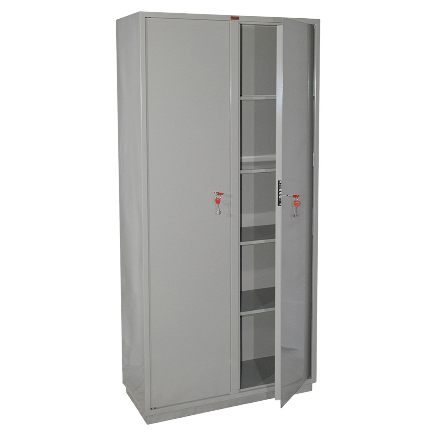 Комплектуется 8-ю переставными полками. Шаг перфорации 160 мм.Толщина лицевой панели и боковых стенок — 1,5 мм.Дверь изнутри усилена панелью коробчатого сечения из стального листа толщиной 0,8 мм.Комплектуется ключевым 8-ми сувальдным замком сейфового типа «ПРО САМ» (Россия). В комплекте 2 ключа.Шкаф представляет собой цельносварную металлическую конструкцию прямоугольной формы, соединение элементов которой выполнены методом сварки сплошным швом по контуру прилегания элементов.