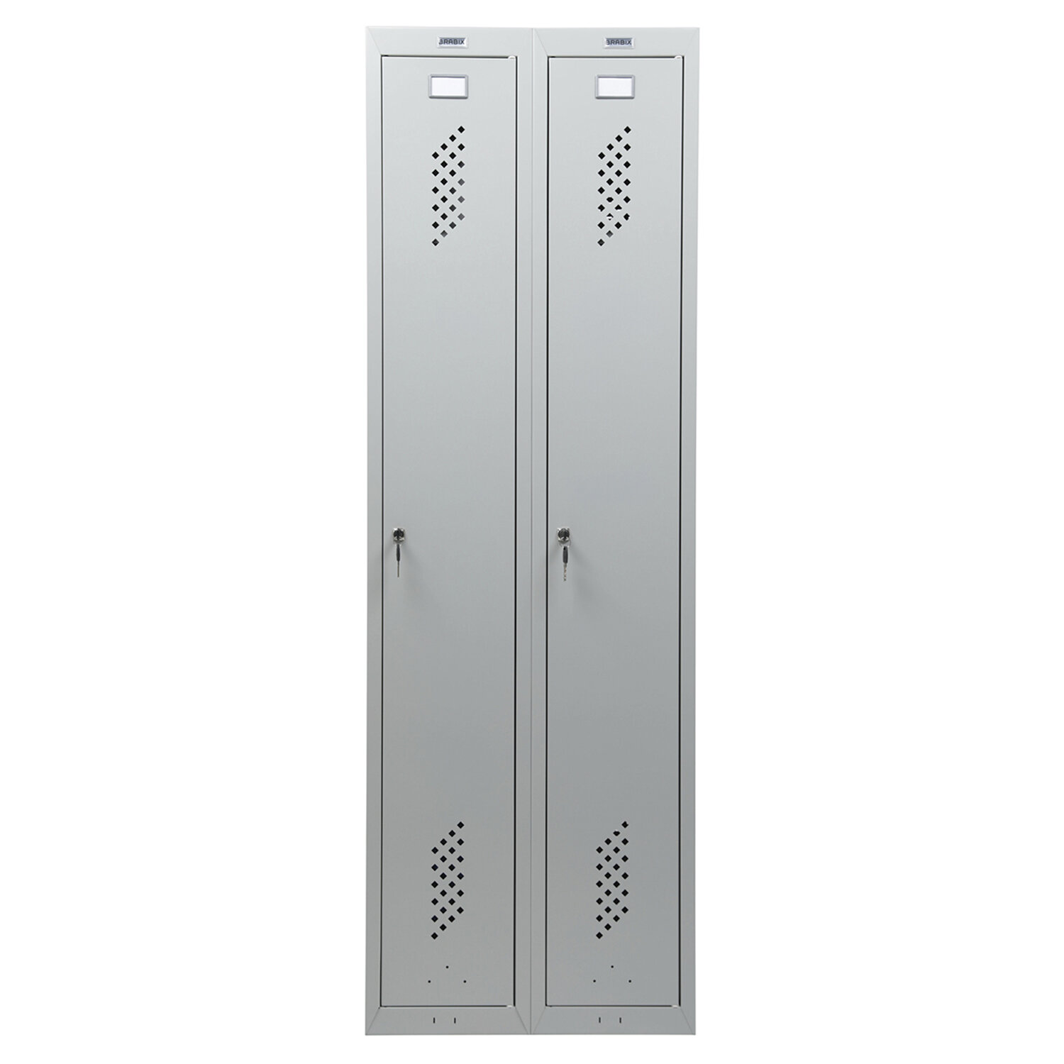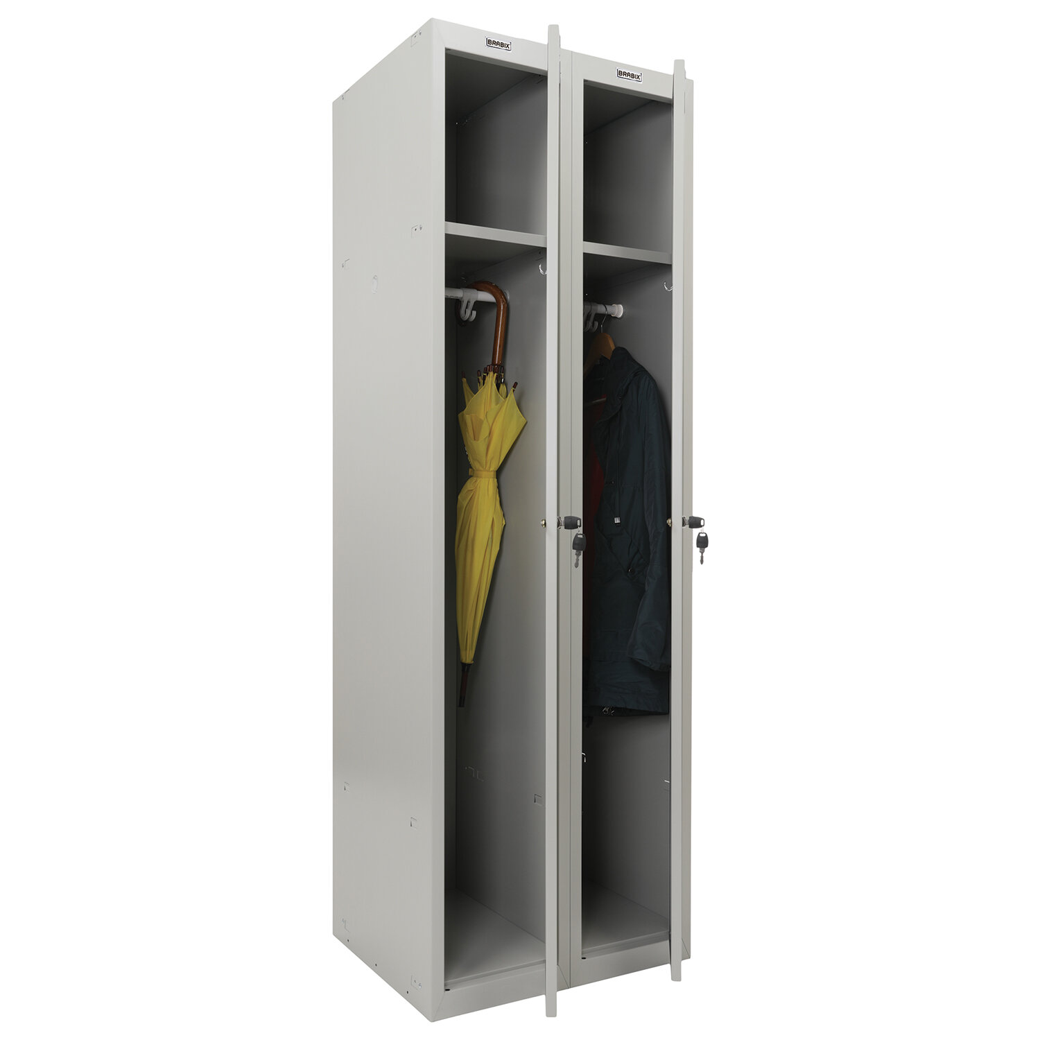Жесткий корпус шкафа усилен сварной рамой, что обеспечивает устойчивость конструкции и длительный срок эксплуатации. Шкаф имеет 2 раздельные секции и предназначен для двух пользователей. На дверях установлены ключевые замки (2000 комбинаций). На каждую дверь в комплекте 2 ключа.Двери и задние стенки имеют вентиляционные отверстия.Сборку шкафа можно осуществлять 2 способами: на зацепах или с помощью саморезов, крепеж присутствует в комплекте. Есть возможность установки дверей с односторонним открыванием или с распашным, а также менять направление открывания.Конструкция шкафов позволяет скреплять их между собой. При этом есть возможность наращивать секции в ряд за счет общей боковой стенки. Все модели шкафов BRABIX LK совместимы.В комплект входят: 2 полки, перекладина, крючки.Шкаф поставляется в разобранном виде.Продукция марки Brabix выделяется лучшим соотношением цены и качества.