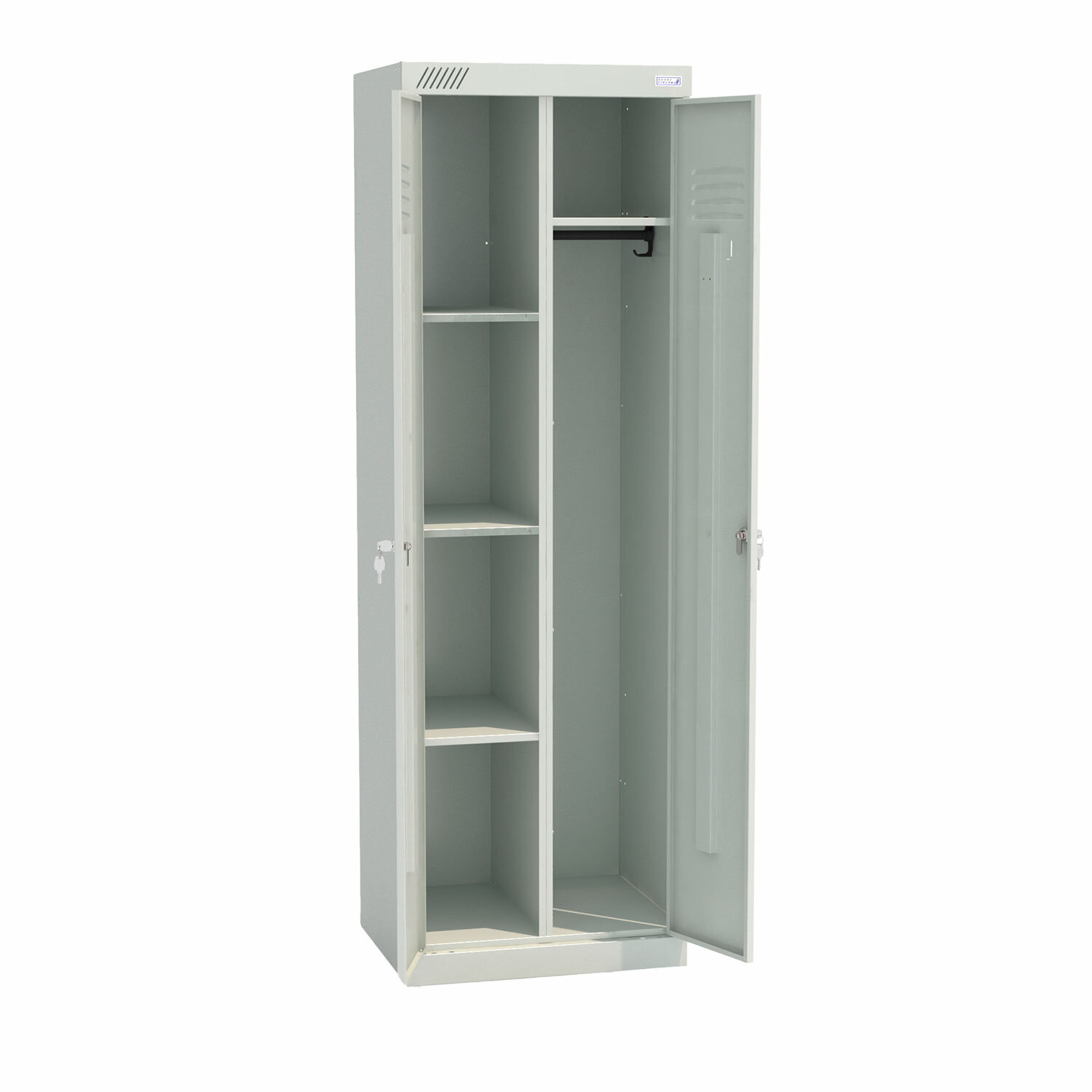 Хозяйственный шкаф универсального назначения. Предназначен для хранения сменной одежды в офисных, производственных, спортивных помещениях, кроме того могут использоваться для хранения хозинвентаря. Возможна установка в помещениях с повышенной влажностью.