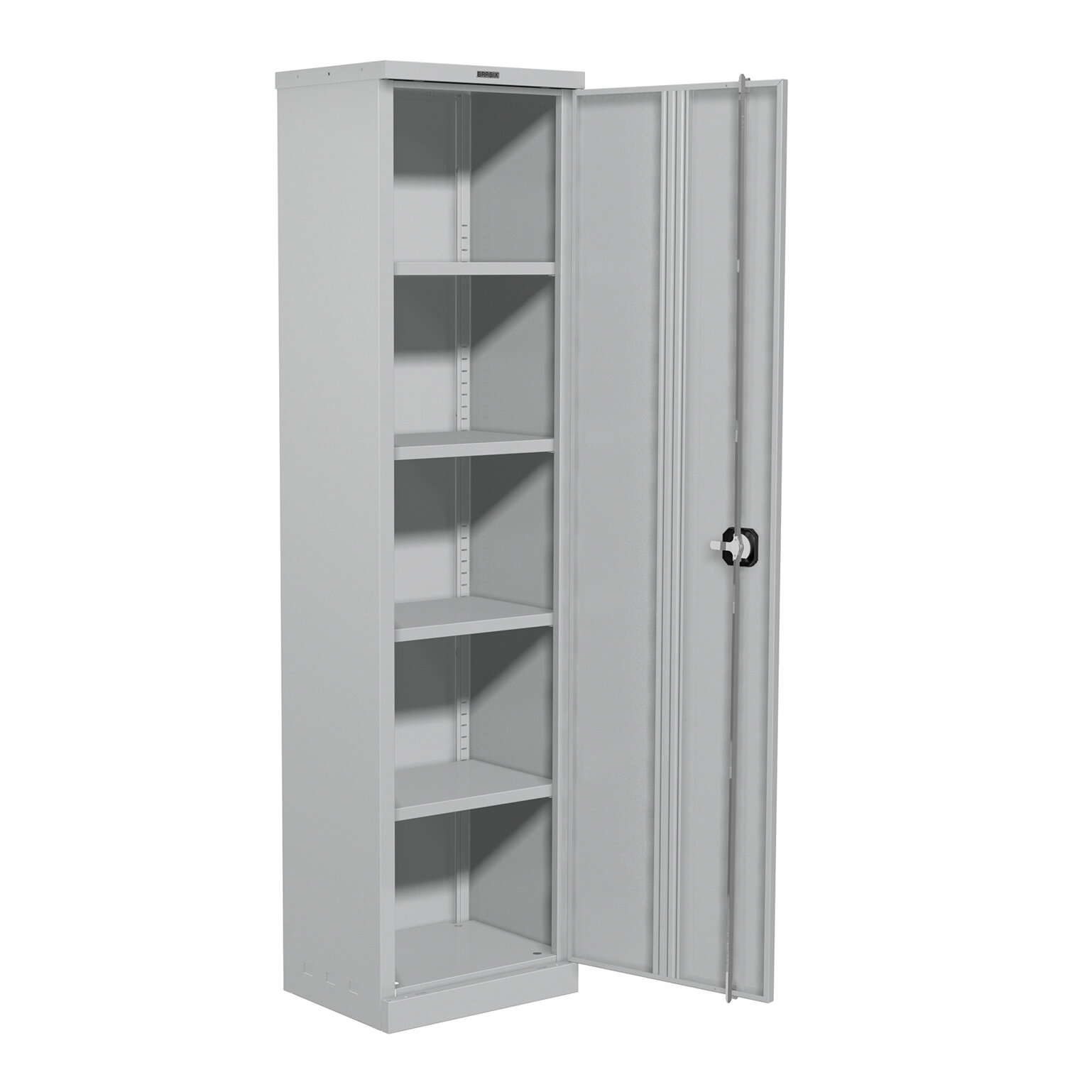Вместимость шкафа не менее 30 папок «Корона» шириной 75 мм.В комплекте 4 полки, всего 5 уровней хранения.Максимальная нагрузка на полку — 40 кг.Шкафы комплектуются ключевыми замками — 2000 комбинаций.В комплекте 2 ключа.Оригинальная конструкция ригелей из оцинкованной стали и пластиковые втулки обеспечивают бесшумный ход дверей и надежное запирание шкафа.Поставляется в разобранном виде.Продукция марки BRABIX выделяется лучшим соотношением цены и качества.