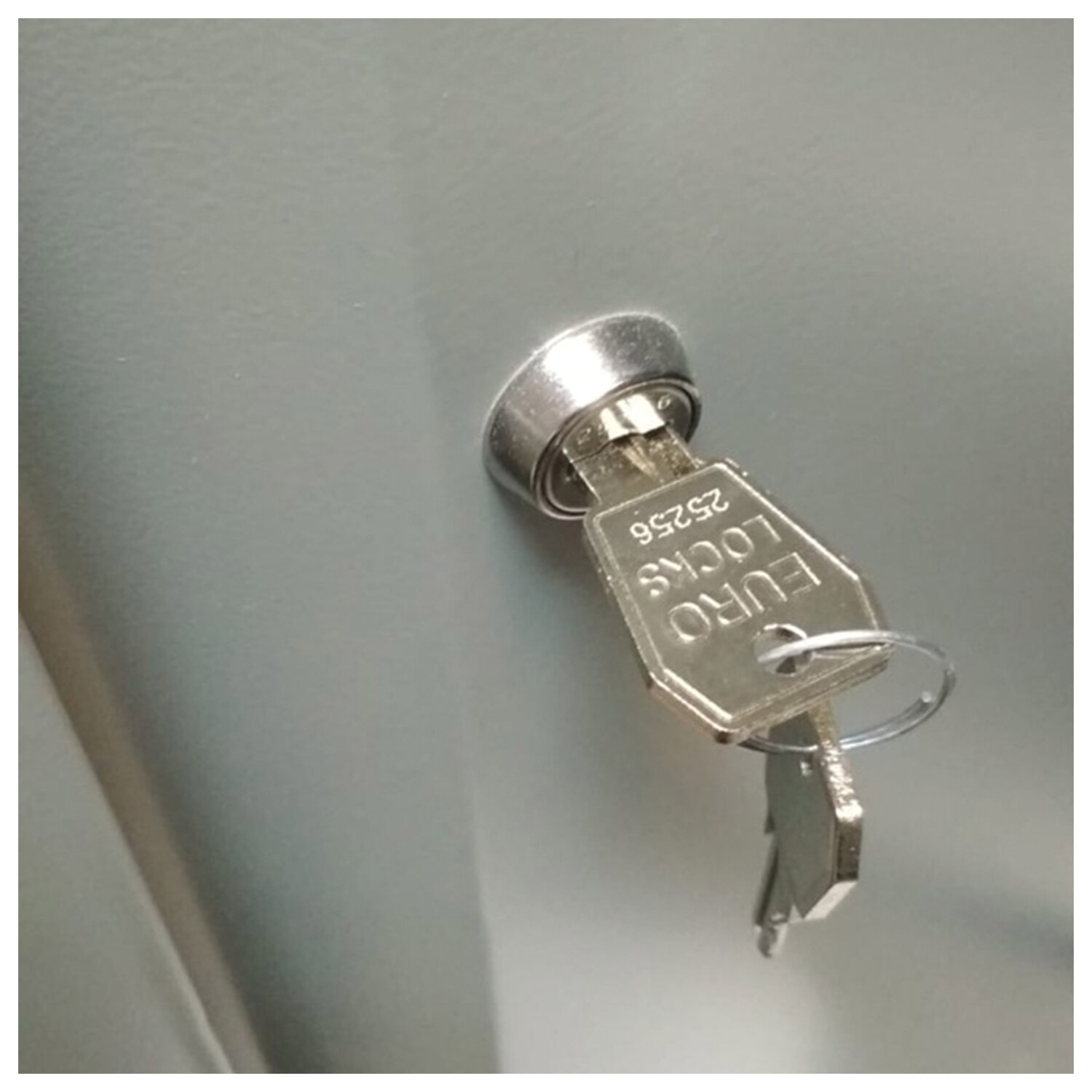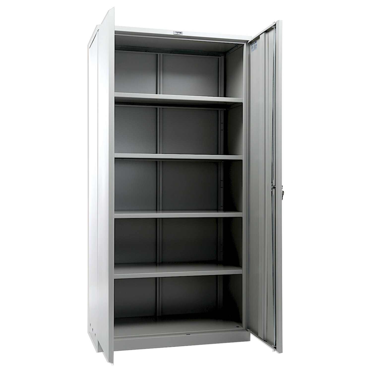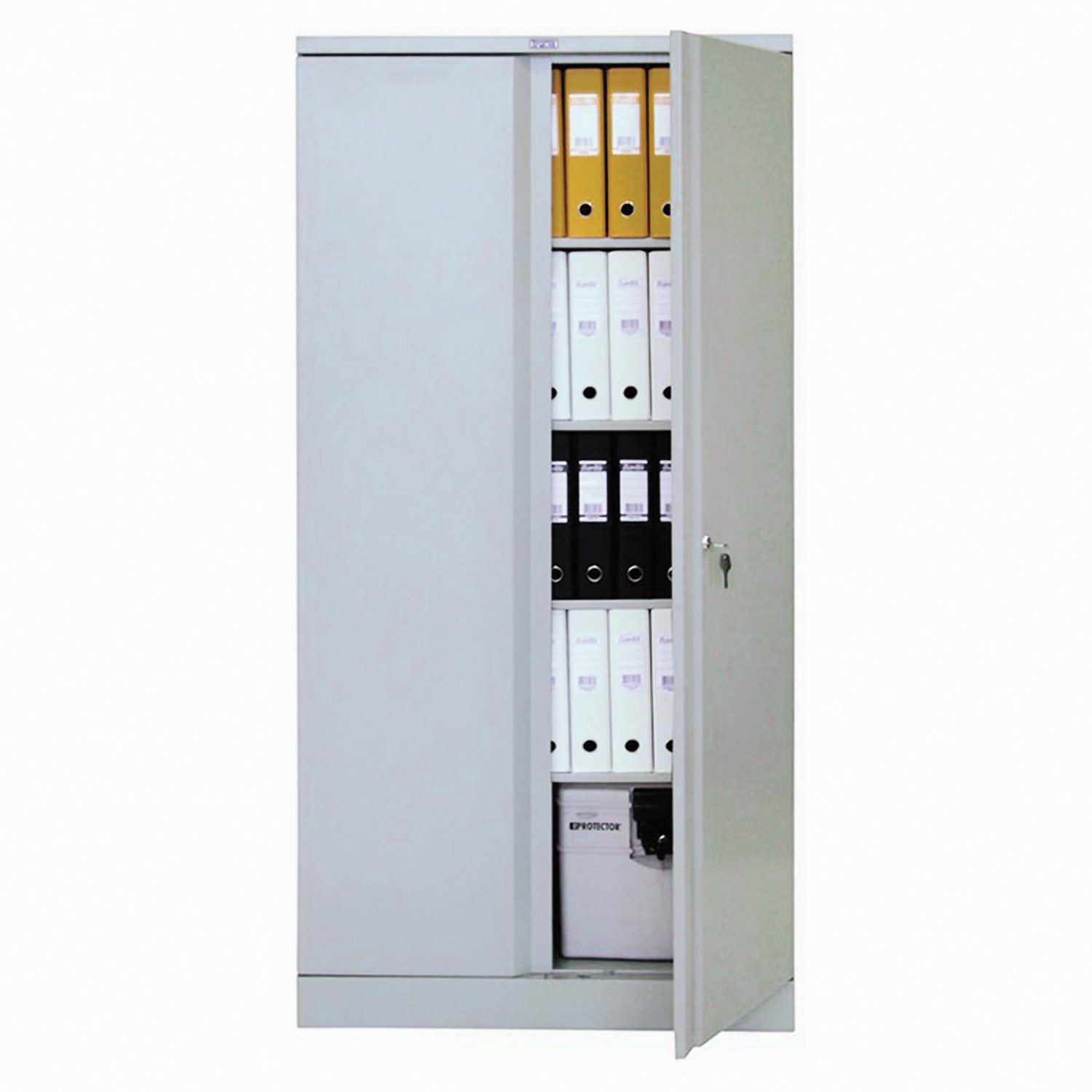 Оригинальная конструкция ригелей из нержавеющей стали и пластиковые втулки обеспечивают бесшумный ход дверей и надежное запирание шкафа. 2 двери, 5 уровней хранения. 4 полки в комплекте, регулируемые по высоте. Шкаф имеет магнитные защелки, фиксирующие дверь в закрытом состоянии при открытом замке. Комплектуется ключевыми замками. Способен вместить не менее 50 папок-регистраторов шириной корешка 80 мм. Имеется возможность установки полок типа BBS, BWS. Максимальная нагрузка на полку — 60 кг. Соответствует требованиям ГОСТ 16371-2014.Поставляется в разобранном виде.