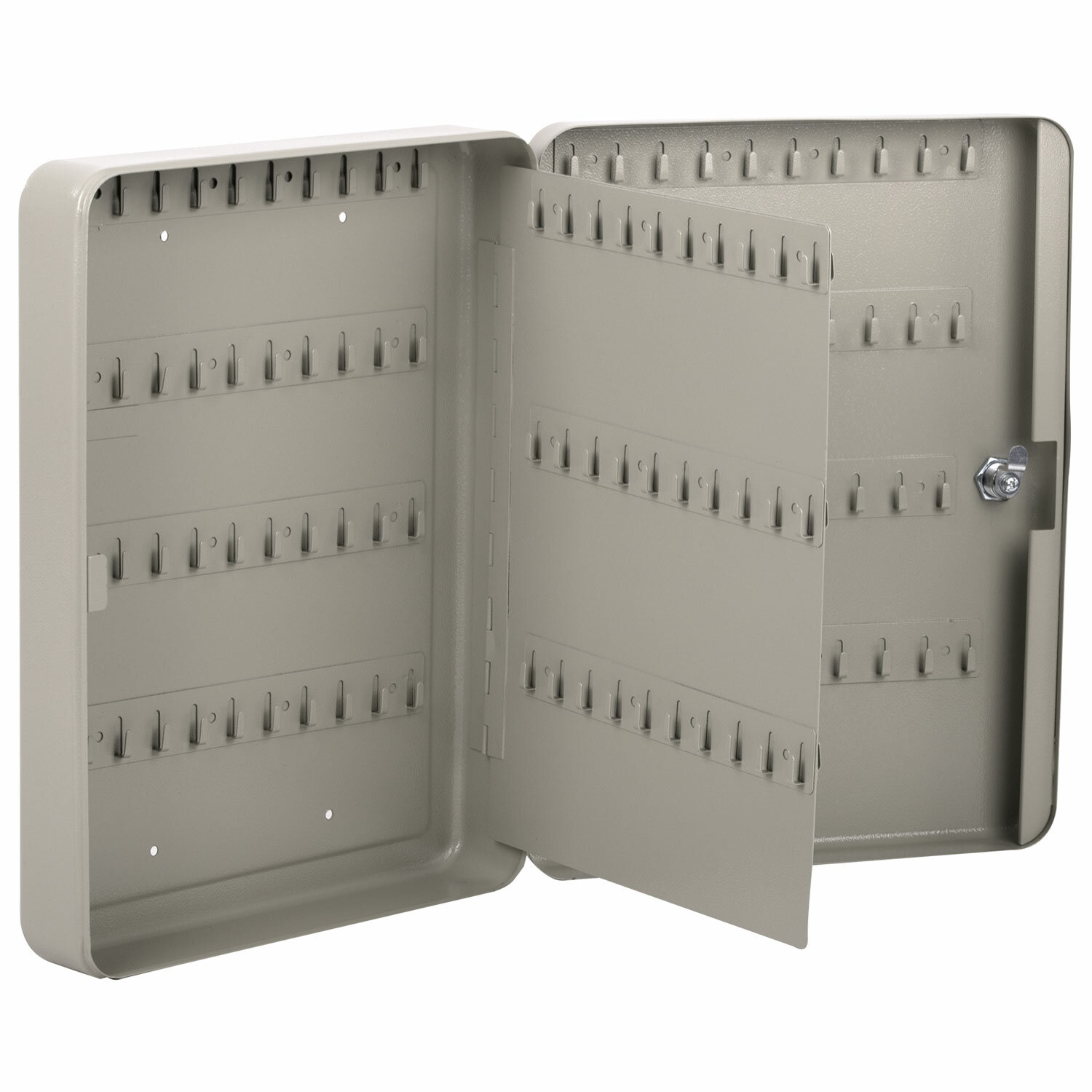 Изготовлен из прочной стали толщиной 0,8 мм и оснащен надёжным замком. Вмещает 140 ключей. Для размещения каждого ключа в шкафчике предусмотрен брелок с ярлычком. Размер — 370х280х80 мм. В комплекте: — 2 ключа от дверцы;- наклейки для нумерации крючков;- шурупы для крепления.