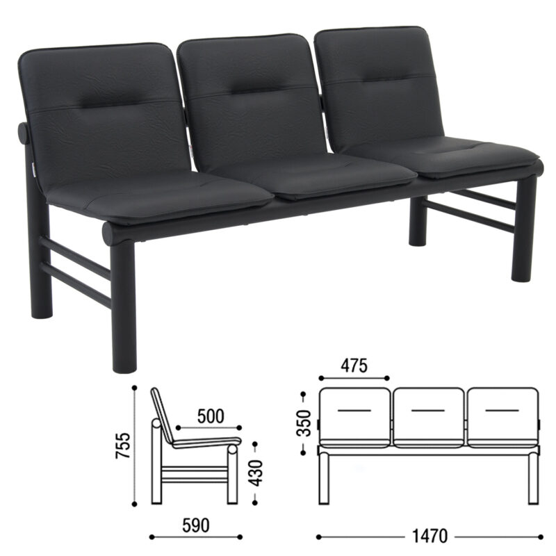 Сиденья для кресла «Трим», комплект 3 шт., кожзам черный, каркас черный