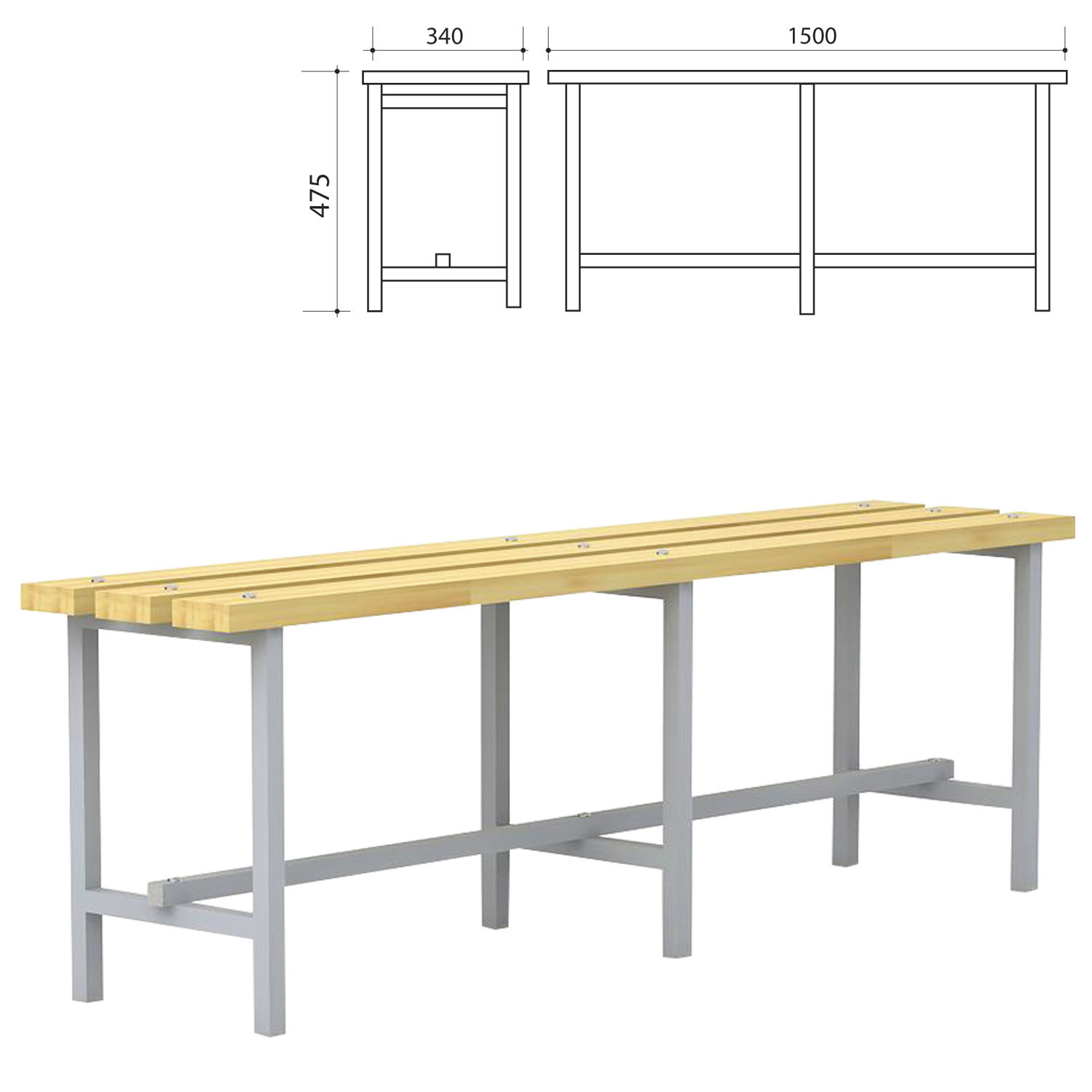 Скамья предназначена для эксплуатации в раздевалках спортивных учреждений, предприятий, офисов и т.д. Металлический каркас и доски из натуральной древесины обеспечивают надежность и долговечность конструкции. Простая сборка.
