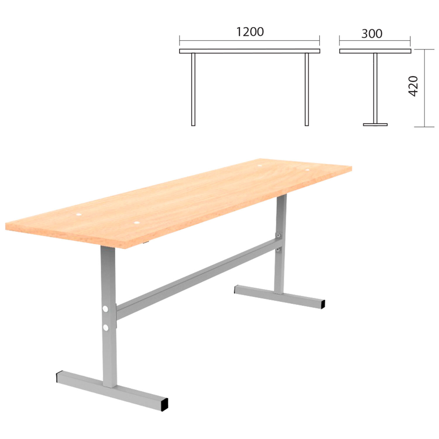 Каркас профиля – 25х25 мм, покрытие – порошковое полимерное. Цвет каркаса – алюминиевый металлик RAL9006. ЛДСП толщиной 16 мм, цвет – бук. Поставляется в разобранном виде, в картонной таре.Комплектуется столом 533274.