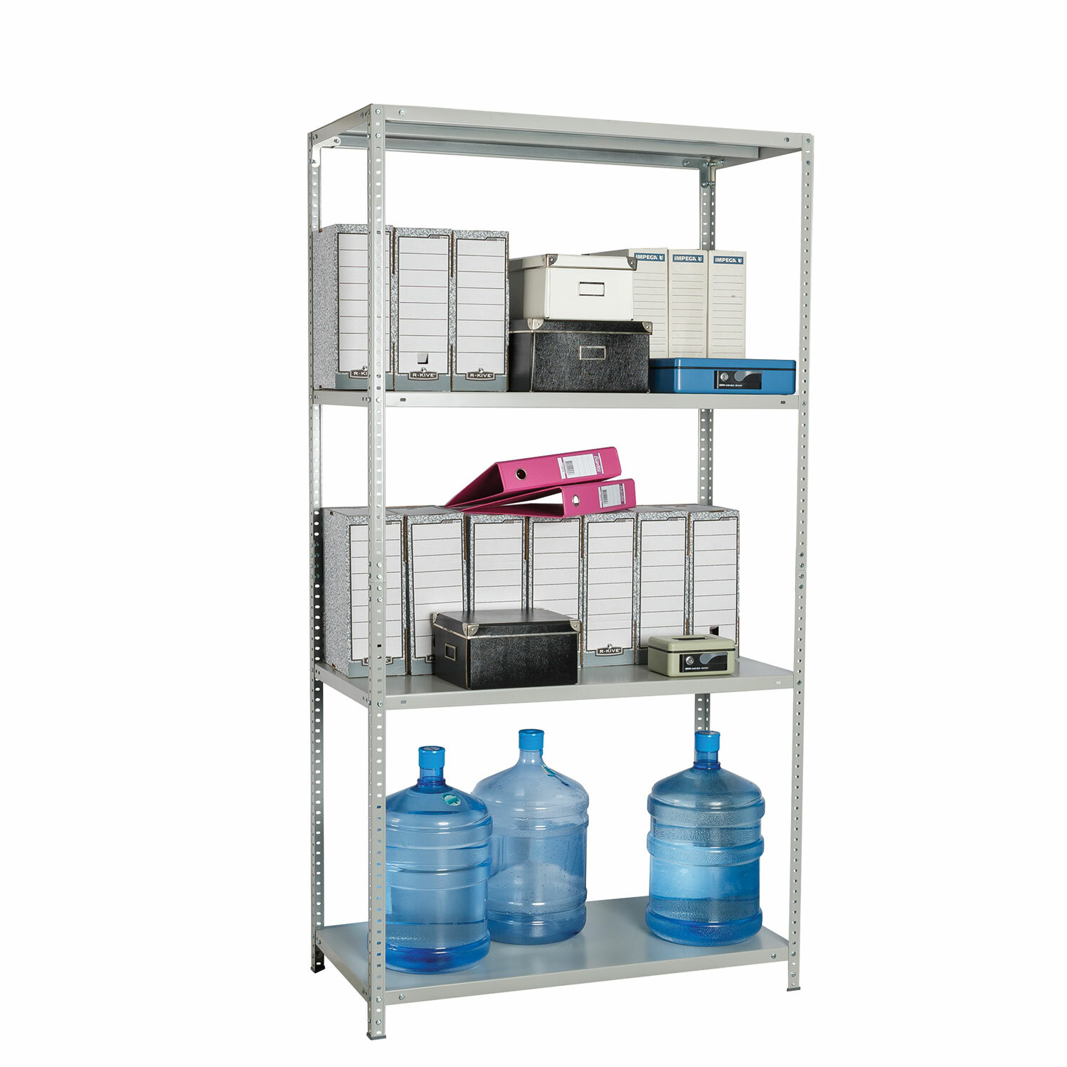 Максимальная нагрузка на полку достигает 100 кг, на стеллаж — до 500 кг. Стойки с усиленным угловым профилем сложного сечения 30х30 мм и толщиной металла 1,2 мм.Полки имеют толщину основания 0,5 мм, усилены центральным ребром жесткости. Высота бокового и торцевого ребра полки — 33 мм, толщина — 1 мм.Для повышения жесткости всей конструкции верхняя и нижняя полка усилена дополнительными Г-образными уголками. Шаг установки полок — 25 мм.Опоры пластиковые, не регулируемые.Вся необходимая фурнитура для сборки в комплекте.Продукция марки Brabix выделяется лучшим соотношением цены и качества.