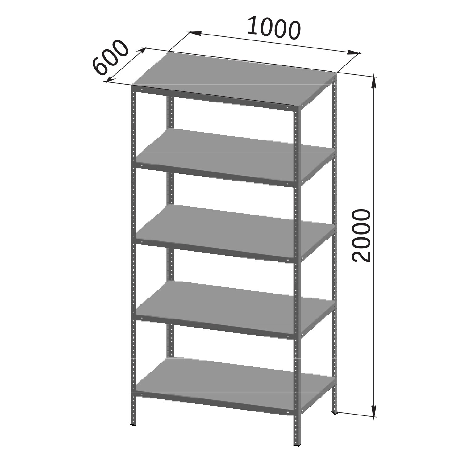 Стеллаж металлический «УНИВЕРСАЛ», 2000х1000х600 мм, УСИЛЕННЫЕ СТОЙКИ, 5 полок, регулируемые опоры, 290243