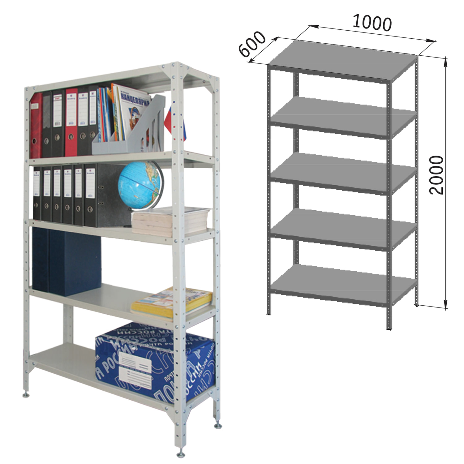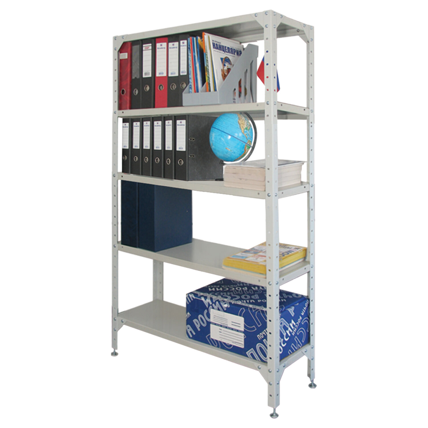 Металлический стеллаж с усиленной стойкой и регулируемыми опорами. Простой и экономичный способ организовать хранение вещей. Предназначены для хранения документов и различных грузов в офисе, на складе, в архиве.